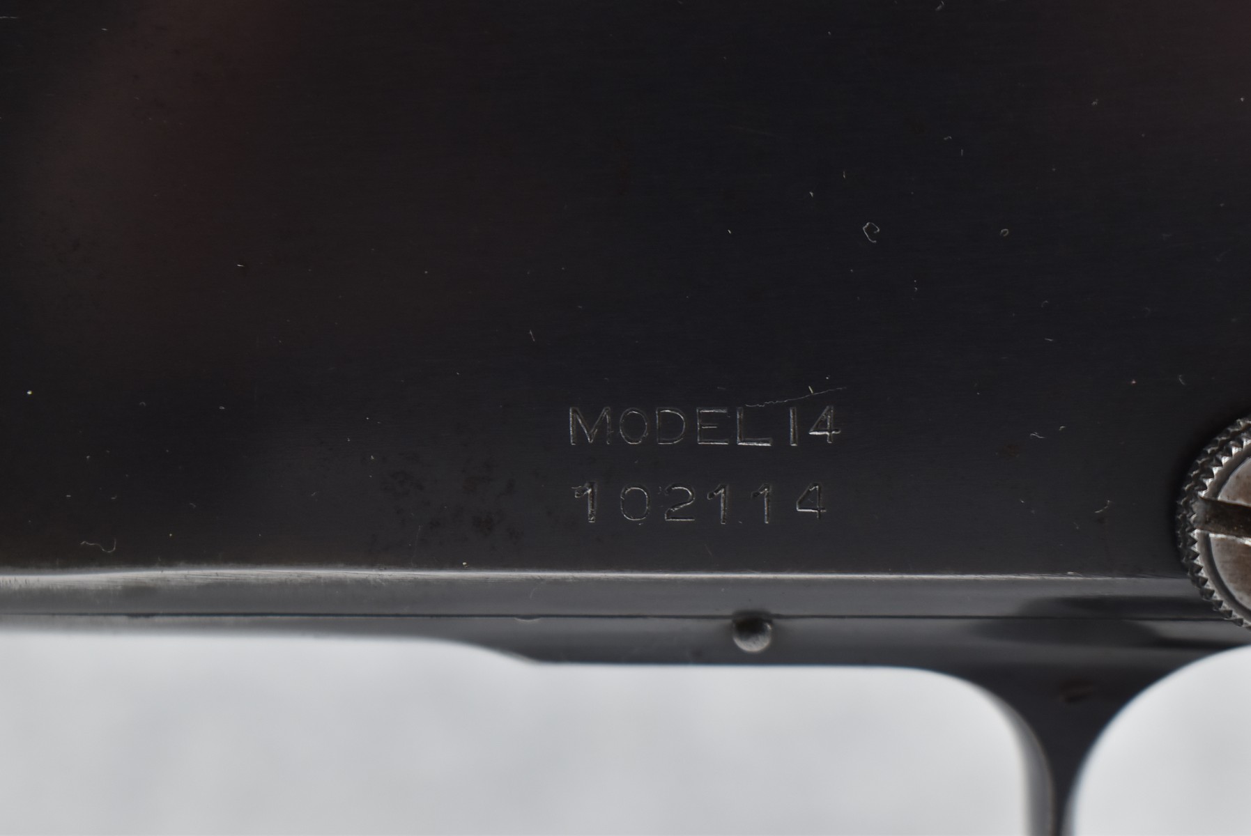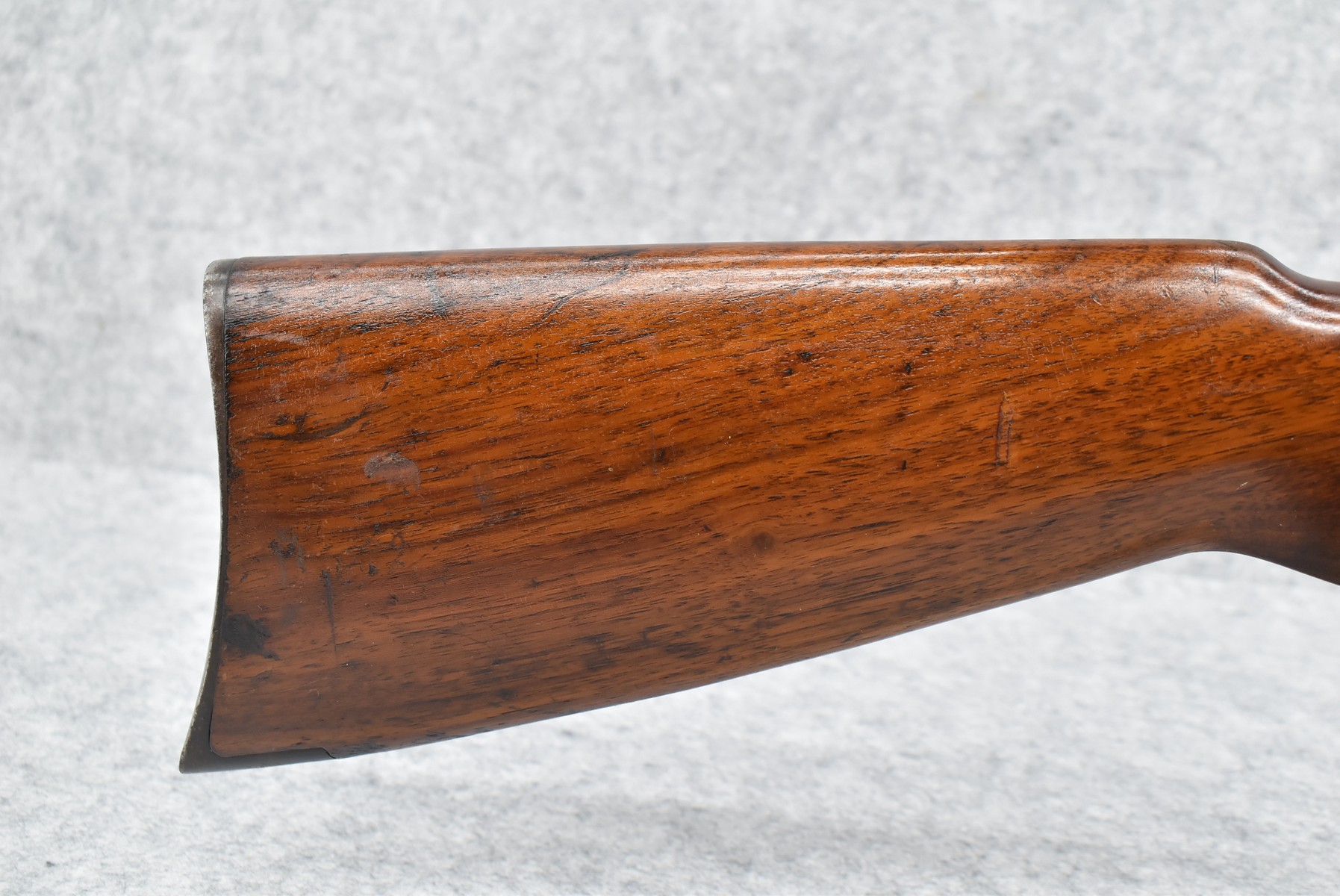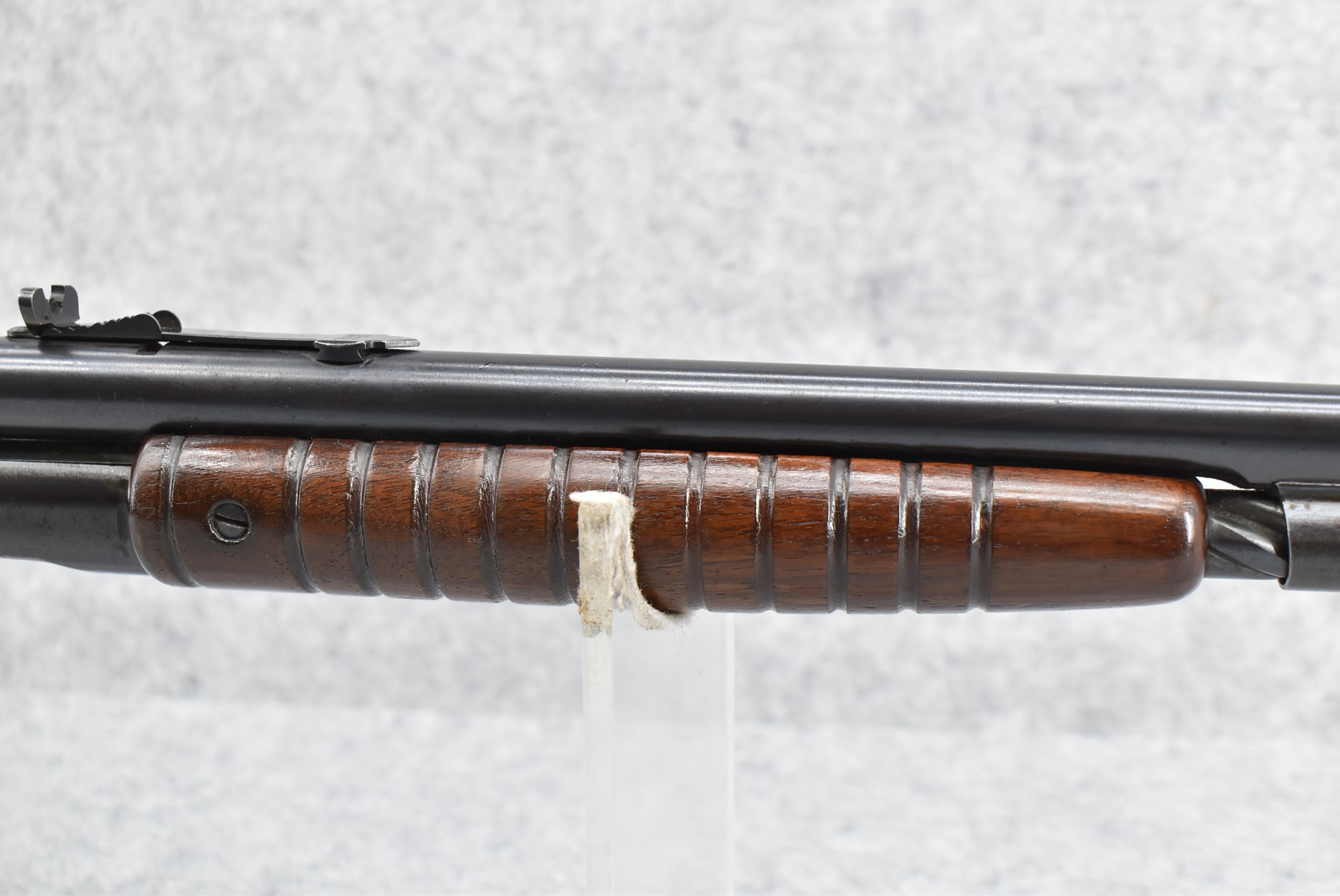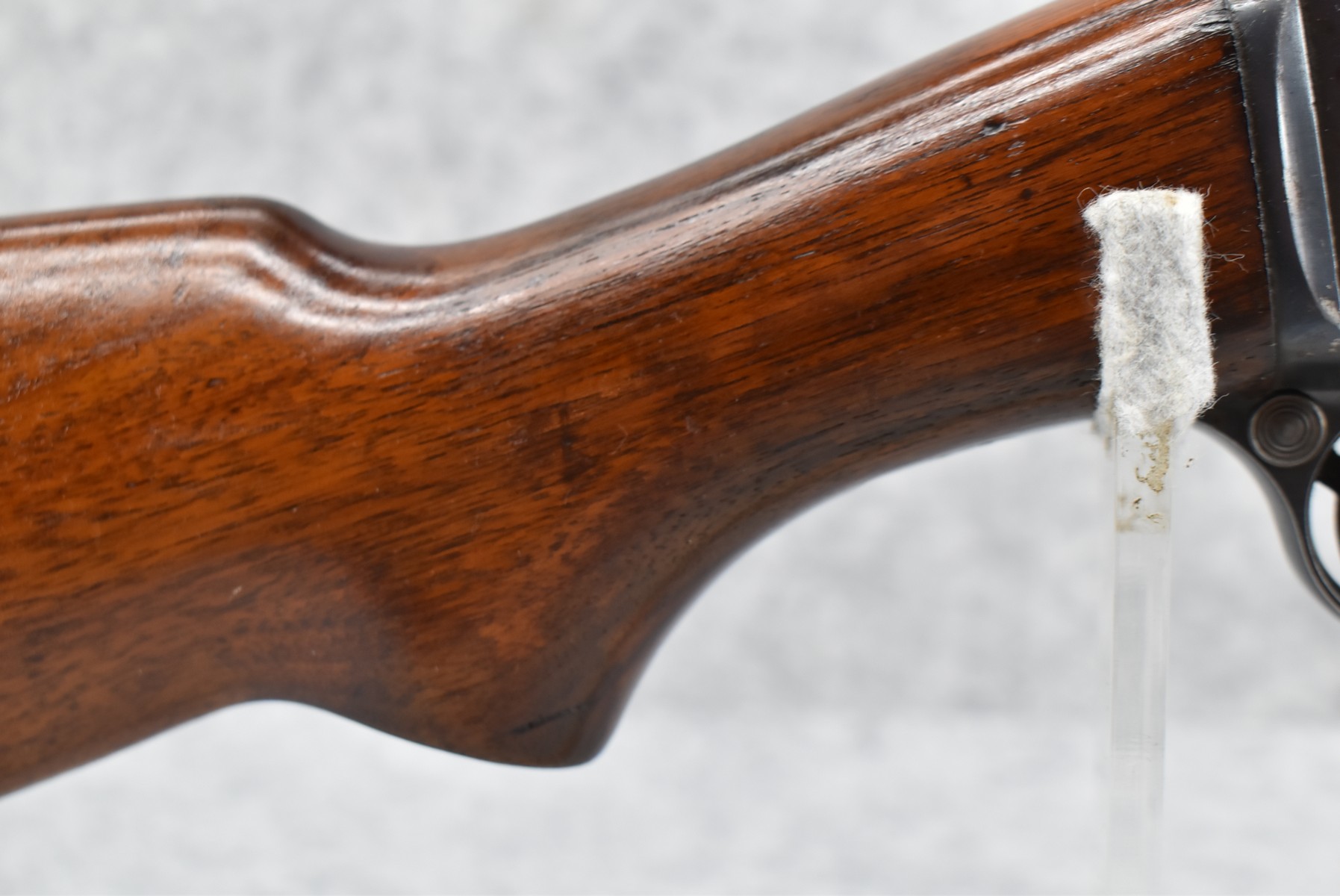 67R. Remington – Mod. 14 – 30 Rem. Cal. Pump Action Rifle – w/22” Barrel w/Marbles No. 3 Blade Front & Adj. Rear High Buckhorn Sights – Blued Finish – w/Smooth Pistol Grip Wood Stock & Ribbed Forearm w/Rem-UMC Factory Metal Butt Plate – Mfg. 12/1927