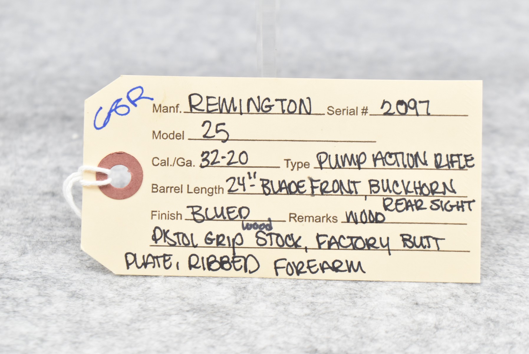 68R. Remington – Mod. 25 – 32-20 Cal. Pump Action Rifle – w/24” Barrel w/Blade Front & Buckhorn Rear Sights – Blued Finish – w/Pistol Grip Wood Stock w/Factory Butt Plate & Ribbed Forearm