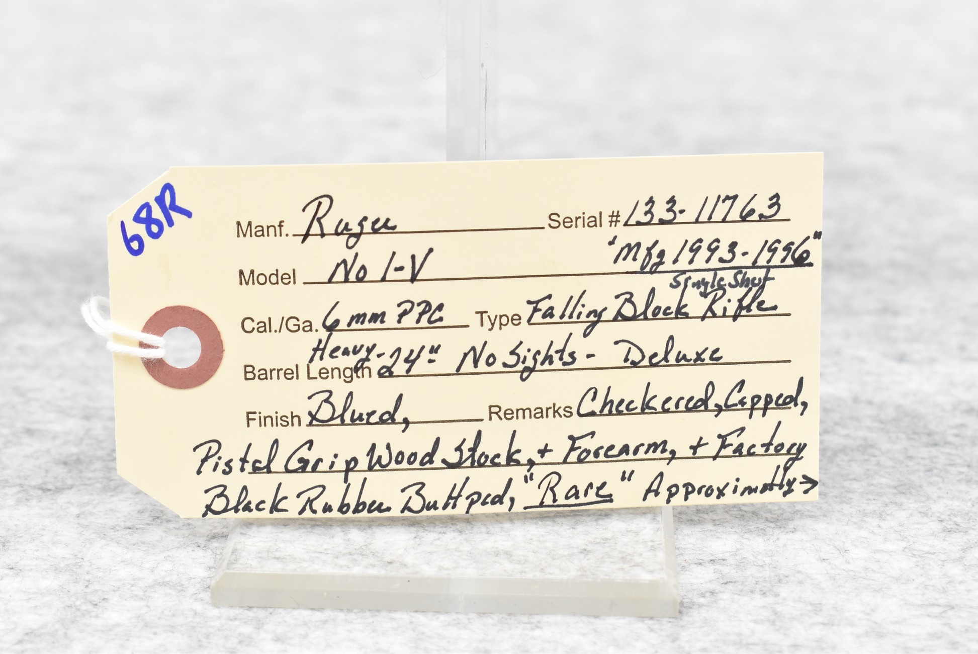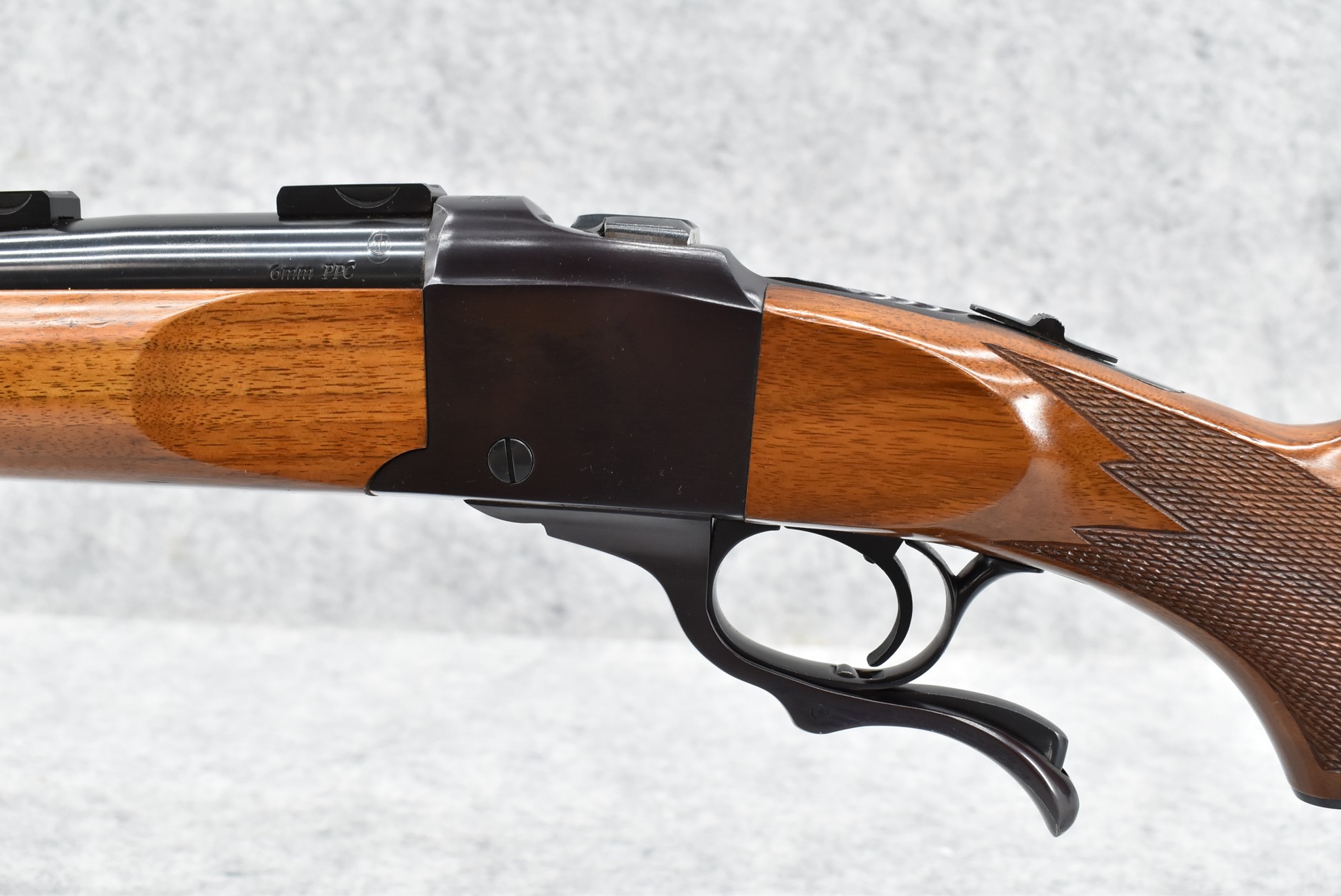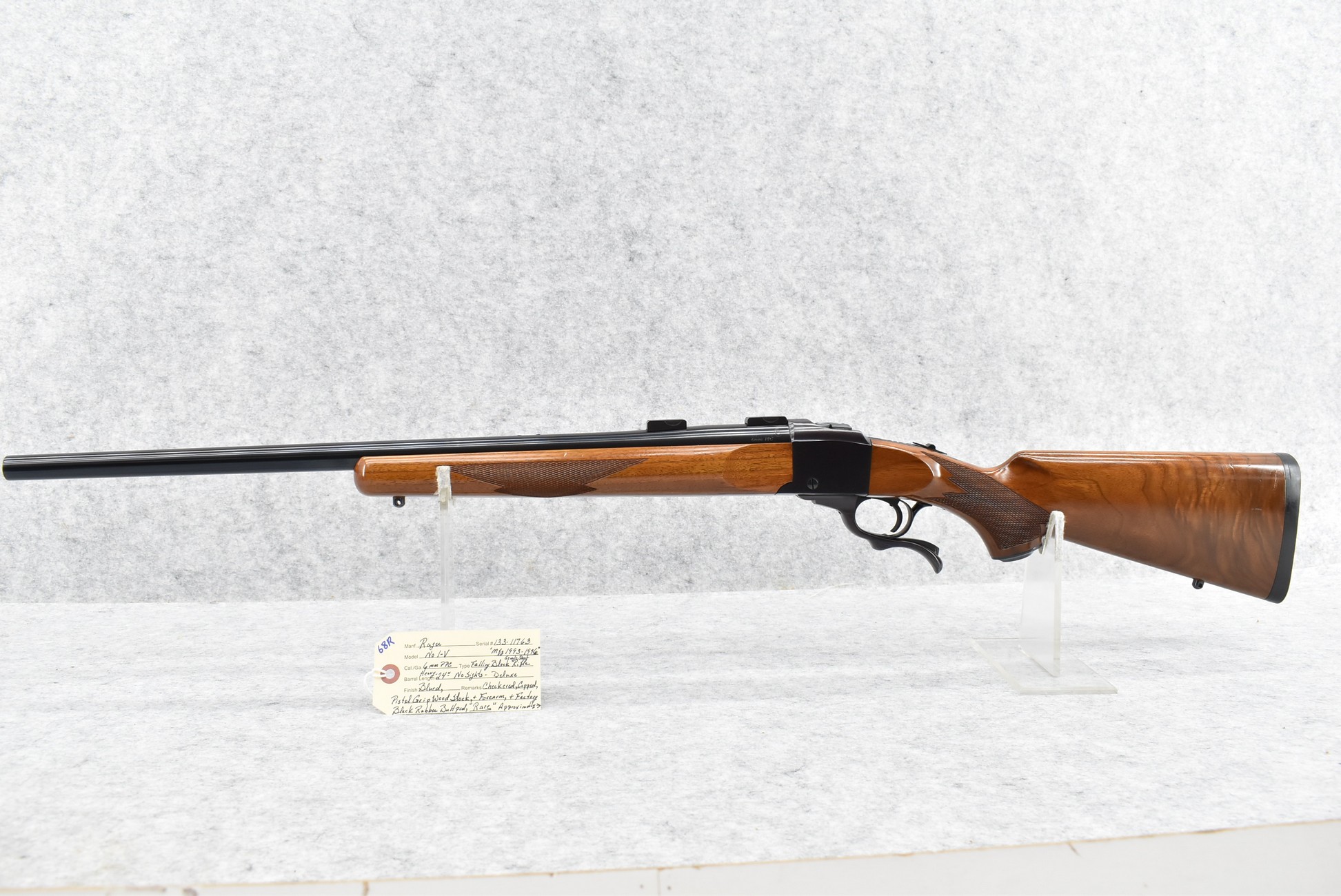 68R. Ruger – Mod. No. 1 V – 6mm PPC Cal. Single Shot Falling Block Rifle – w/24” Heavy Barrel – Blued Finish – w/Deluxe Checkered Capped Pistol Grip Wood Stocks w/Factory Butt Pad – Rare Gun! Approximately 50 or Less Manufactured in this Caliber! Great Find!