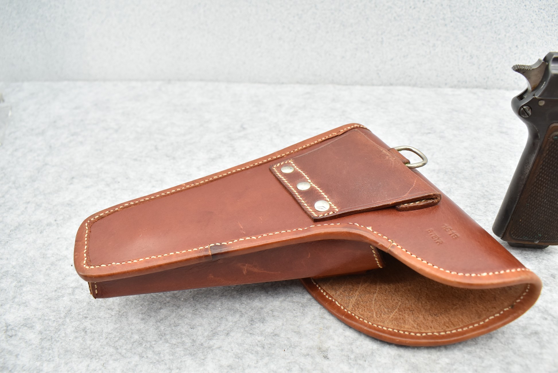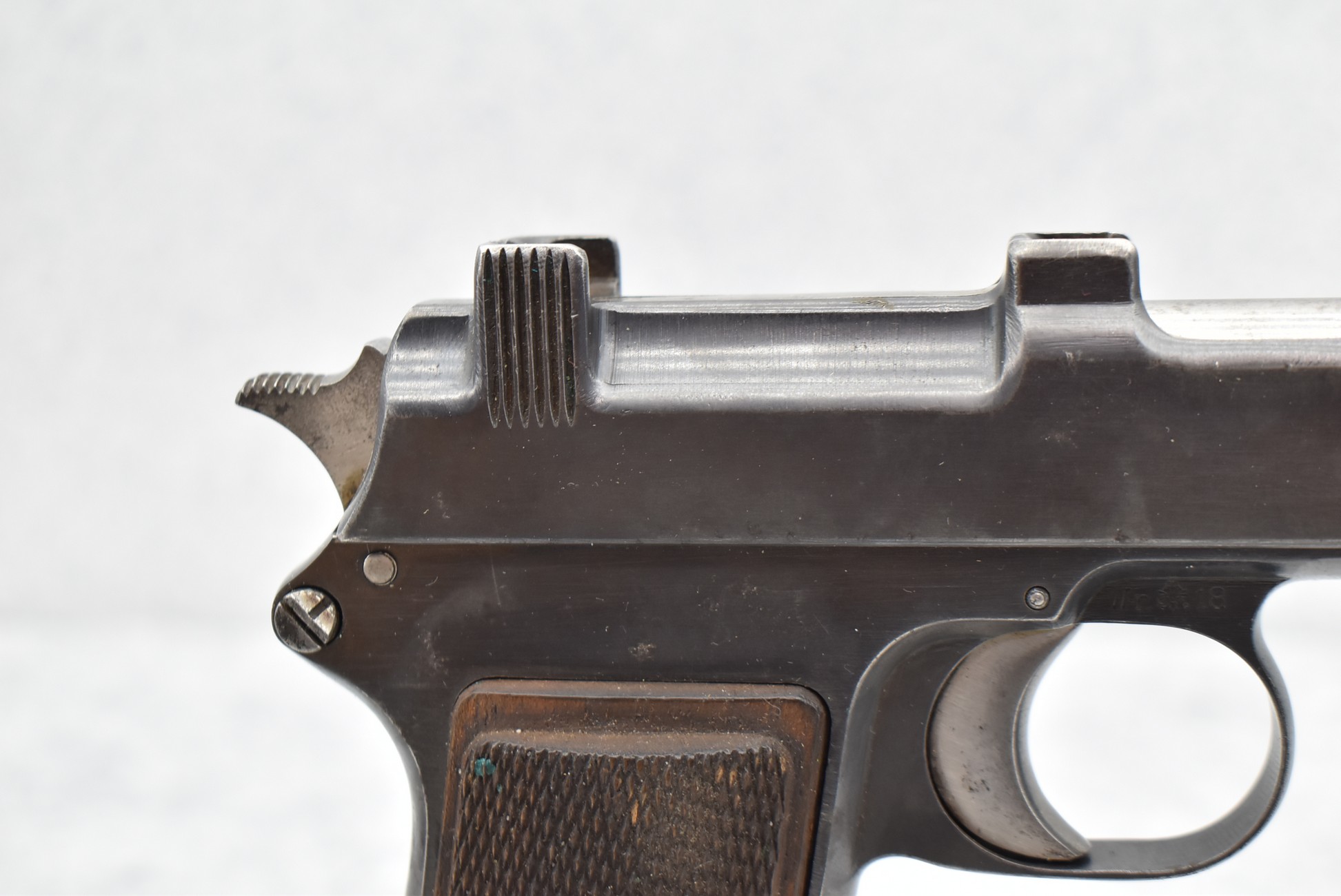 697R. Steyr – Mod. 1912 – 9mm Steyr Cal. Semi-Auto Pistol – w/4 ½” Barrel w/Sights – Blued Finish – w/Factory Checkered Wood Grips – w/Internal Magazine – w/Lanyard Loop – w/Reproduction Steyr 1918 Holster