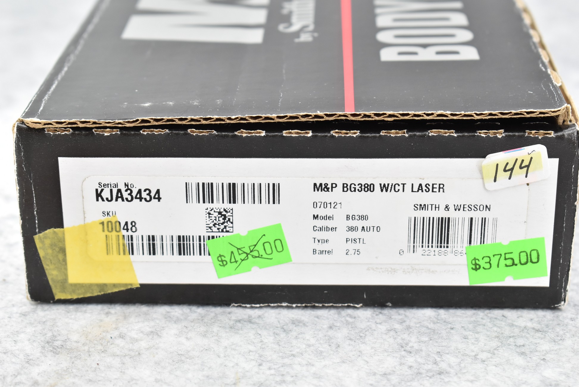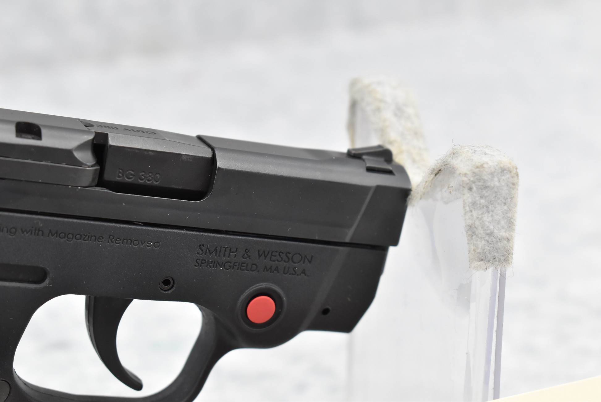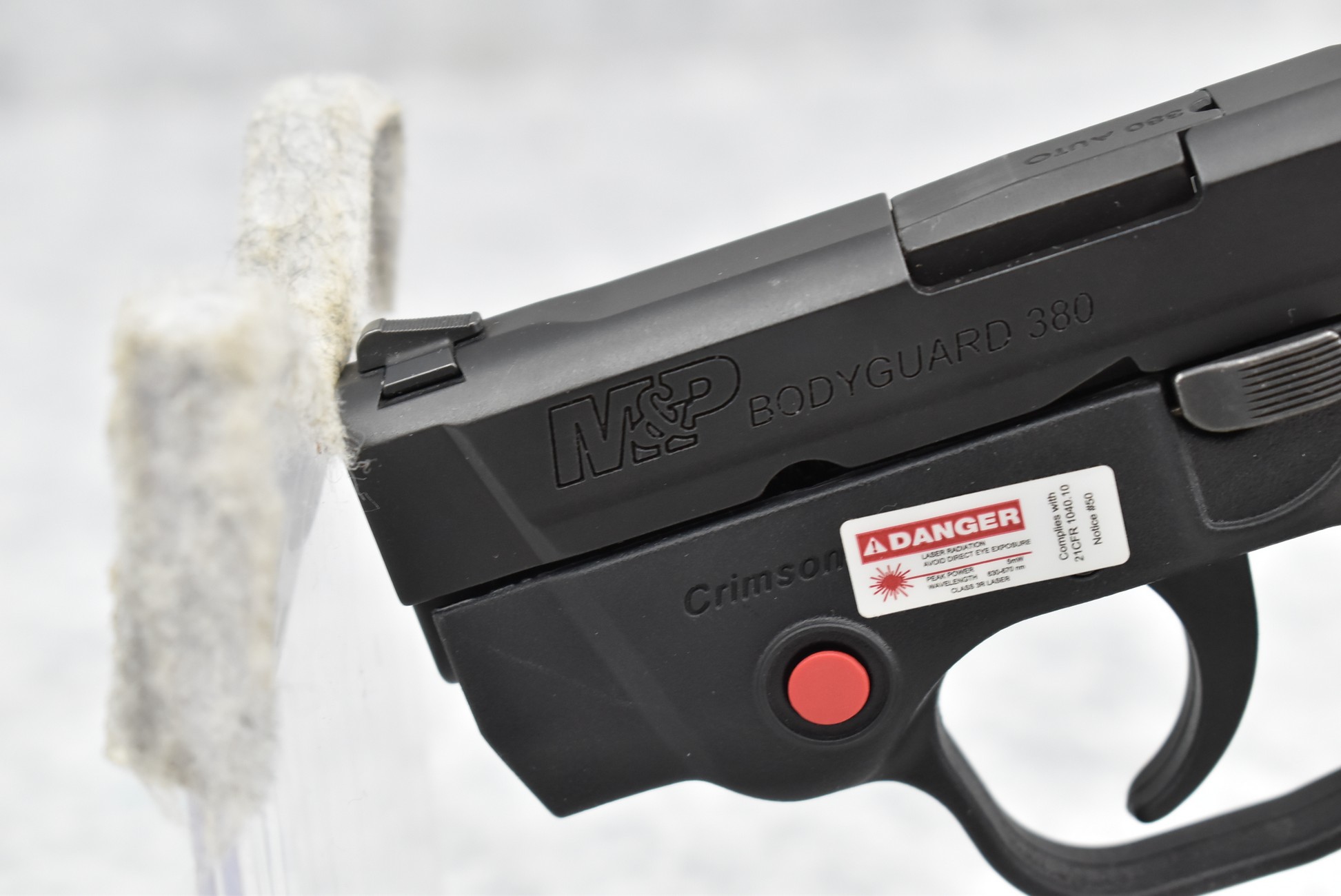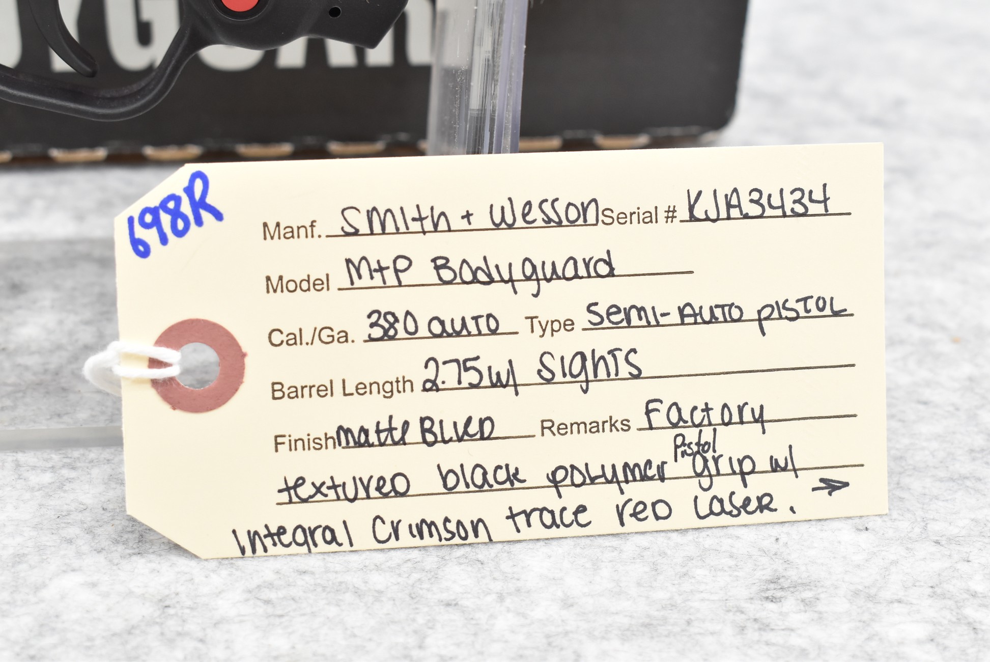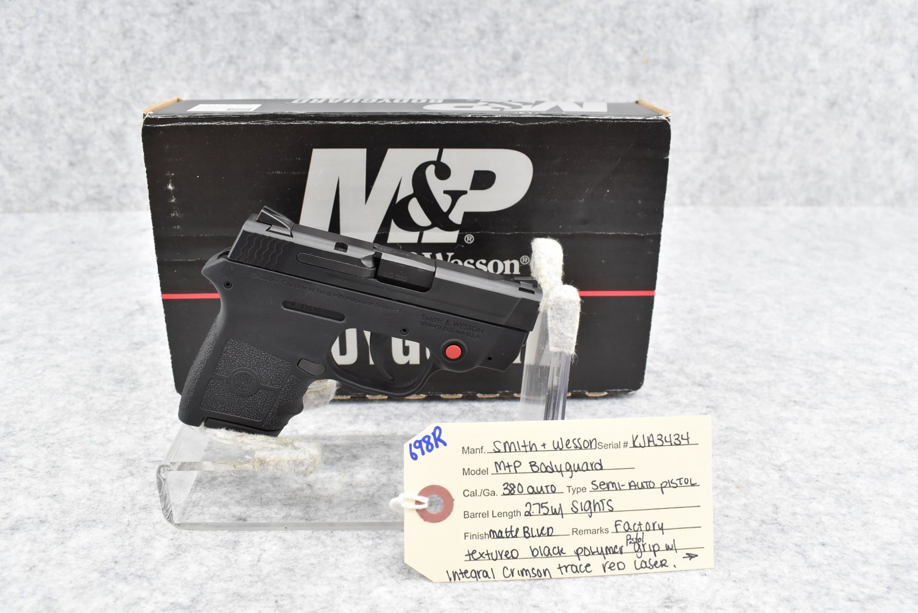 698R. Smith & Wesson – Mod. M&P Bodyguard – 380 Auto Cal. Semi-Auto Pistol – w/2.75” Barrel w/Sights – Matte Blued Finish – w/Factory Textured Black Polymer Pistol Grip – w/Integral Crimson Trace Red Laser – As New w/Factory Box, Manual, Pistol Soft Case & 4 Mags