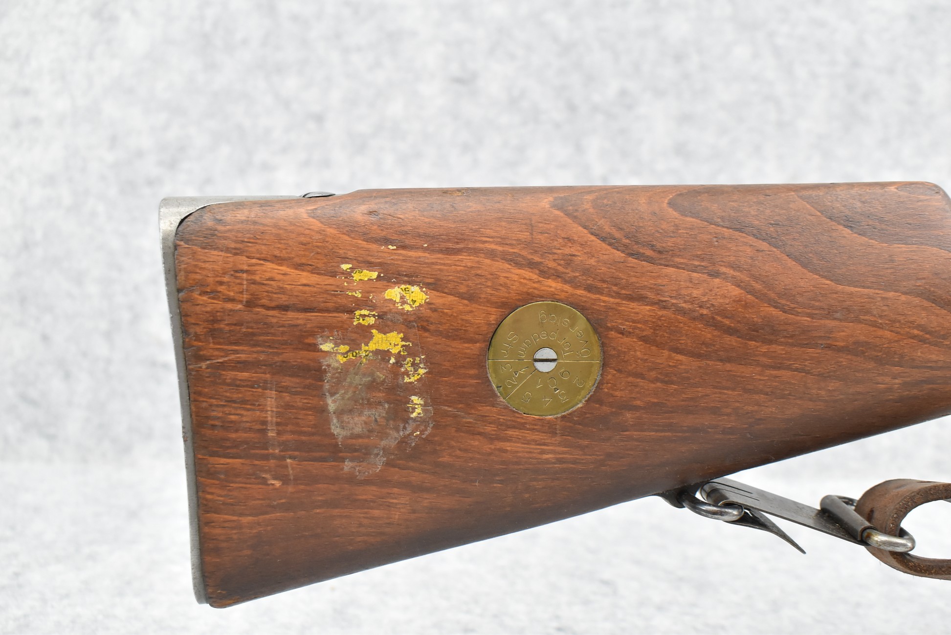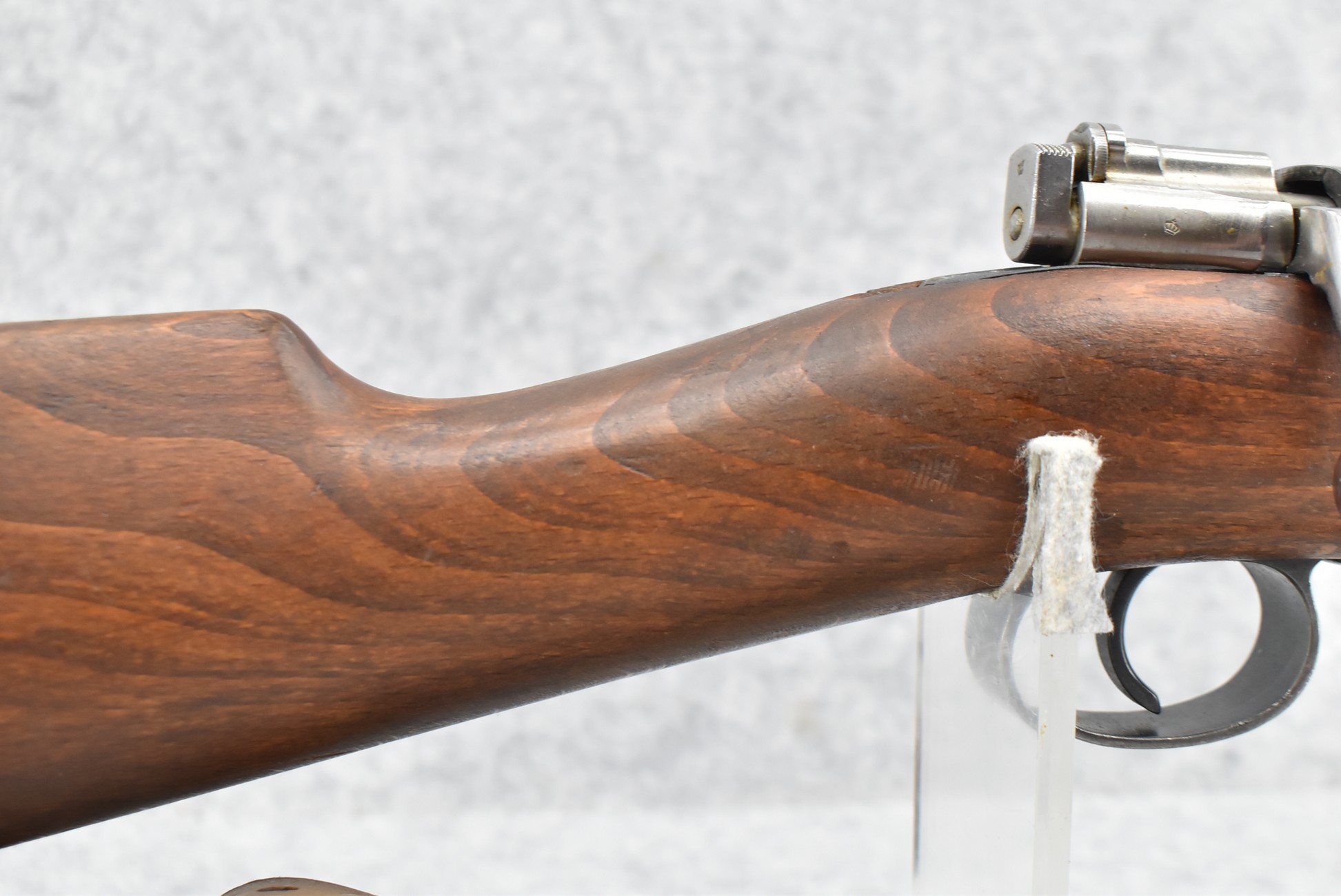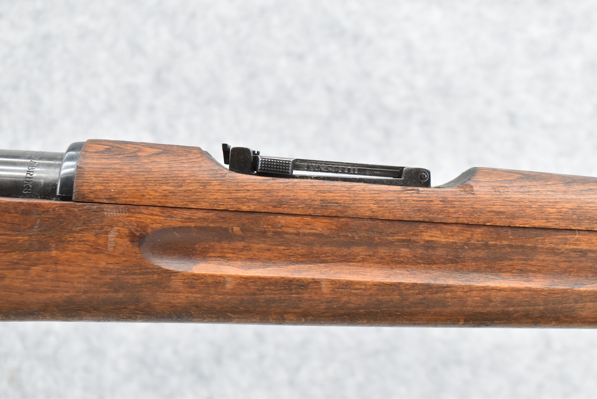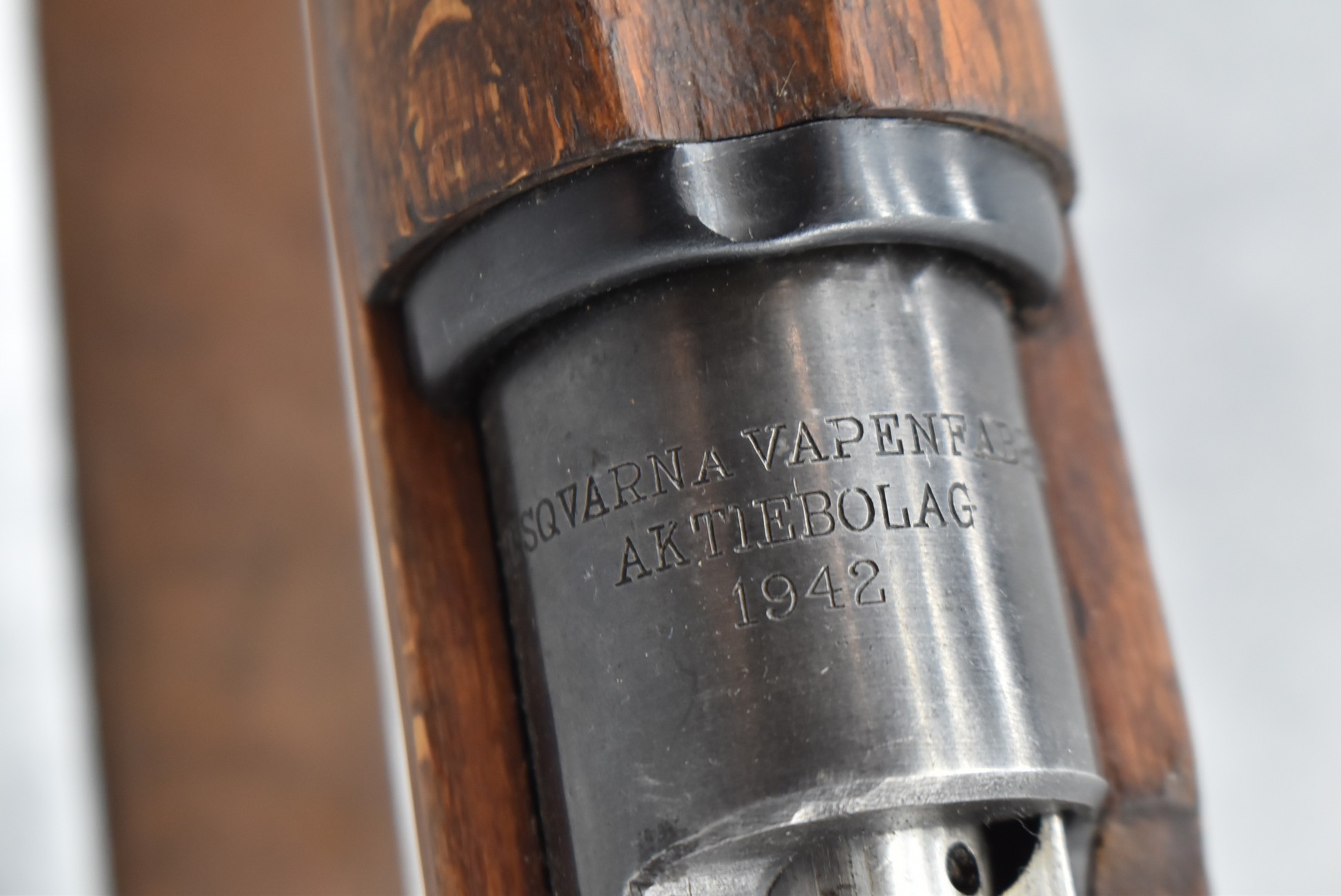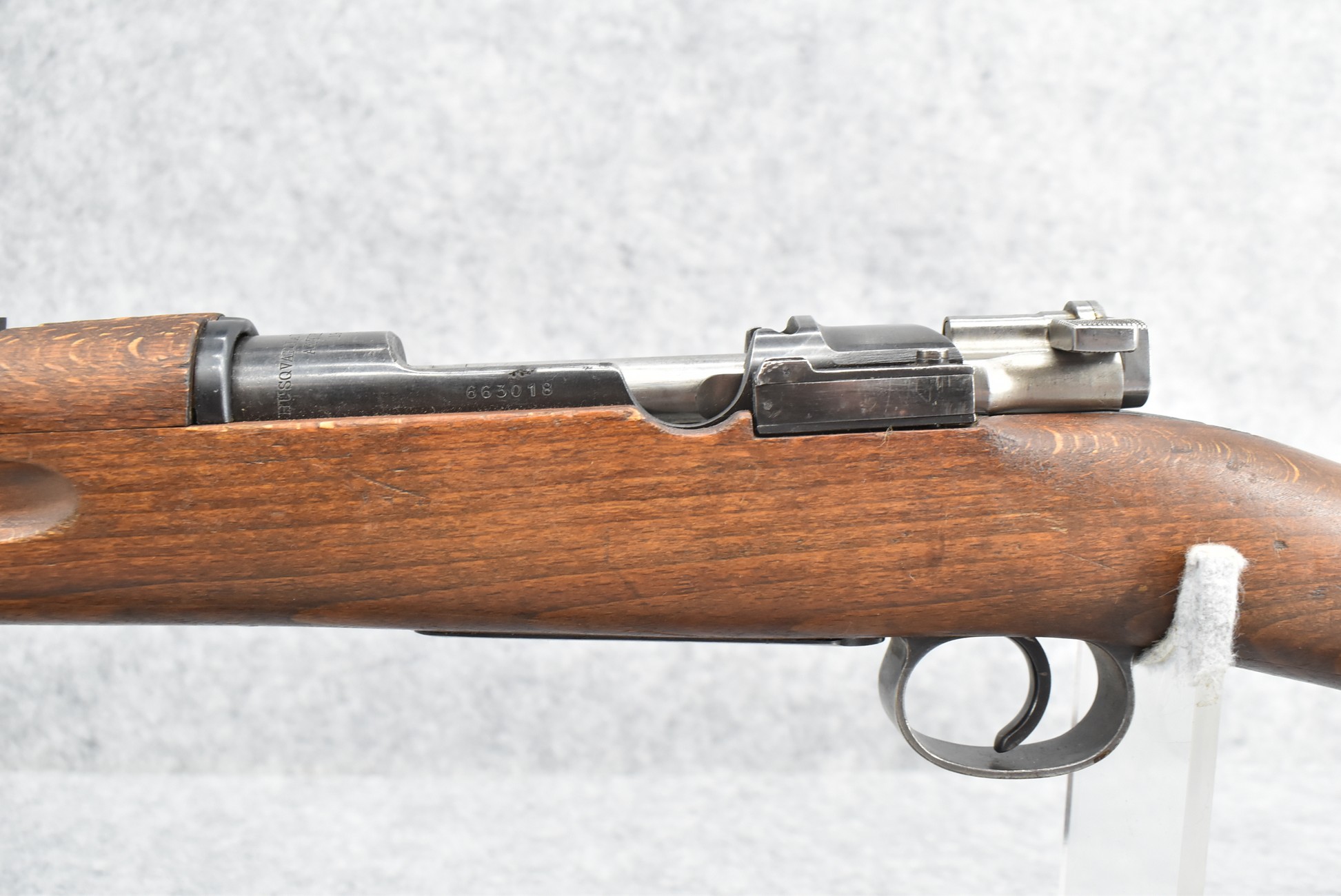 69R. Husqvarna – Mod. M38 – 6.5×55 Cal. Bolt Action Rifle – w/24” Barrel w/Hooded Ramp Front and Adjustable Rear Ladder Sights – Blued Finish – w/Full Straight Grip Wood Stock w/Factory Butt Plate – w/Cleaning Rod – w/Leather Military Sling – Bolt and Butt Plate Numbers Match to Gun – Import Marked – Dated 1942