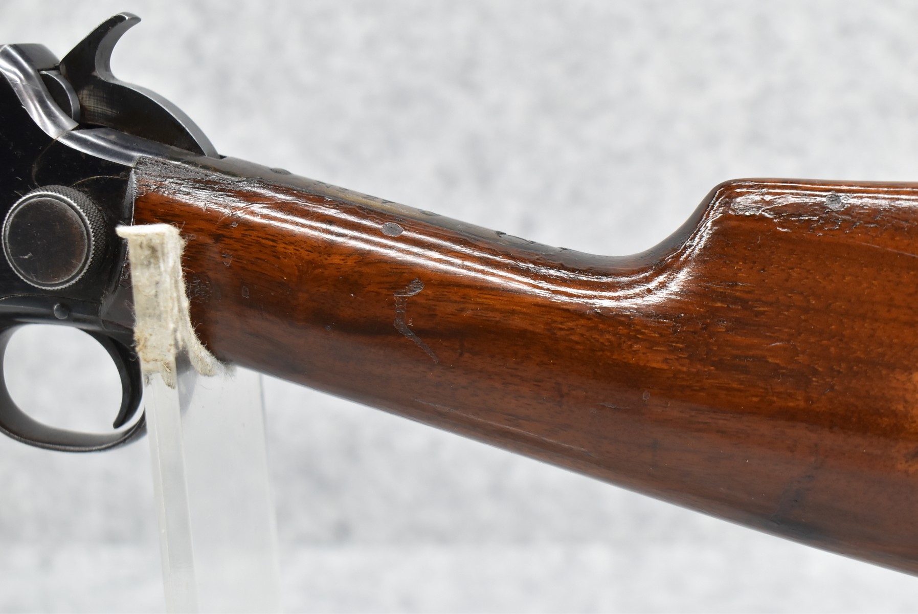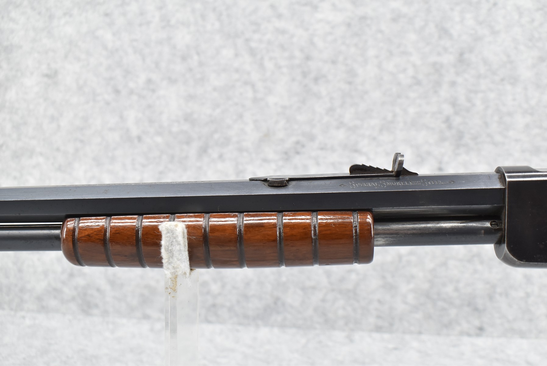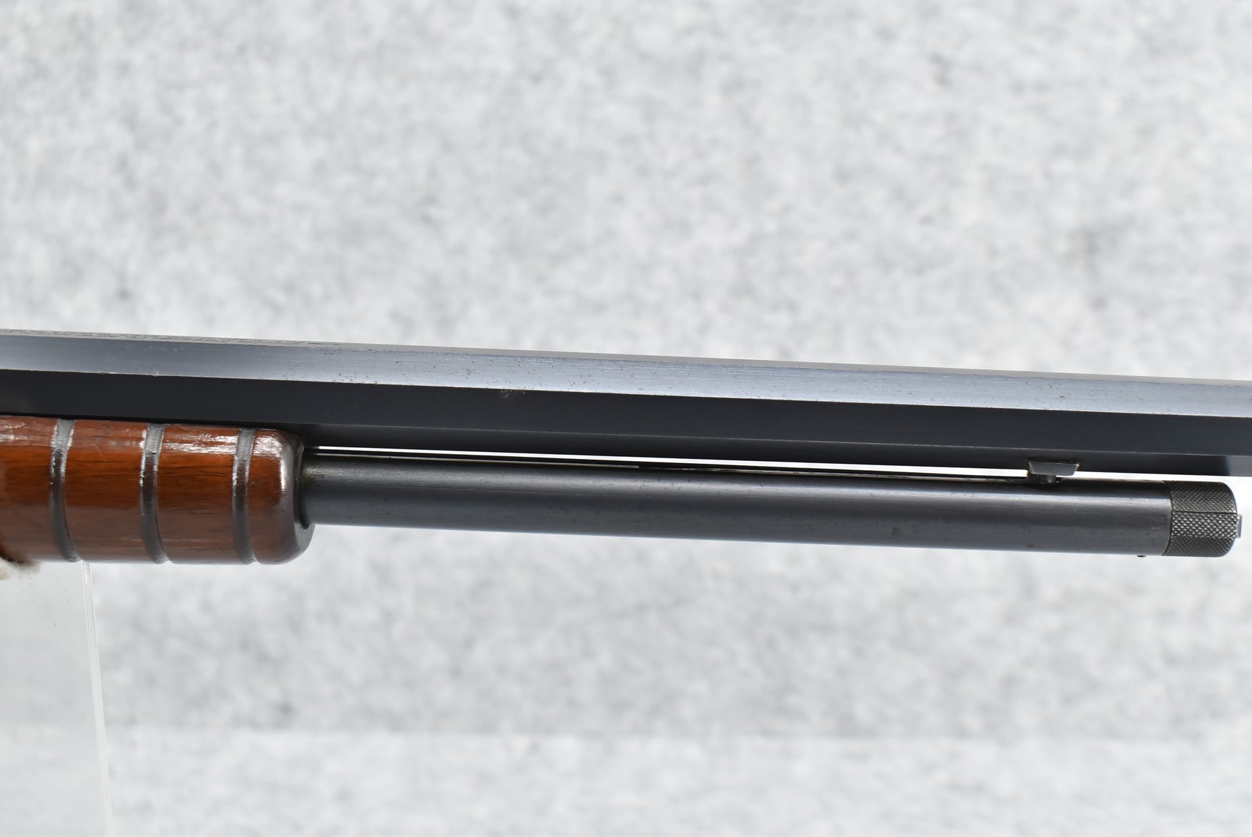 70R. Marlin – Mod. No. 27 – 25-20 Marlin Cal. Pump Action Rifle – w/24” Octagon Barrel w/Blade Front & Adj. Rear Sights w/2/3 Length Tubular Magazine – Excellent Strong Blued Finish – w/Straight Grip Wood Stock & Ribbed Forearm w/Factory Metal Butt Plate