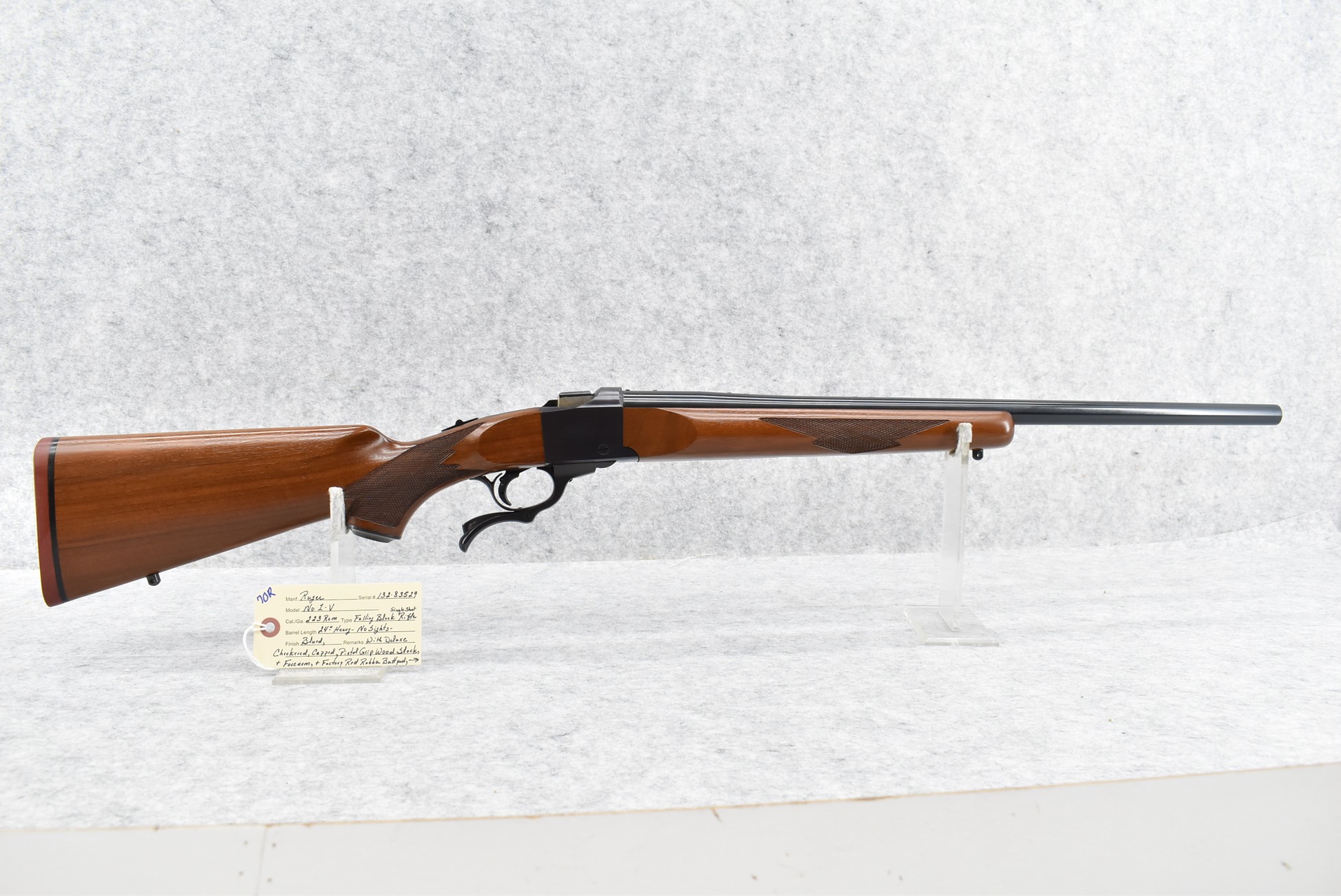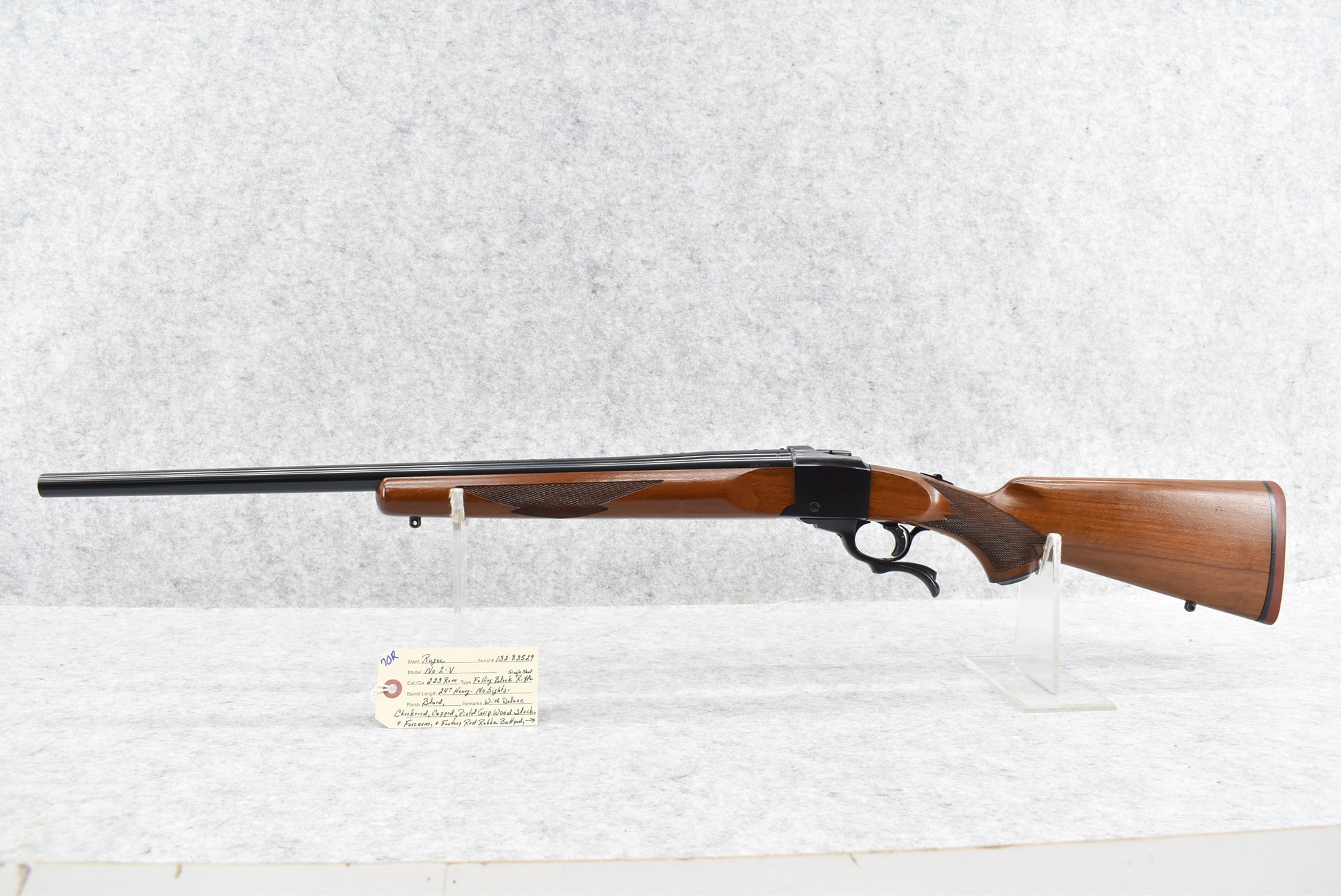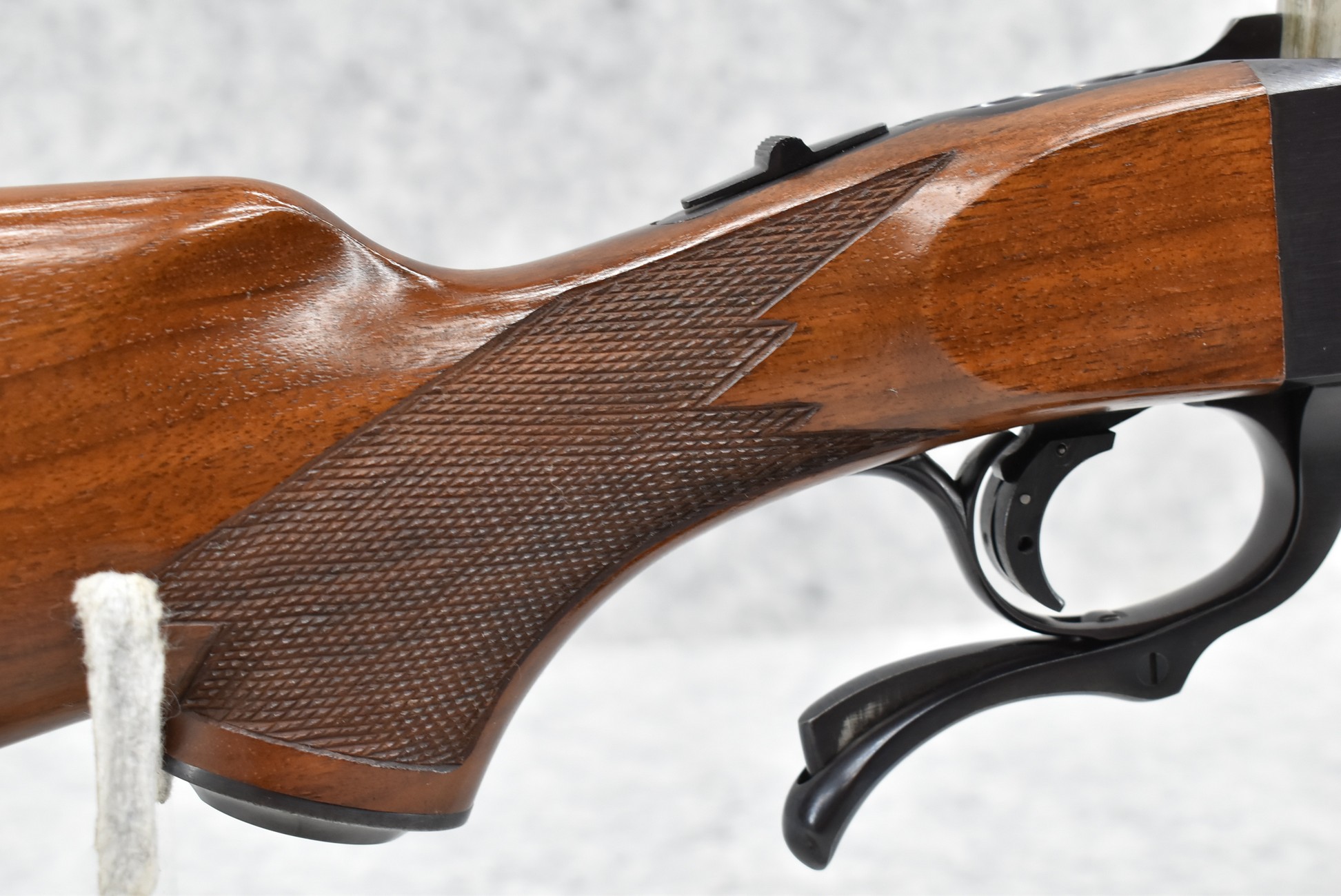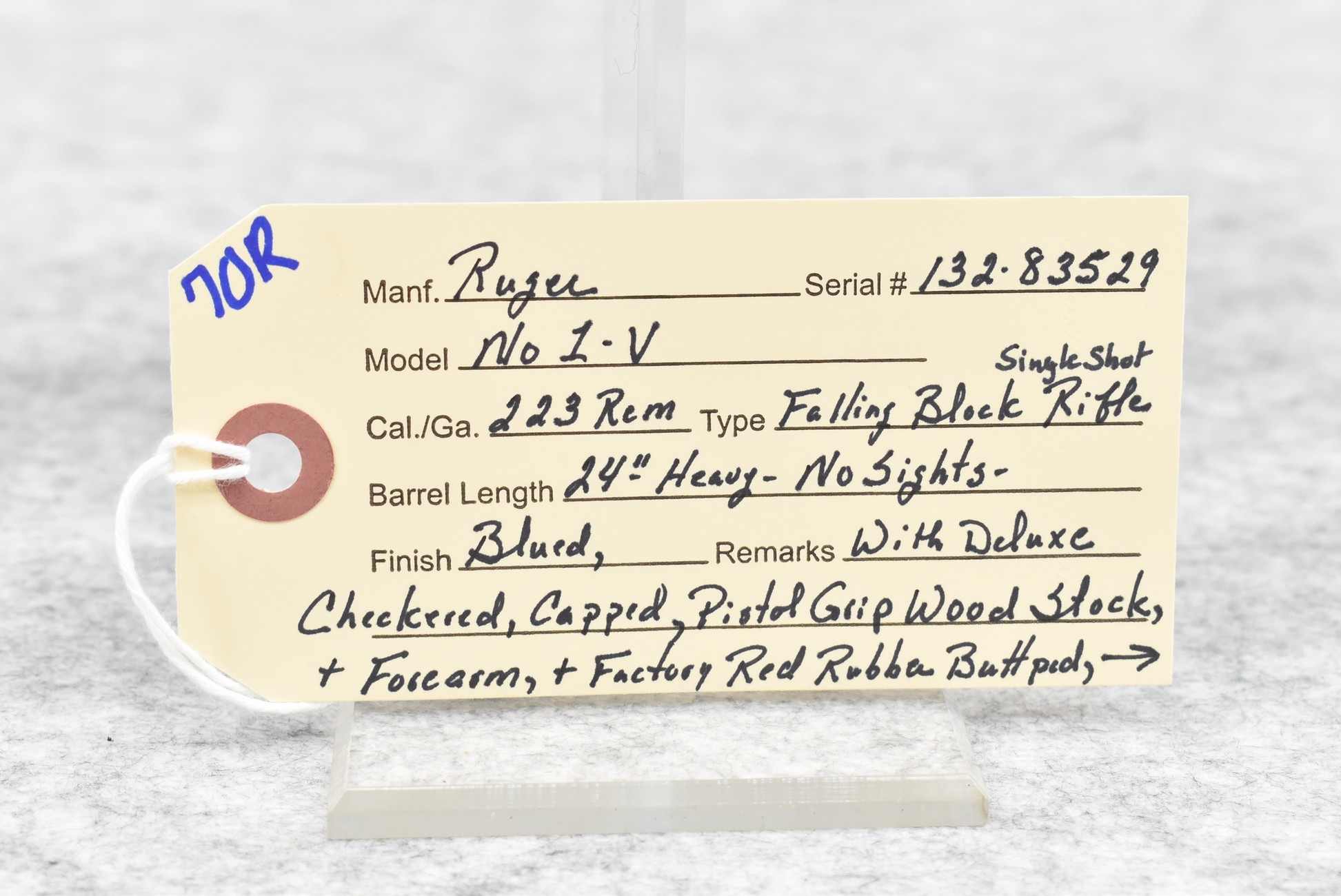 70R. Ruger – Mod. No. 1 V – 223 Rem. Cal. Single Shot Falling Block Rifle – w/24” Heavy Barrel – Blued Finish – w/Deluxe Checkered Capped Pistol Grip Wood Stocks w/Factory Butt Pad – w/Trigger Shoe