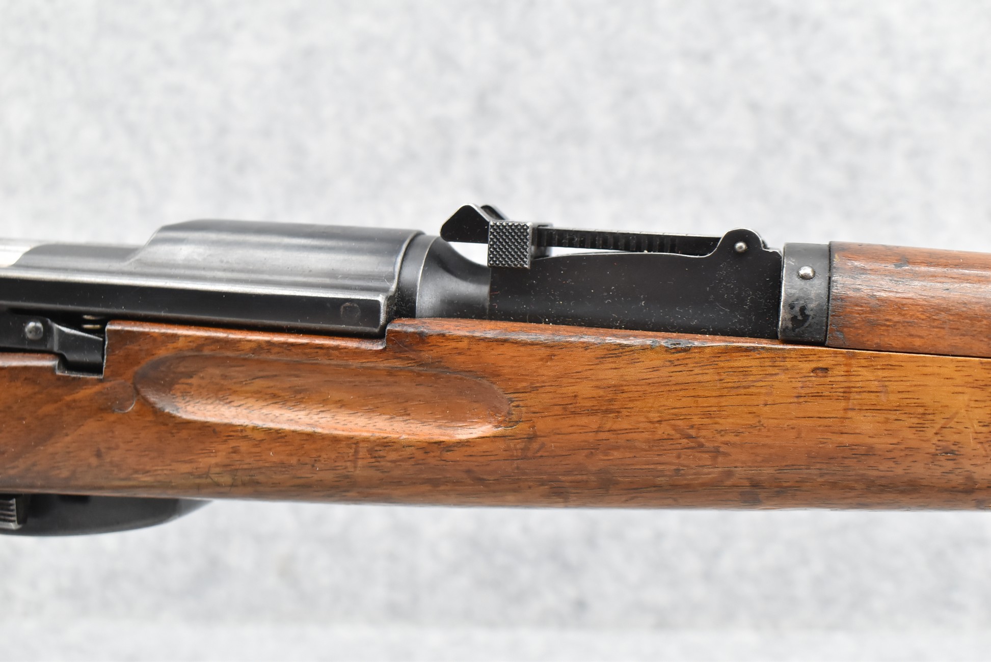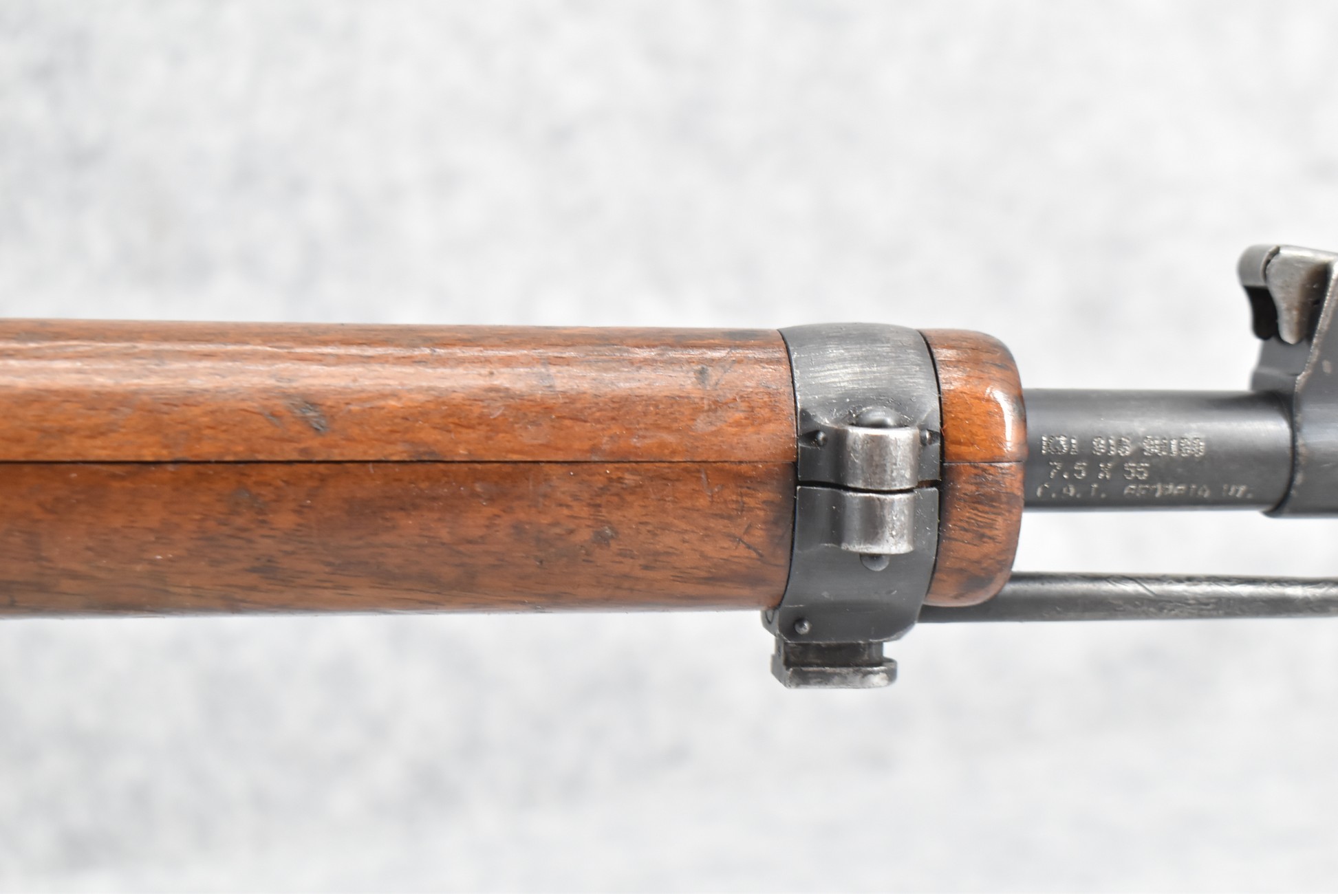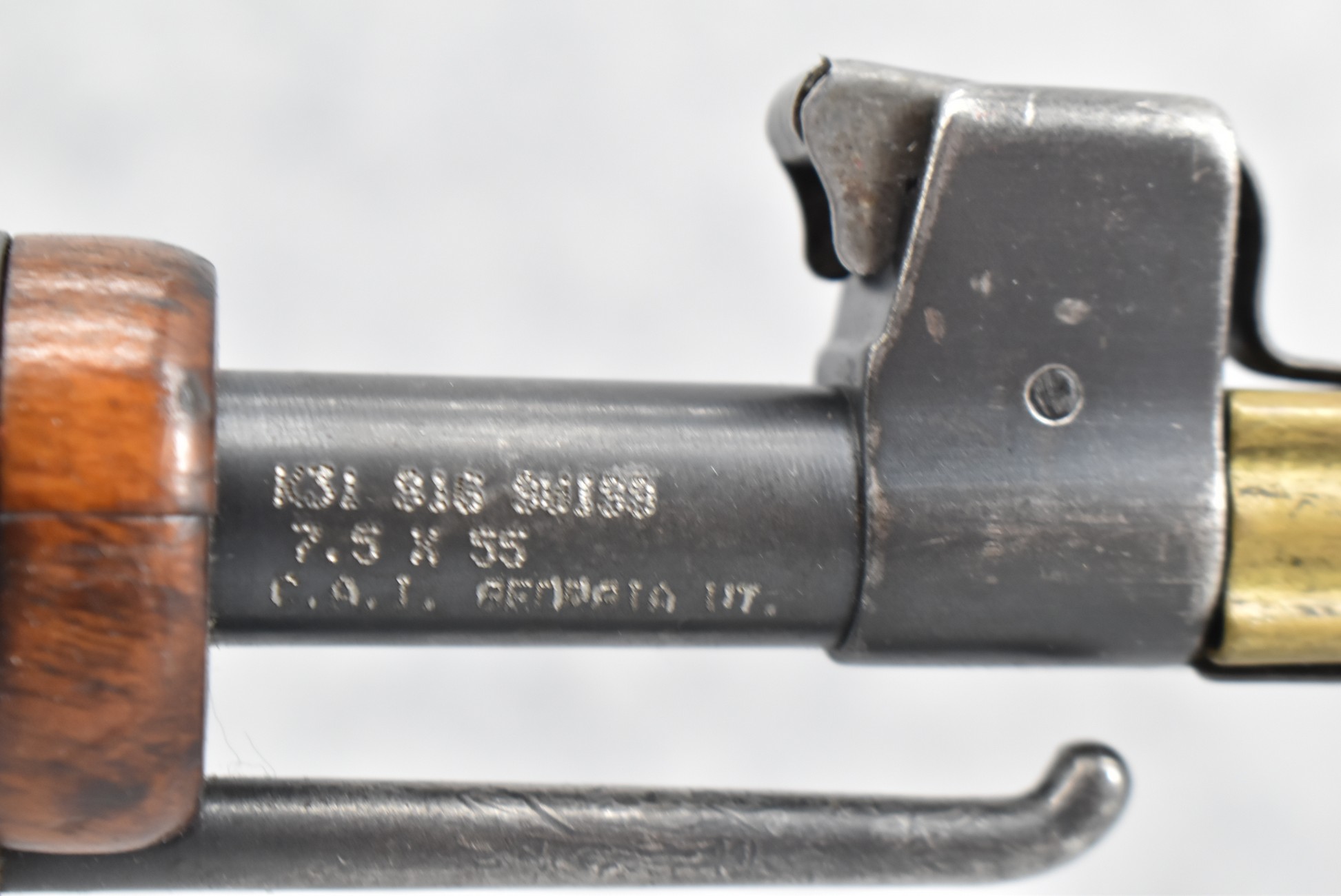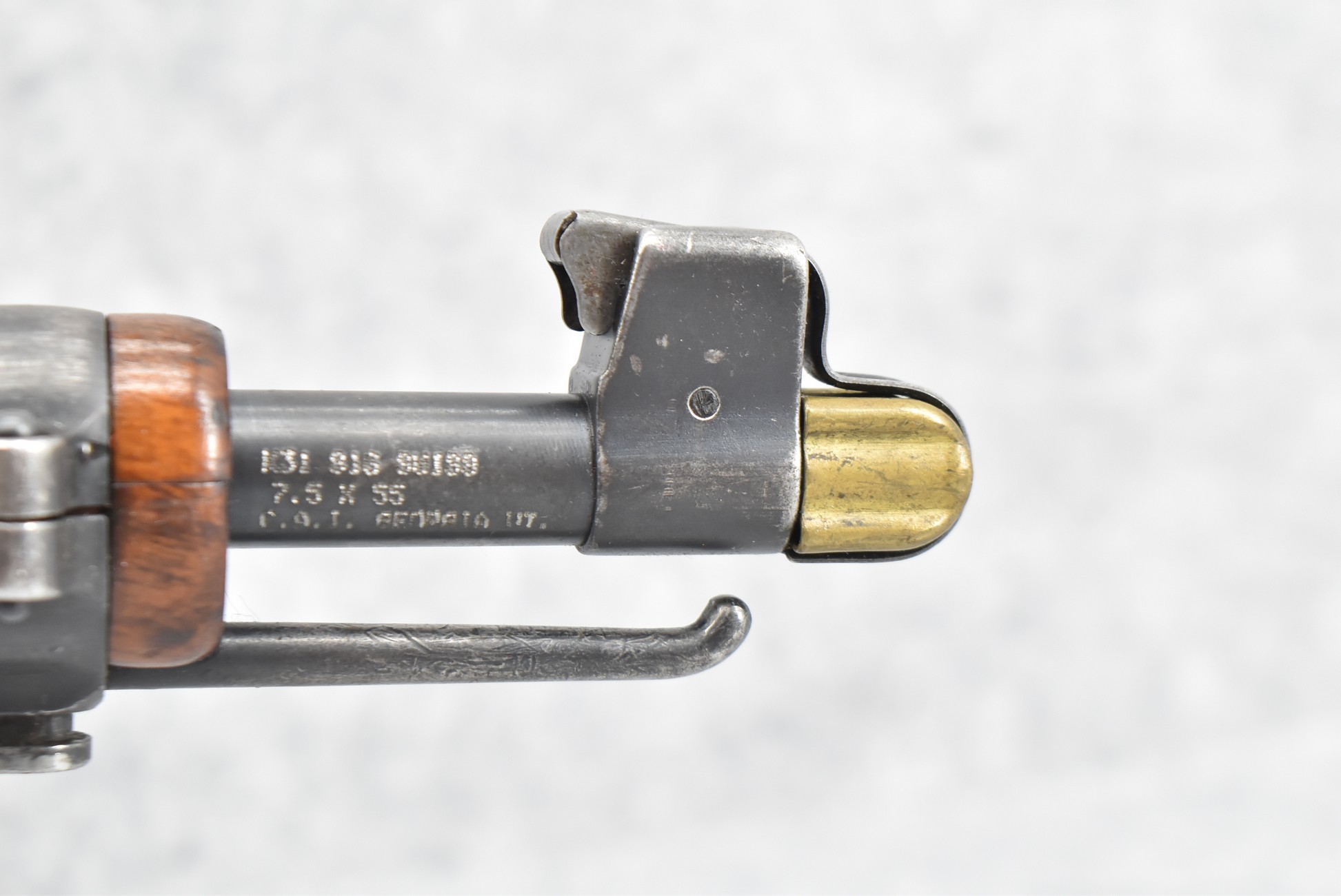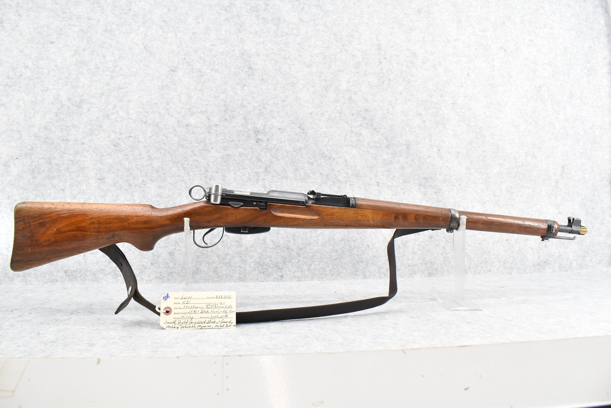 70R. Swiss – Mod. K-31 – 7.5x55mm Cal. Straight Pull Bolt Action Rifle – w/25¾” Barrel w/Blade Front and Adjustable Rear Sights – Military Finish – w/Smooth Pistol Grip Wood Stock and Guard w/Butt Plate – w/Matching Detachable Magazine – w/Leather Sling – w/Brass Muzzle Cap – Import Marked