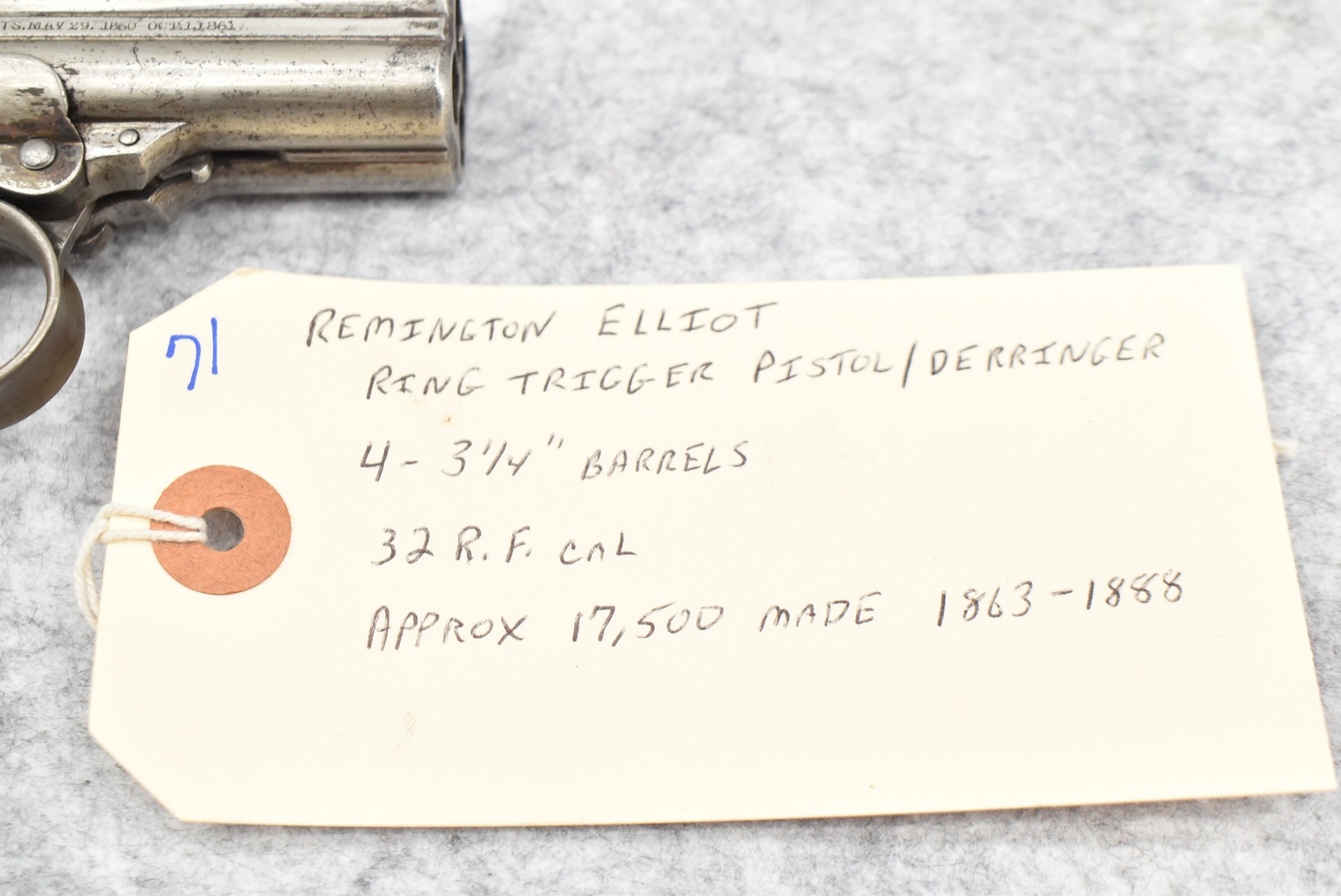 71. Remington-Elliot – Ring Trigger Pistol – 32 RF Cal. Derringer – w/4, 3 ¼” Barrels – w/Checkered Hard Rubber Grips – Approx. 17,500 Mfg. Between 1863-1888