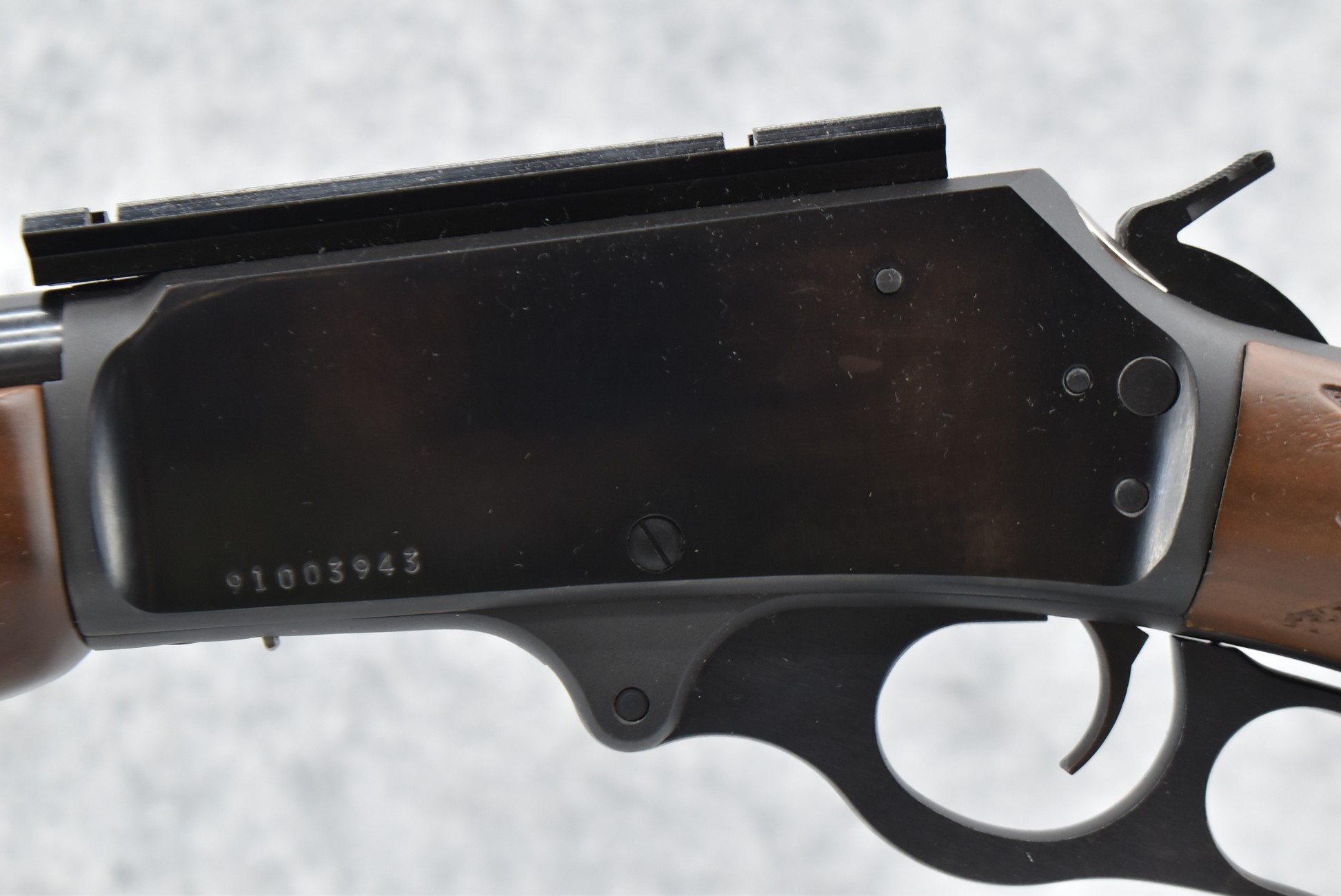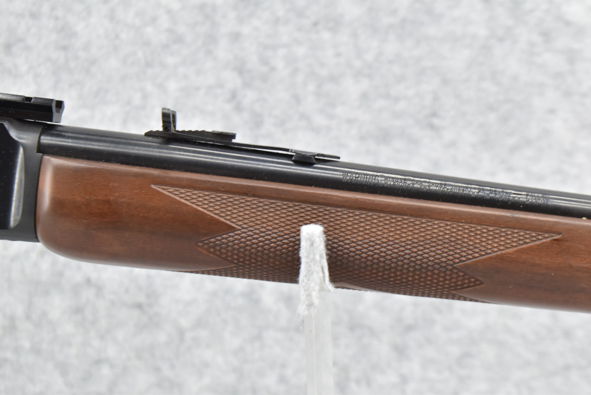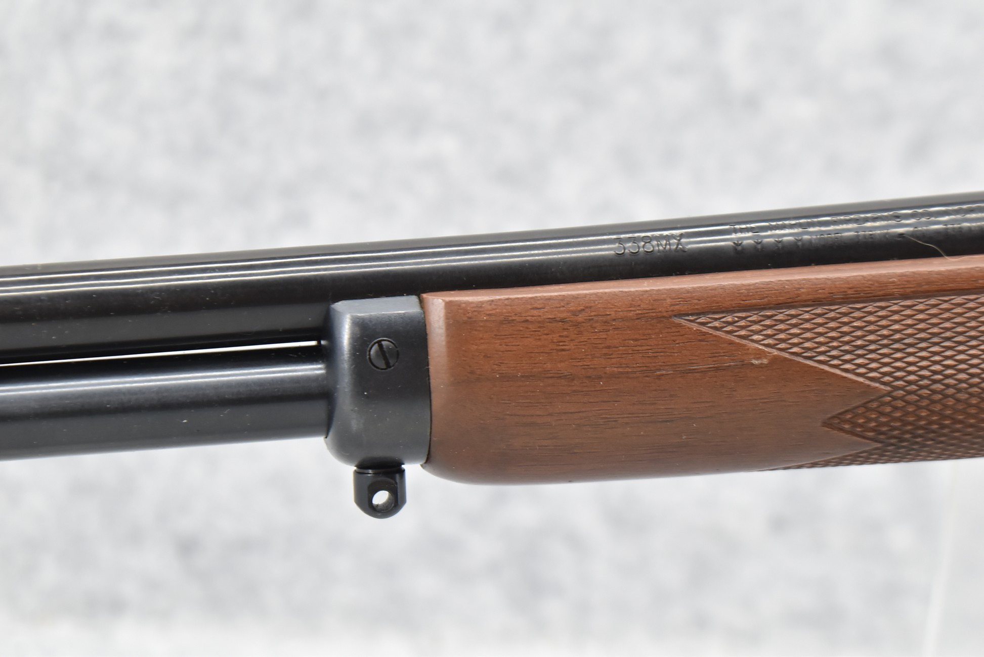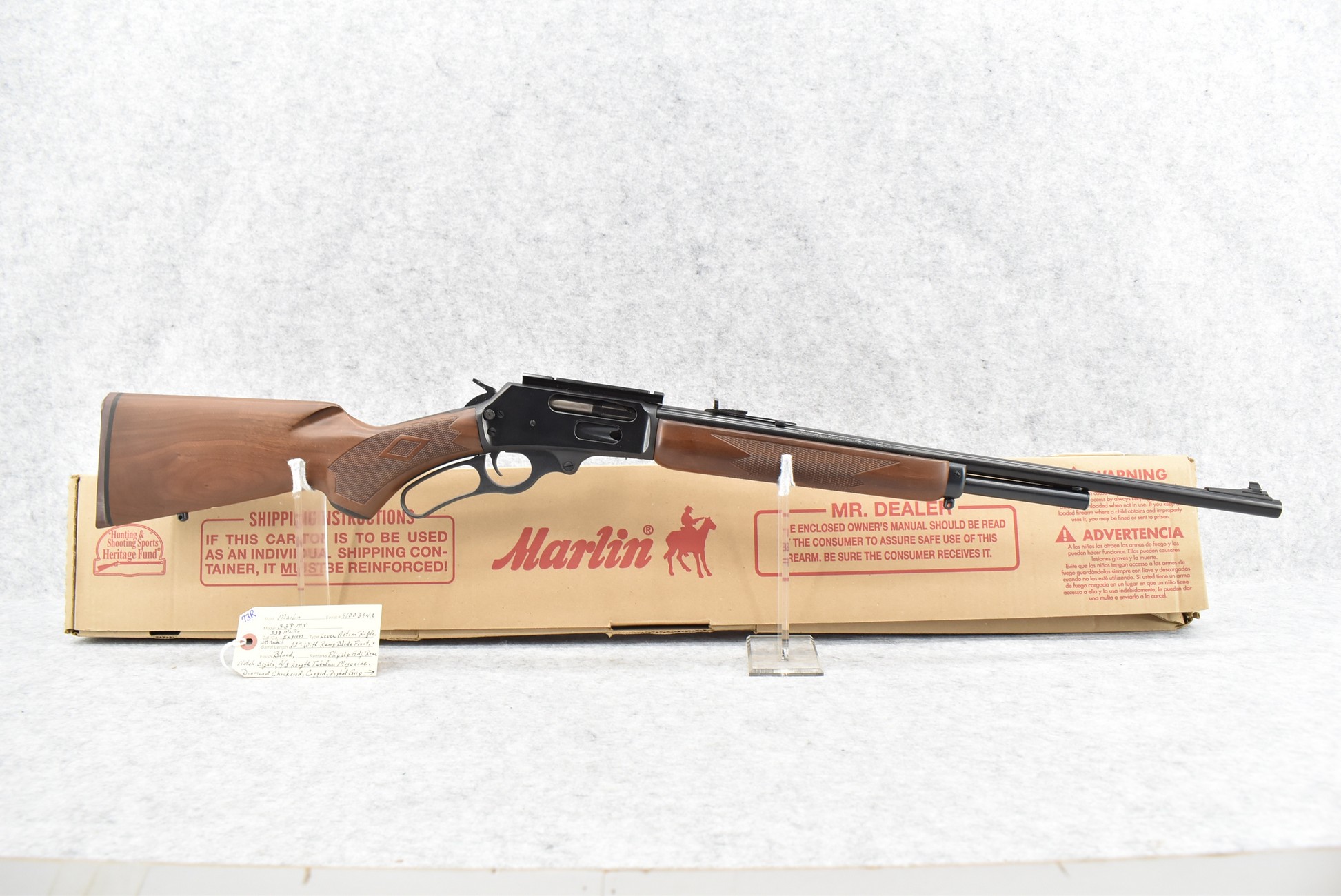 73R. Marlin – Mod. 338MX – 338 Marlin Express Cal. Lever Action Rifle – w/22” JM Marked Barrel w/Ramp Blade Front and Flip-Up Adjustable Rear Notch Sights – Blued Finish – w/Diamond Checkered Capped Pistol Grip Wood Stock and Forearm w/Factory Brown Rubber Butt Pad – w/2/3 Length Tubular Magazine – w/Mounting Base for Optics – Manufactured 2009-2011 Only