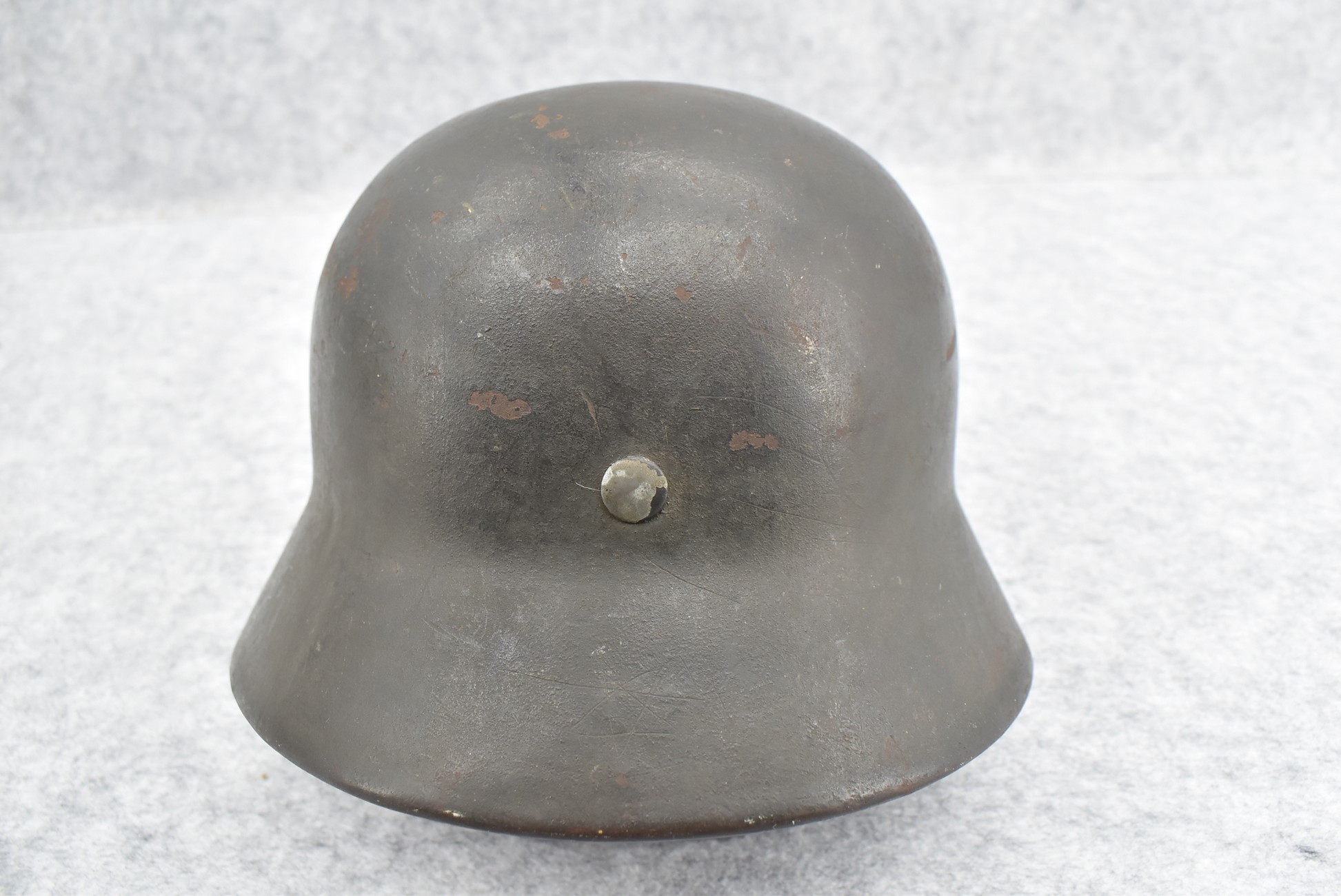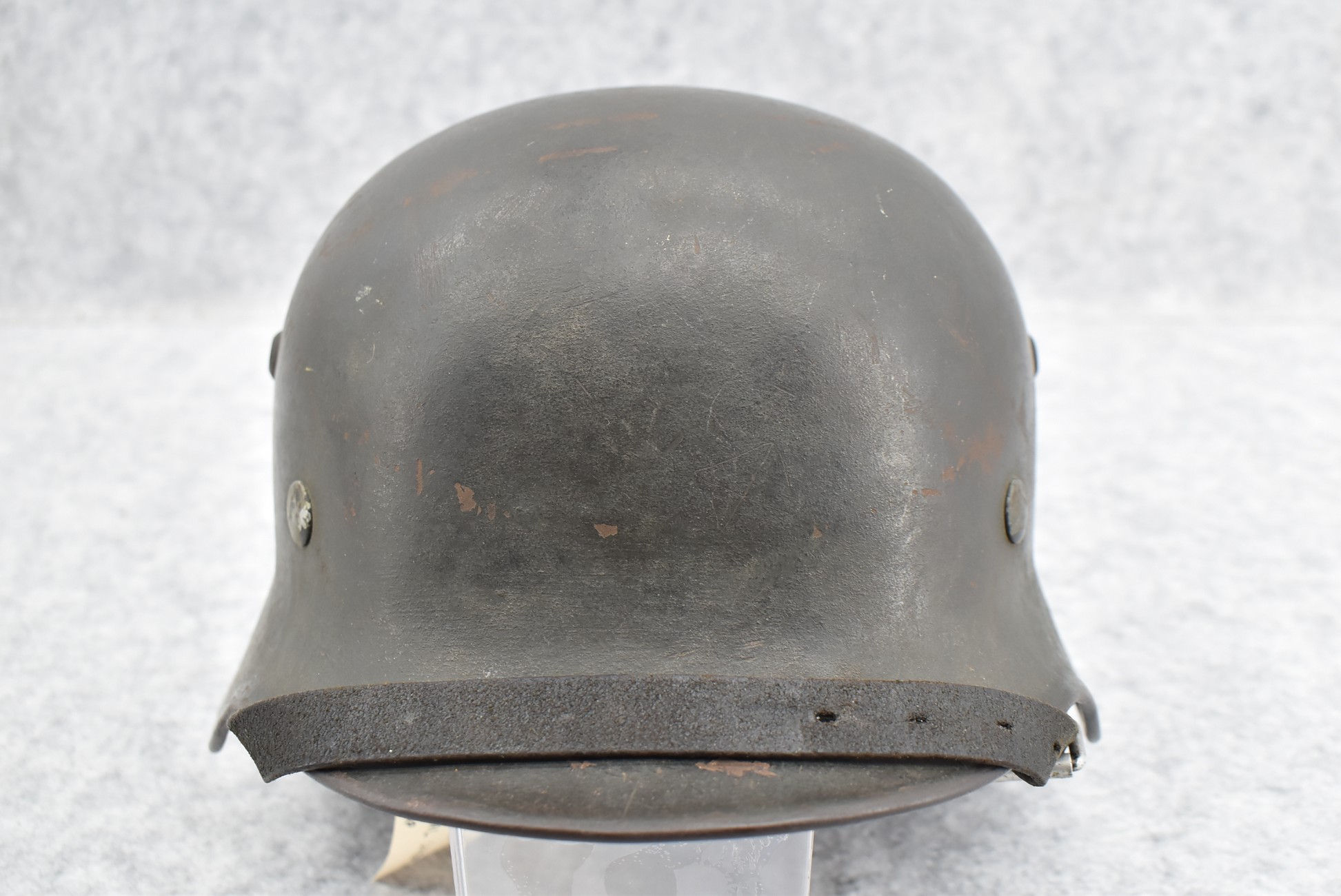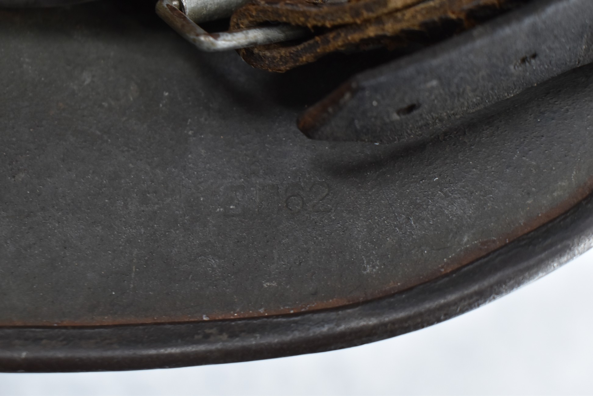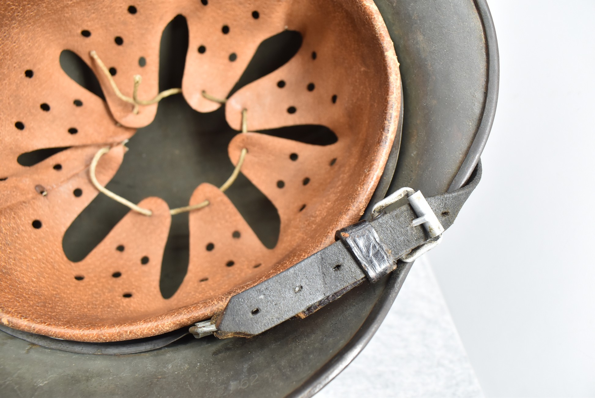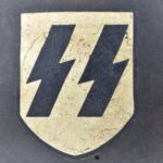 744. WWII German – Waffen-SS – M-35 Single Decal Helmet EF62 Shell w/E.T. Decal – Lot #4535 – w/Original Liner, Drawstring & Chin Strap