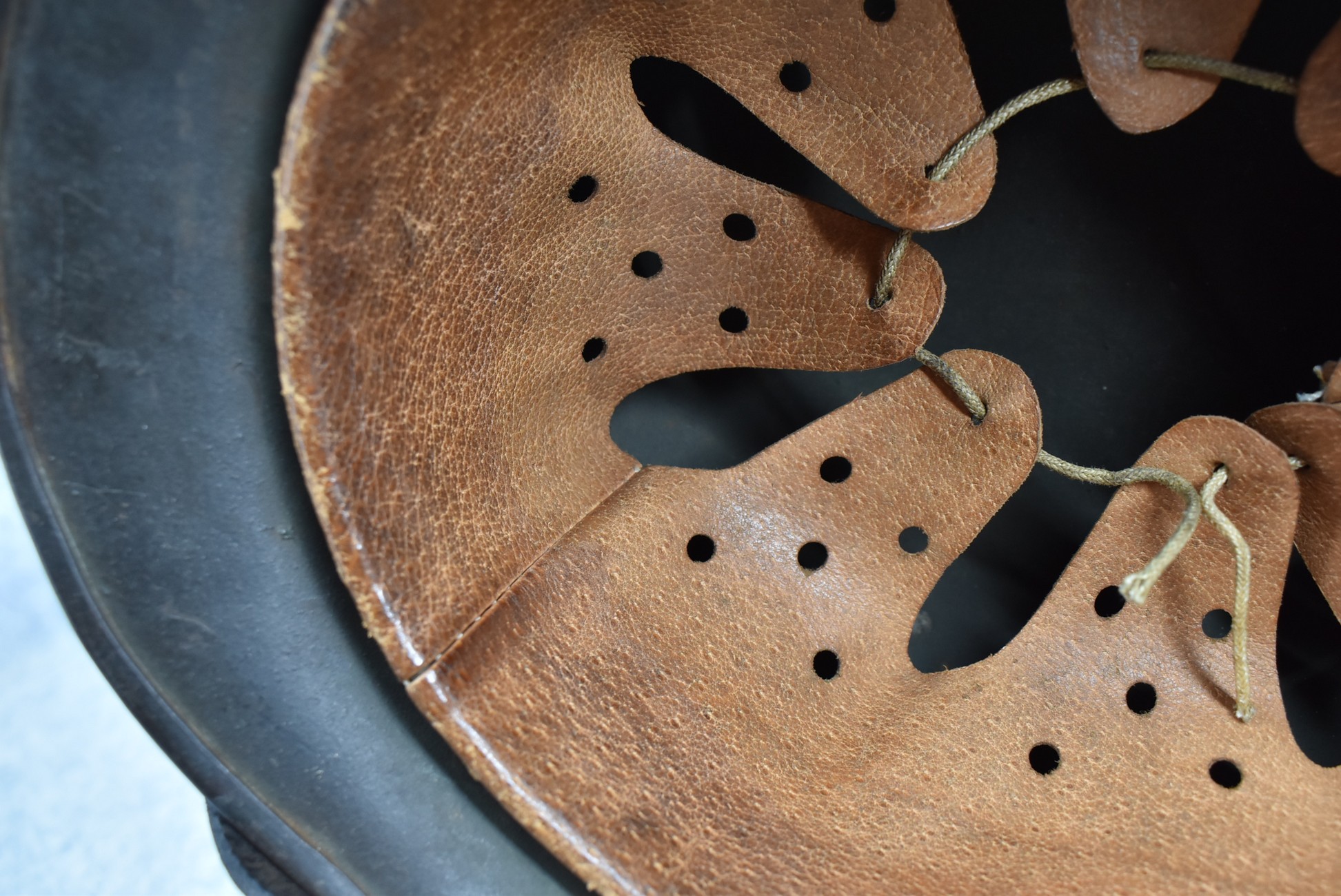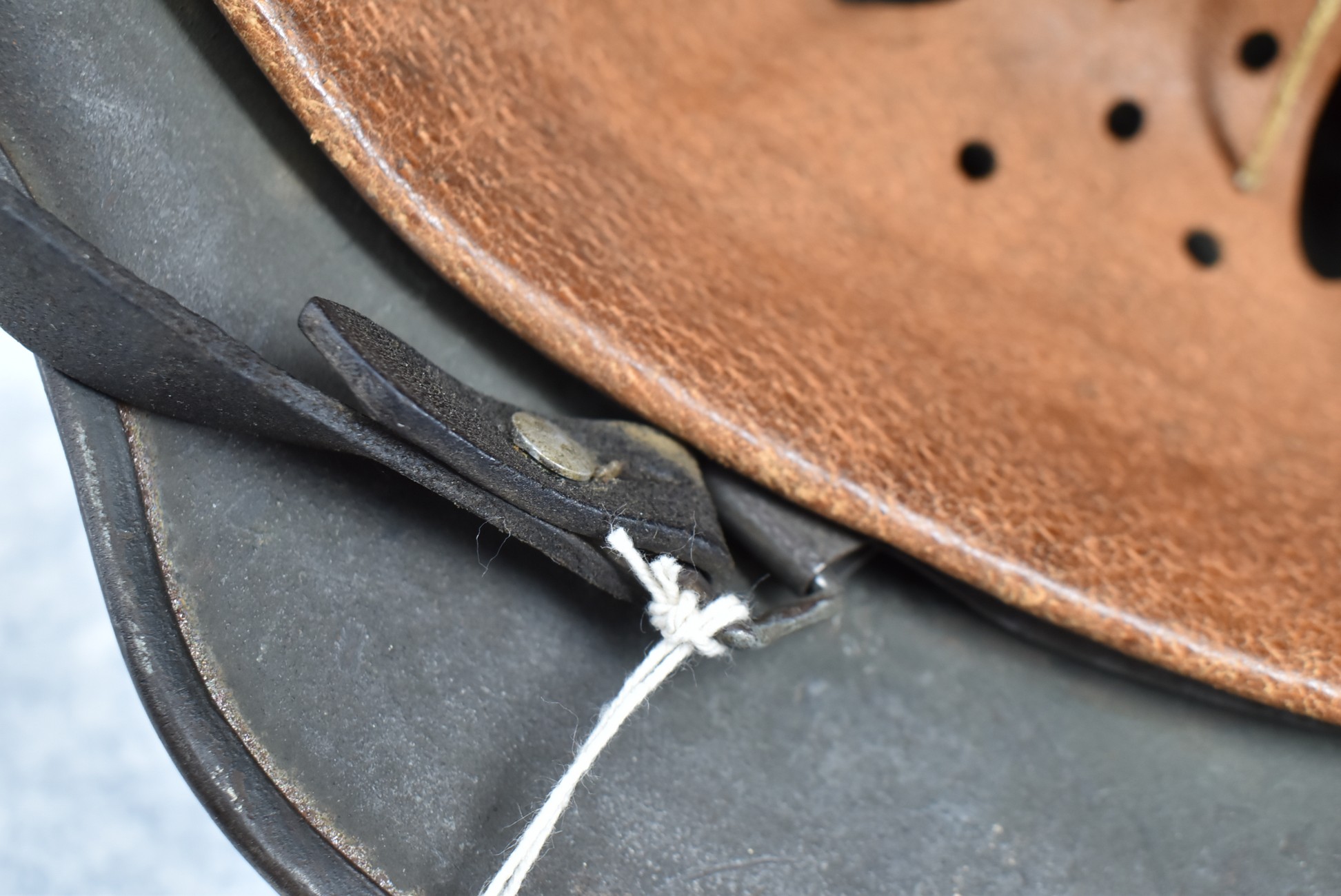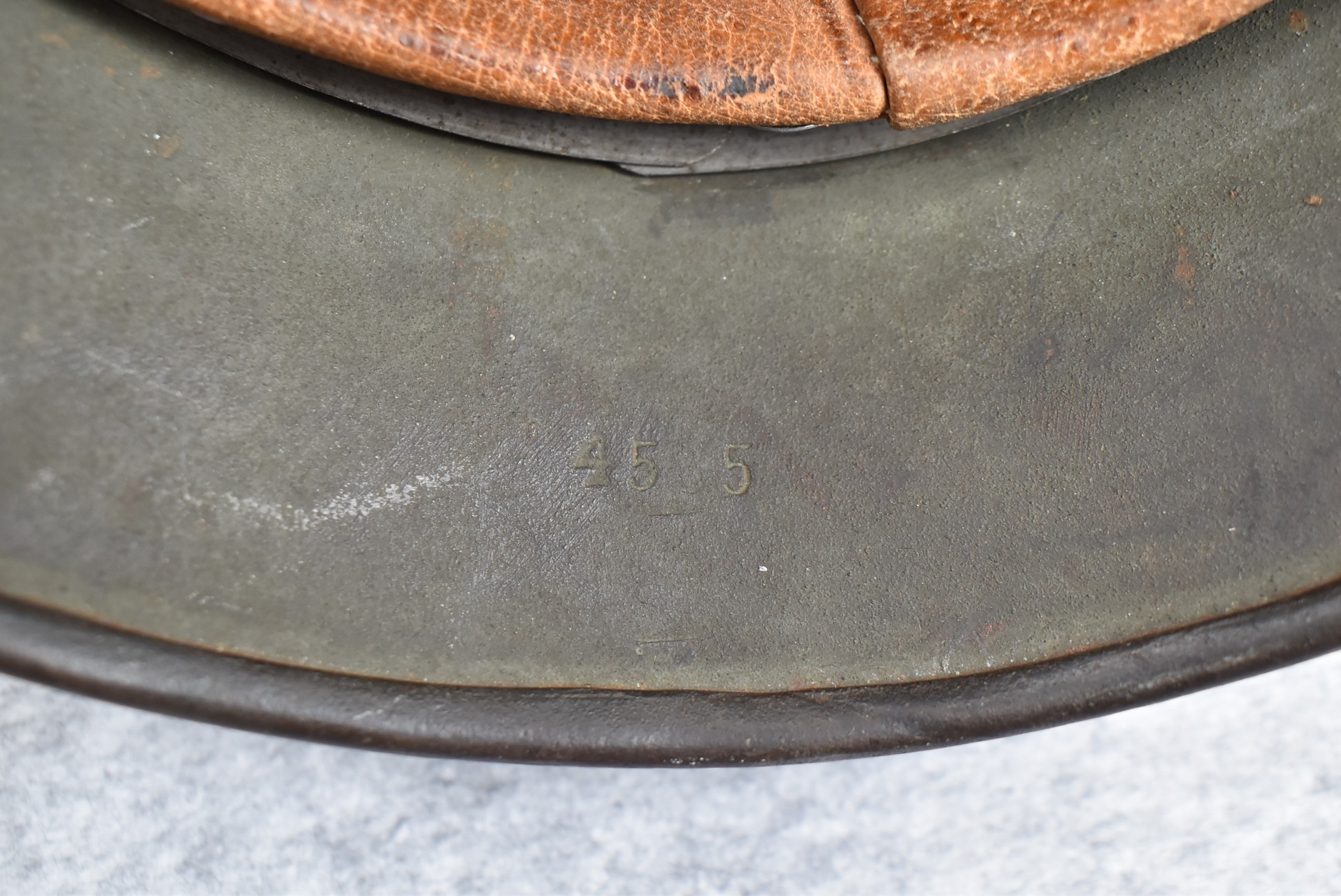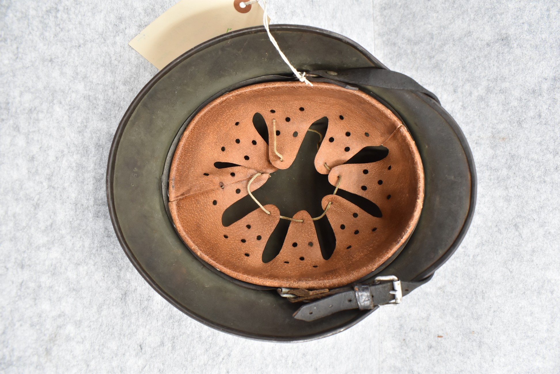744. WWII German – Waffen-SS – M-35 Single Decal Helmet EF62 Shell w/E.T. Decal – Lot #4535 – w/Original Liner, Drawstring & Chin Strap