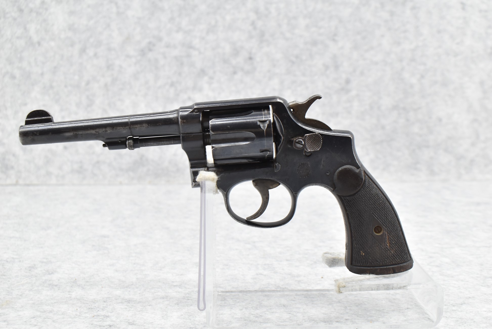 752R. Smith & Wesson – Mod. 10 – 38 Spl. Cal. Double Action Revolver – w/5” Barrel w/Round Blade Front & Notch Rear Sights – Blued Finish – w/Original Checkered Walnut Grips