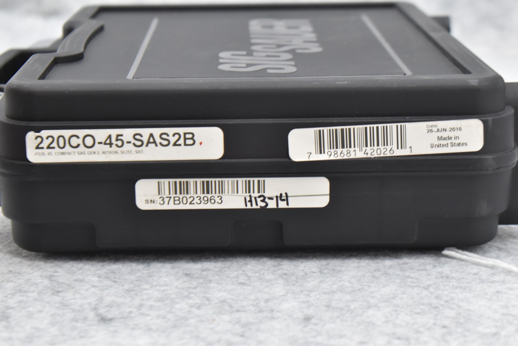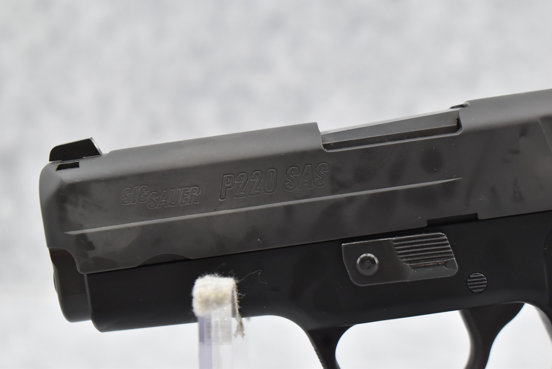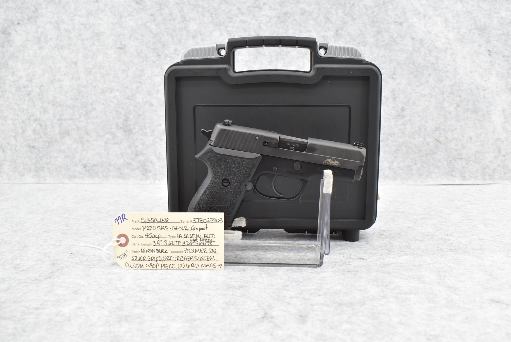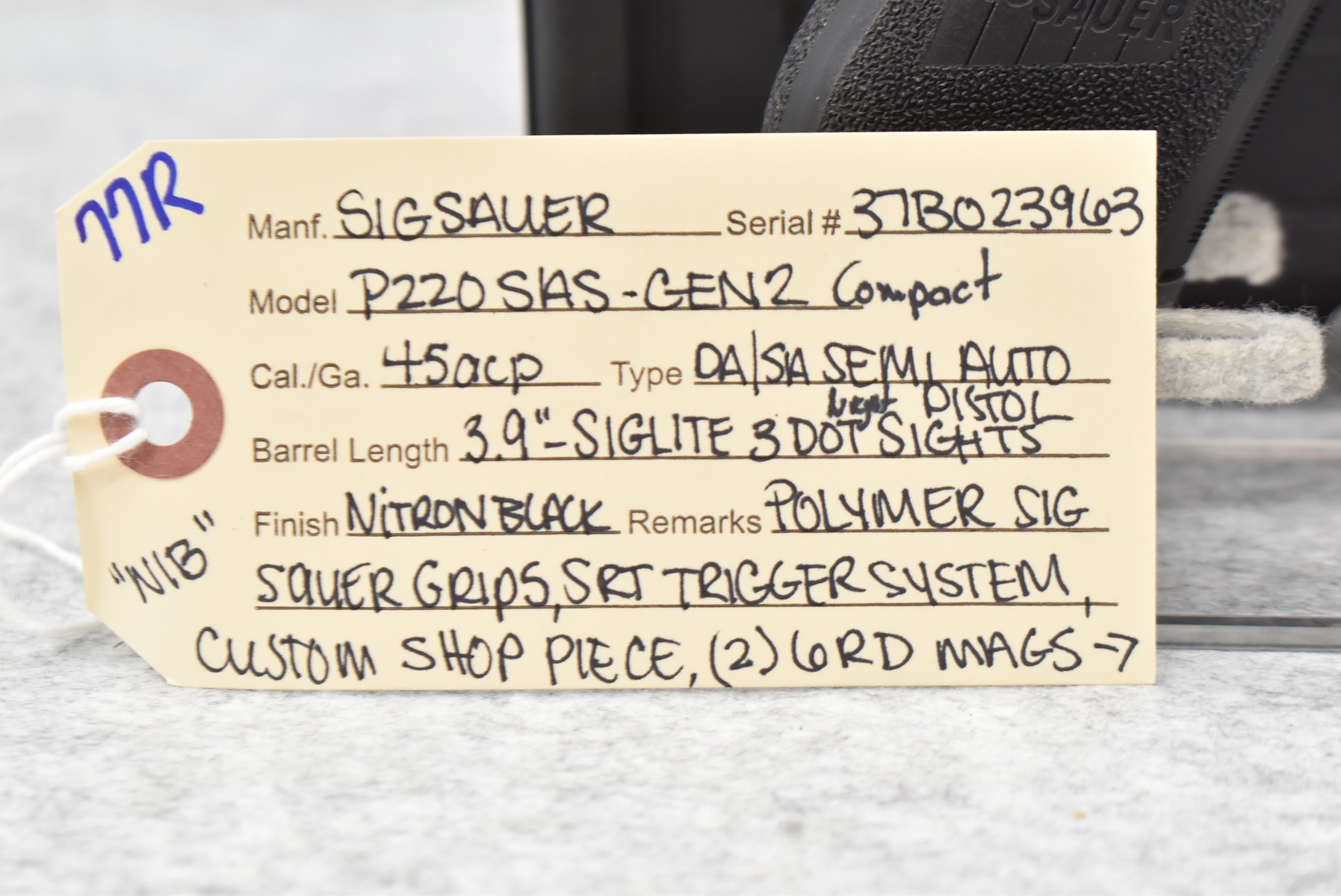 77R. Sig Sauer – Mod. P220 SAS-Gen 2 Compact (Sig Sauer Custom Shop) – 45 ACP Cal. Semi-Auto Pistol – w/3.9” Barrel w/SigLite 3-Dot Night Sights – Nitron Black Finish – w/Polymer Sig Sauer Grips – w/SRT Trigger System – w/Two 6Rd Mags – w/Hammer Decocker – New w/Factory Box, Manual & Lock