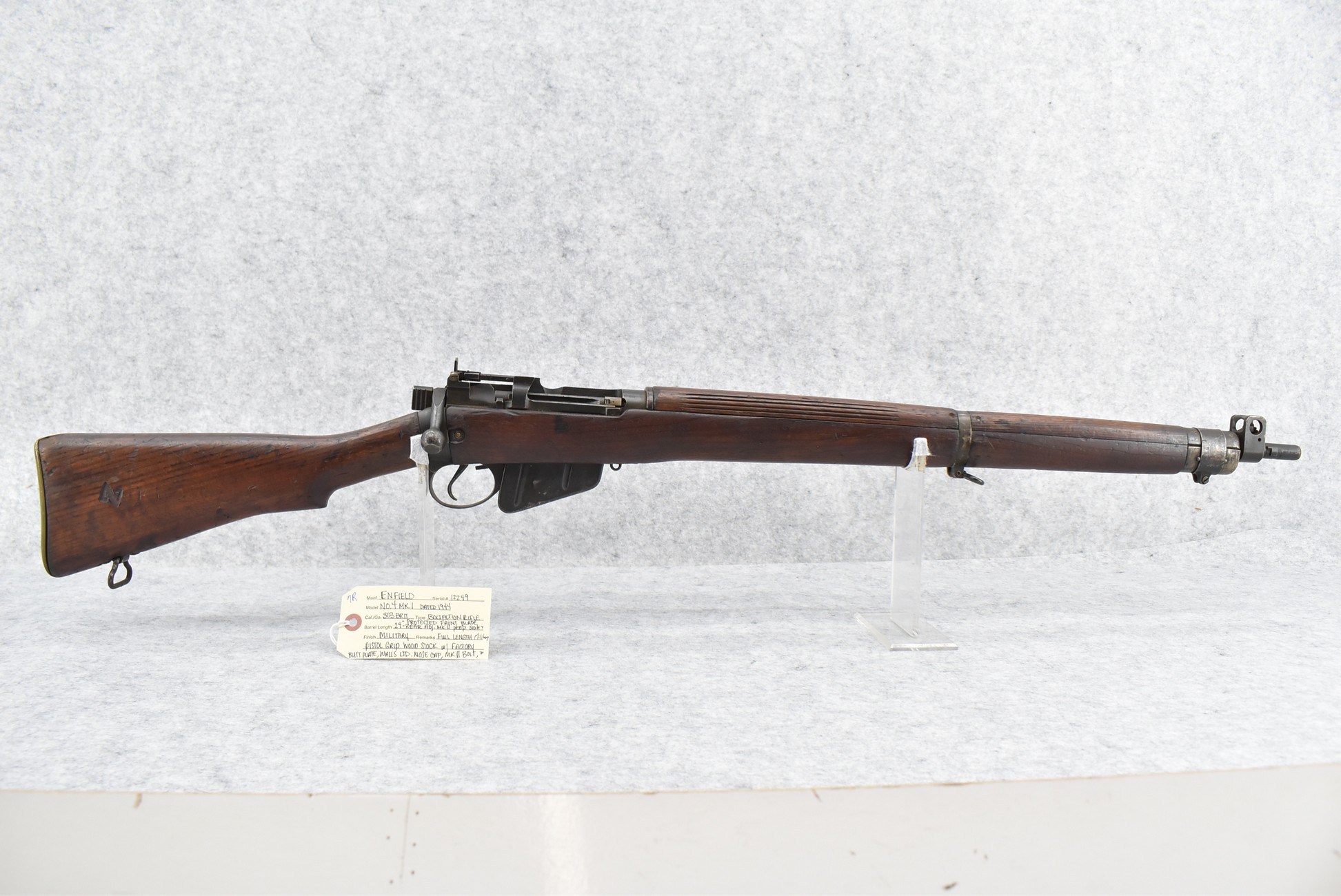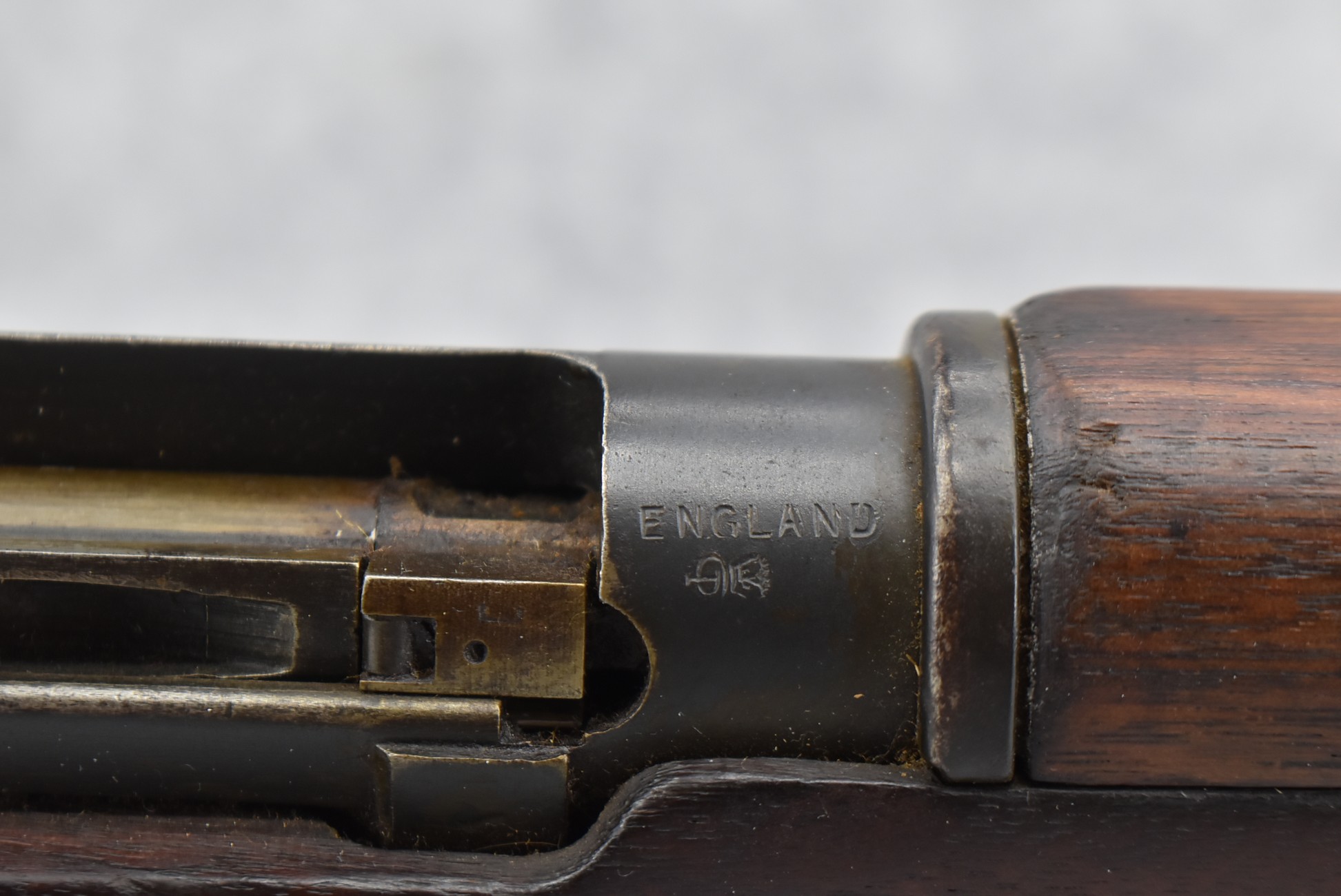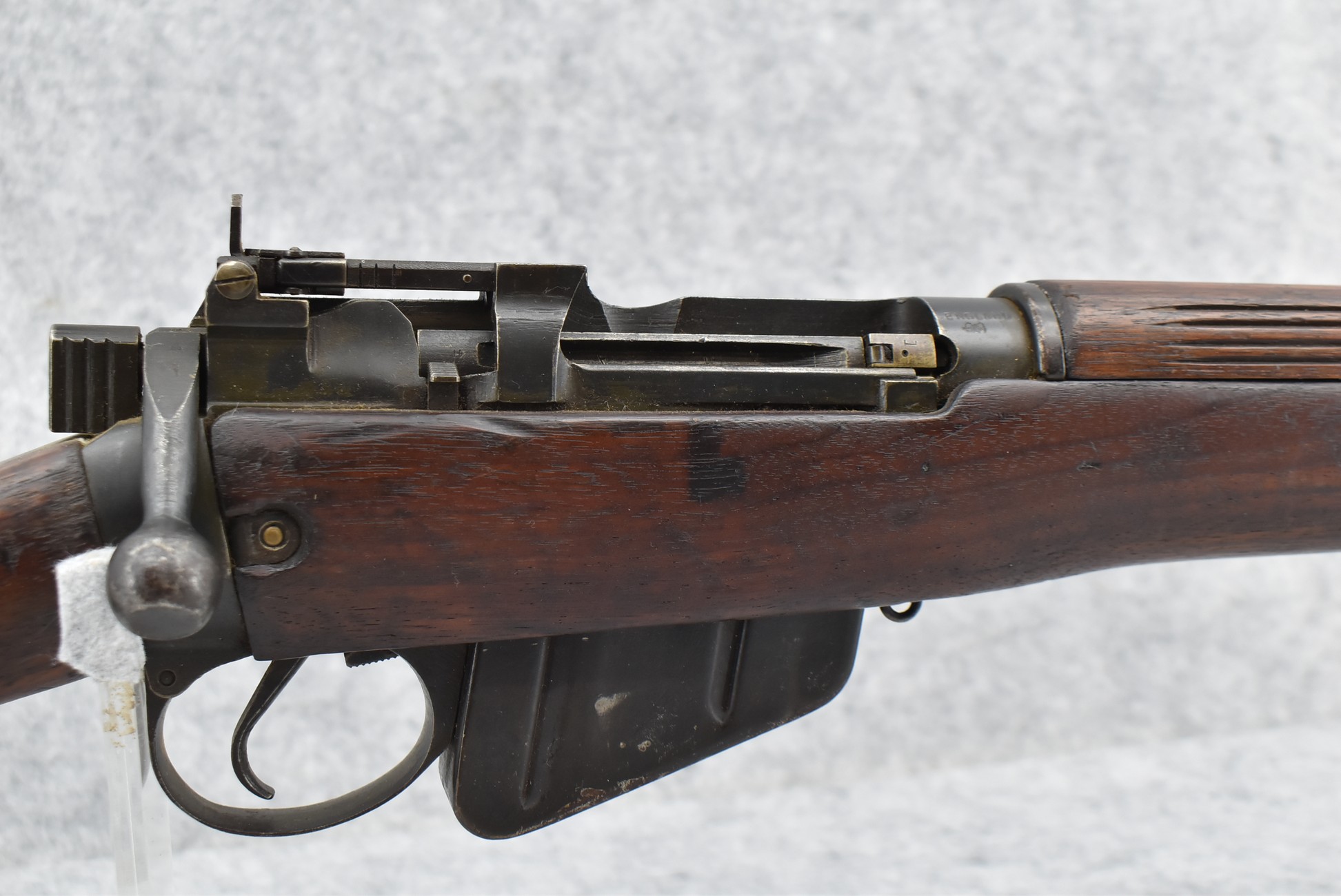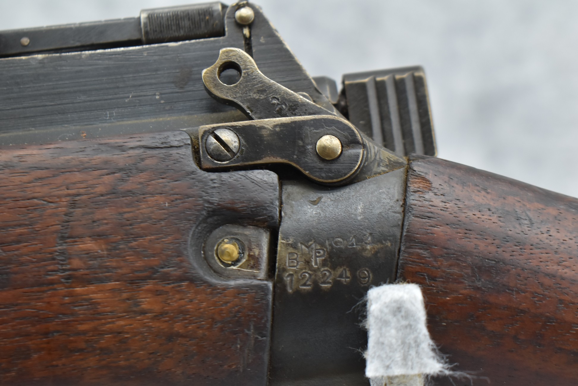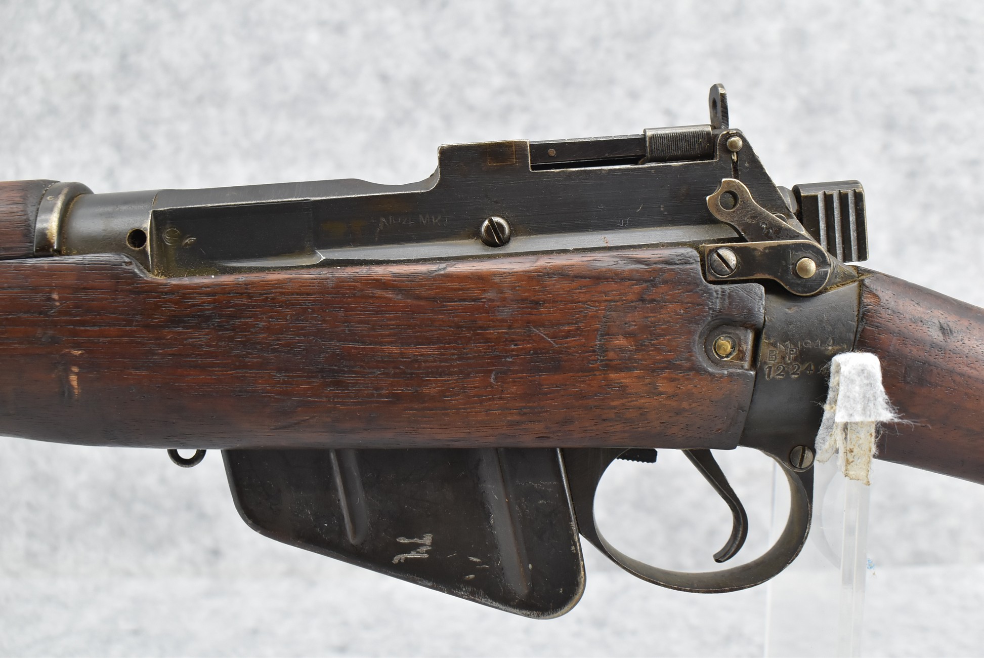 7R. Enfield – Mod. No. 4 MK I – 303 Brit. Cal. Bolt Action Rifle – w/24” Barrel w/Protected Front Blade & Rear Adj. MK II Peep Sights – Military Finish – w/Pistol Grip Full Wood Military Stock w/Factory Butt Plate & Walls LTD Nose Cap – w/MK II Bolt – w/Detachable Magazine – Dated 1944
