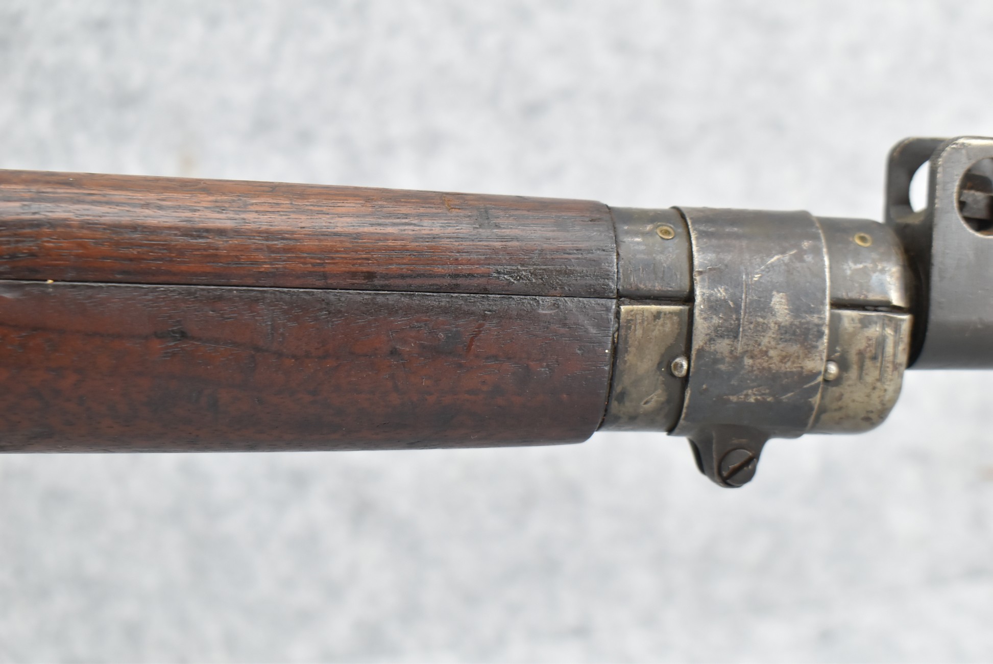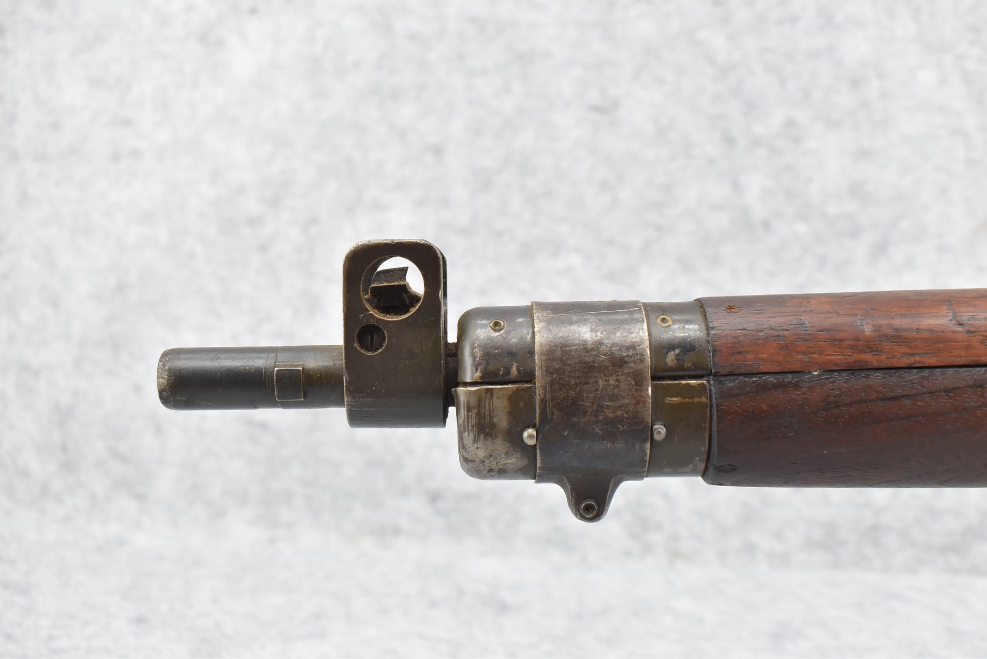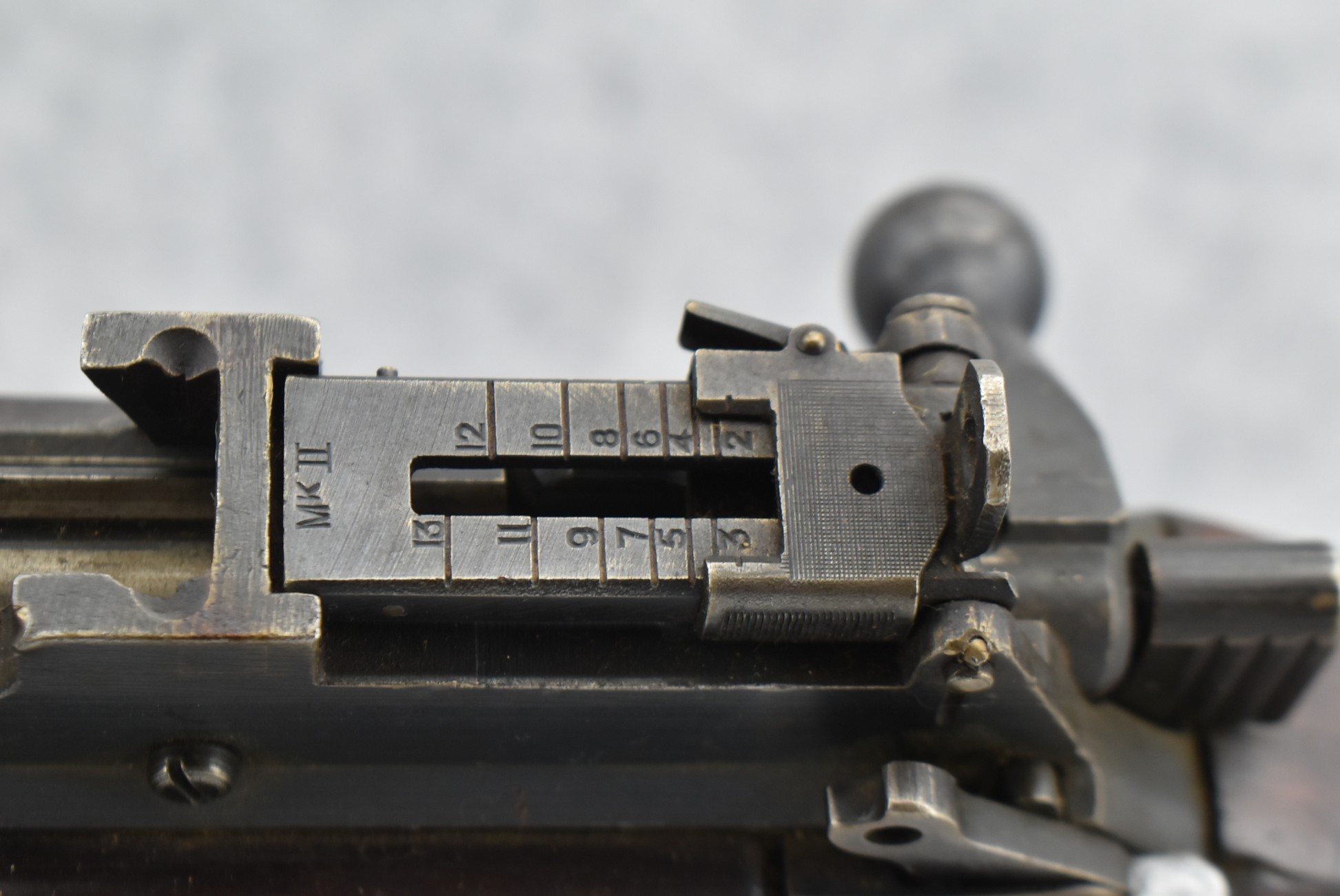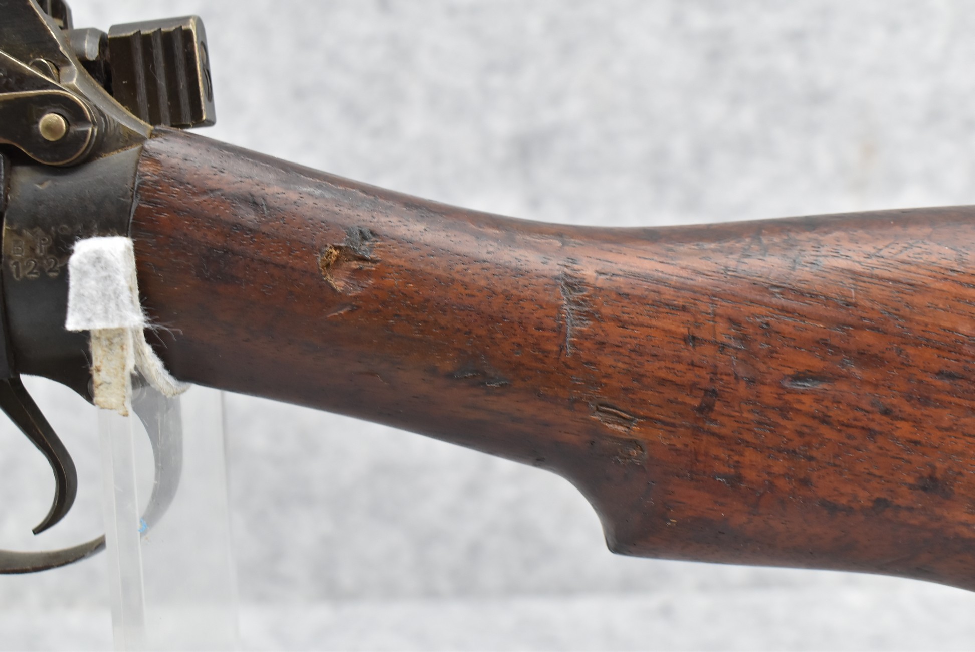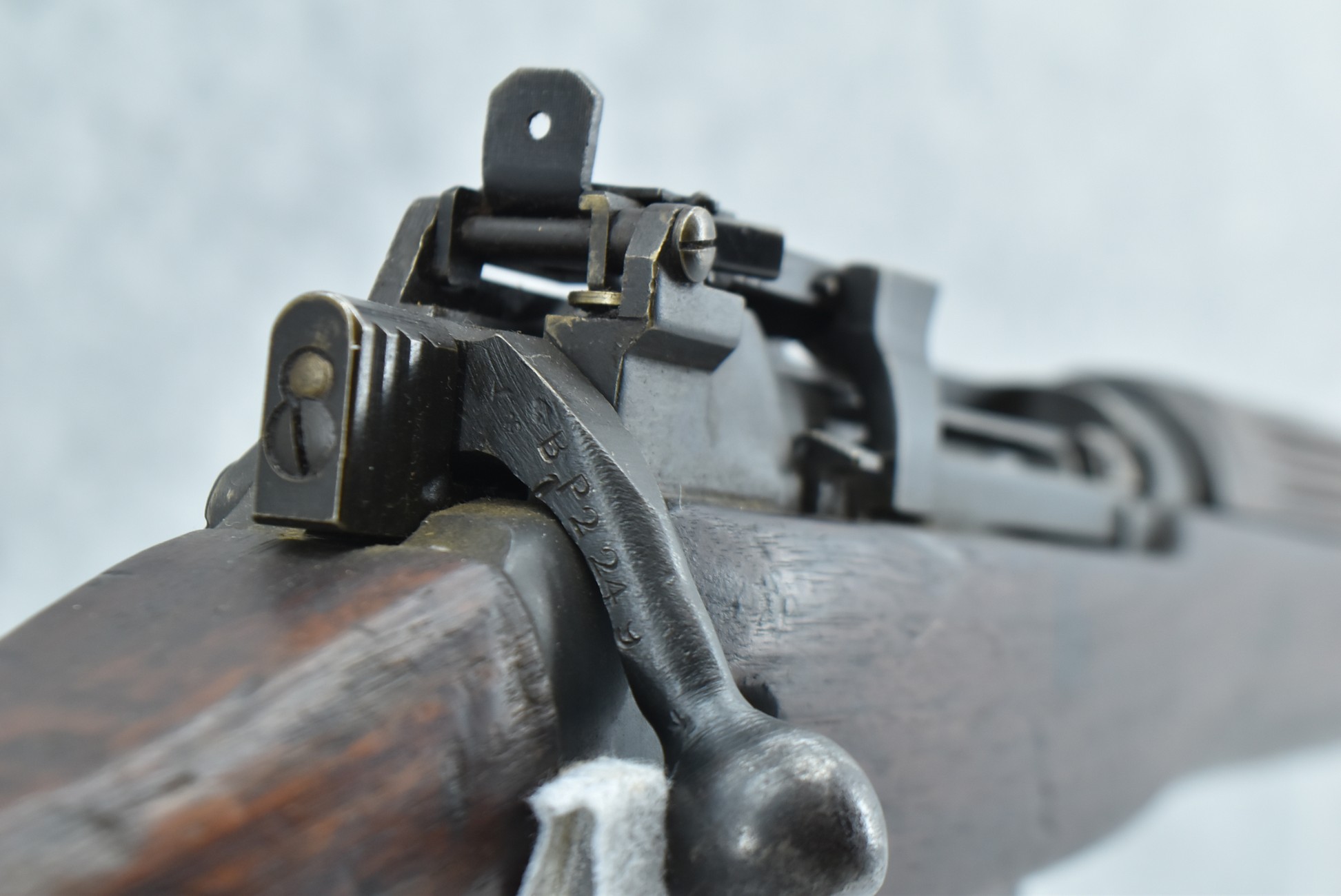 7R. Enfield – Mod. No. 4 MK I – 303 Brit. Cal. Bolt Action Rifle – w/24” Barrel w/Protected Front Blade & Rear Adj. MK II Peep Sights – Military Finish – w/Pistol Grip Full Wood Military Stock w/Factory Butt Plate & Walls LTD Nose Cap – w/MK II Bolt – w/Detachable Magazine – Dated 1944