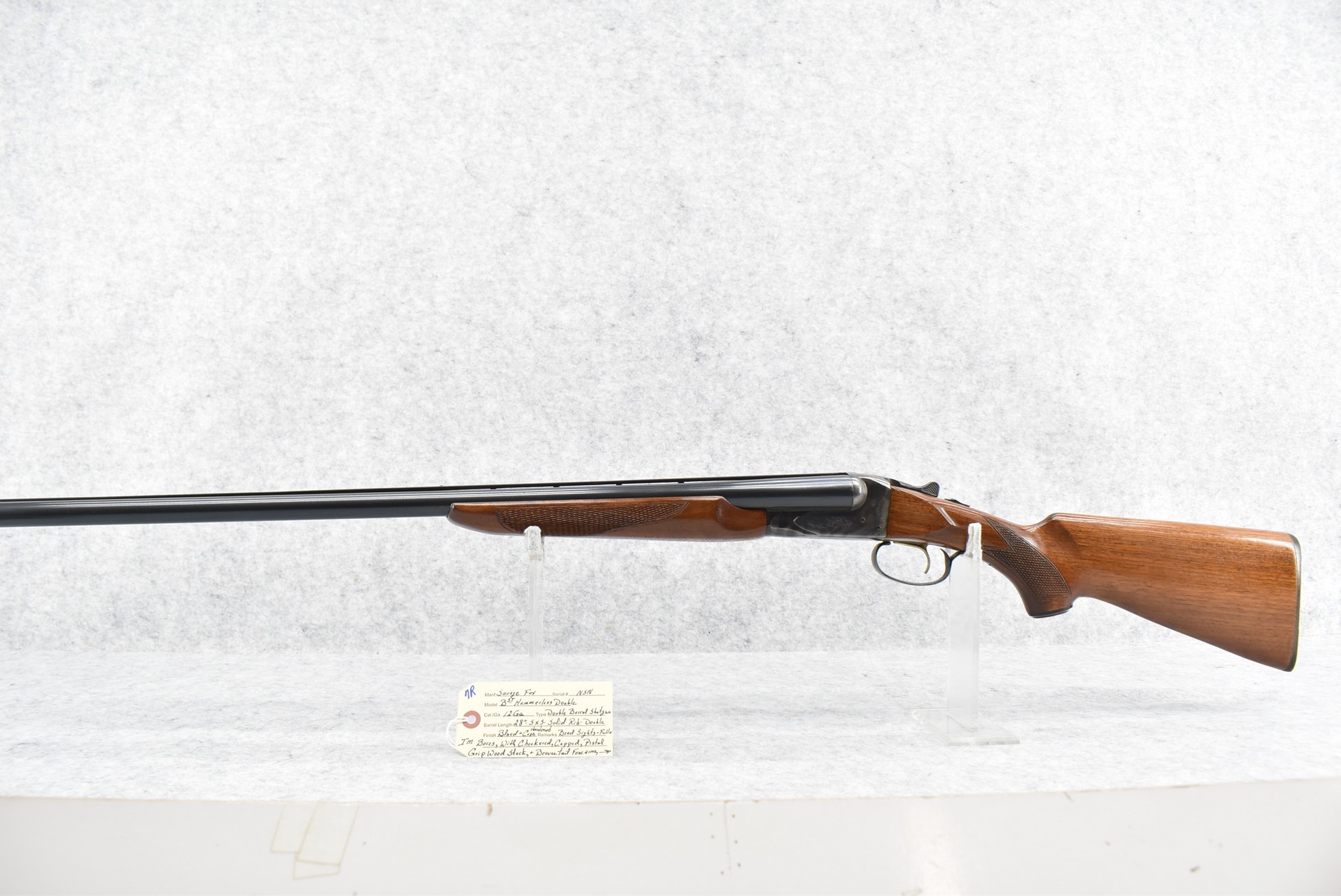 7R. Savage-Fox – Mod. BST – 12ga. Double Barrel Shotgun – w/28” Solid Rib Barrels w/Double Bead Sights – Blued Finish w/Case Hardened Receiver – w/Checkered Capped Pistol Grip Wood Stock and Beavertail Forearm w/Factory Butt Plate – w/Single Trigger – Manufactured Between 1955-1966