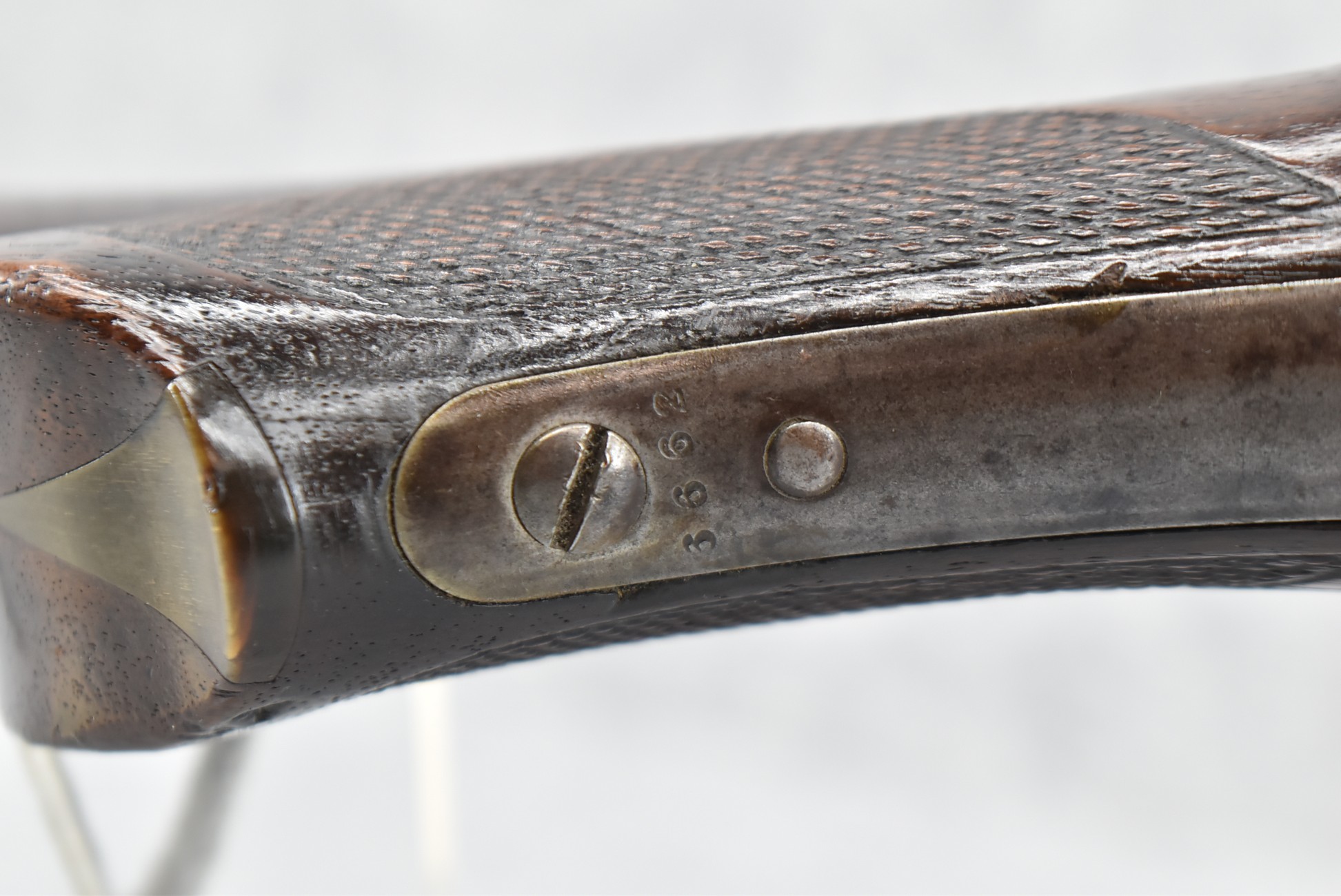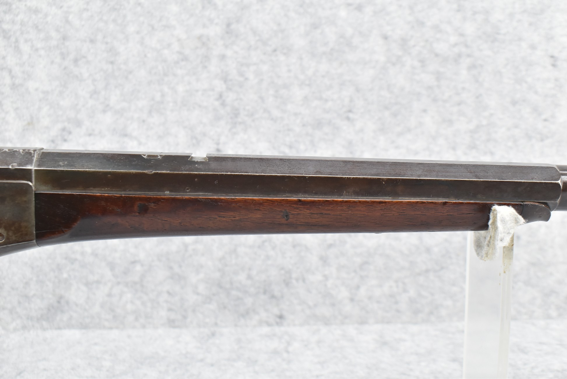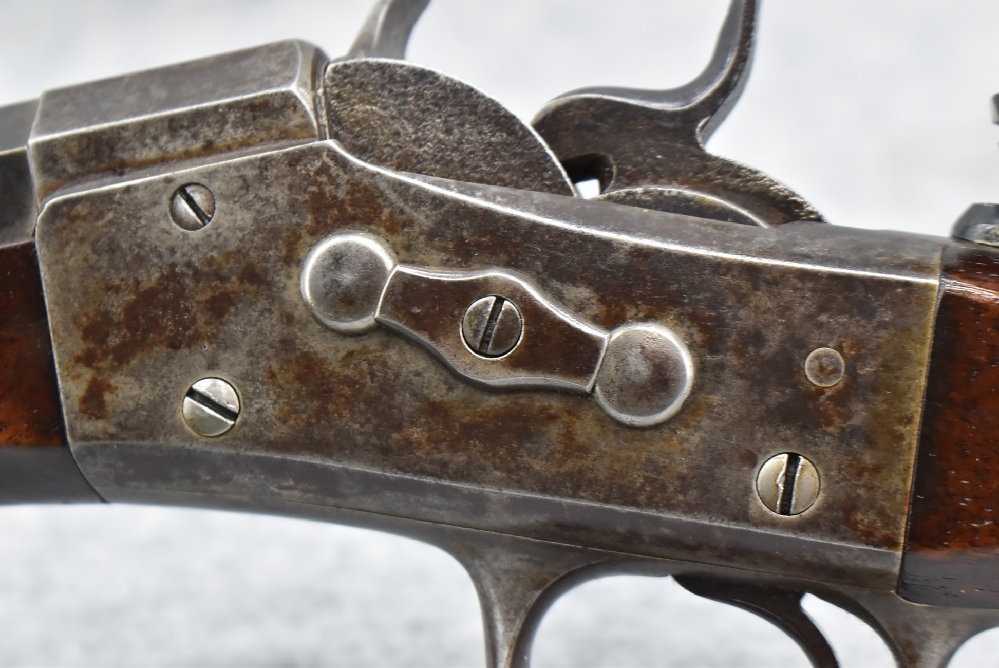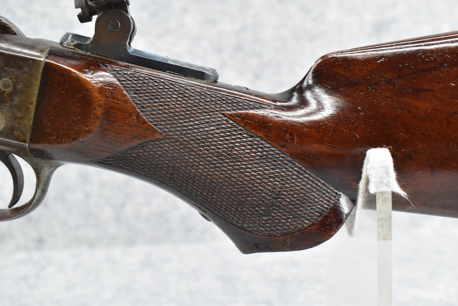 80. Remington – Mod. No. 1 Mid-Rage Target Rolling Block Rifle – 44S-100 Cal. Single Shot Breech Load Rifle – w/34” Octagon to Round Heavy Barrel w/Target Globe Front Sig w/Level & Wind Adj. & 2-Rear Dovetails (1 w/Blank, 1 Open) – Gray Finish – w/Checkered Pistol Grip Wood Butt Stock w/Factory Metal Shotgun Butt & Non-Checkered Wood Forearm w/Forend Steel Tip – w/Fine Adj. Long Rage Vernier Peep Sight – Mfg. Circa 1875-1890