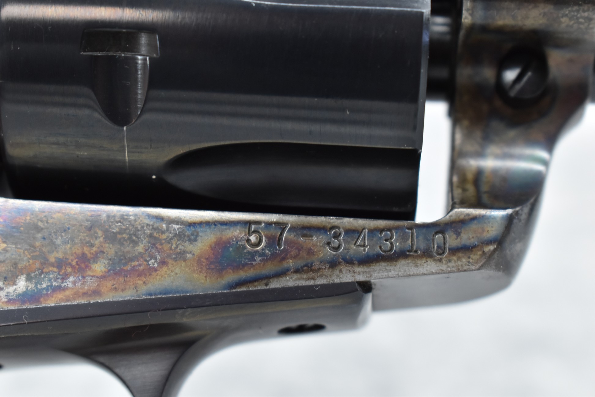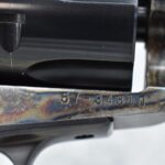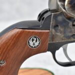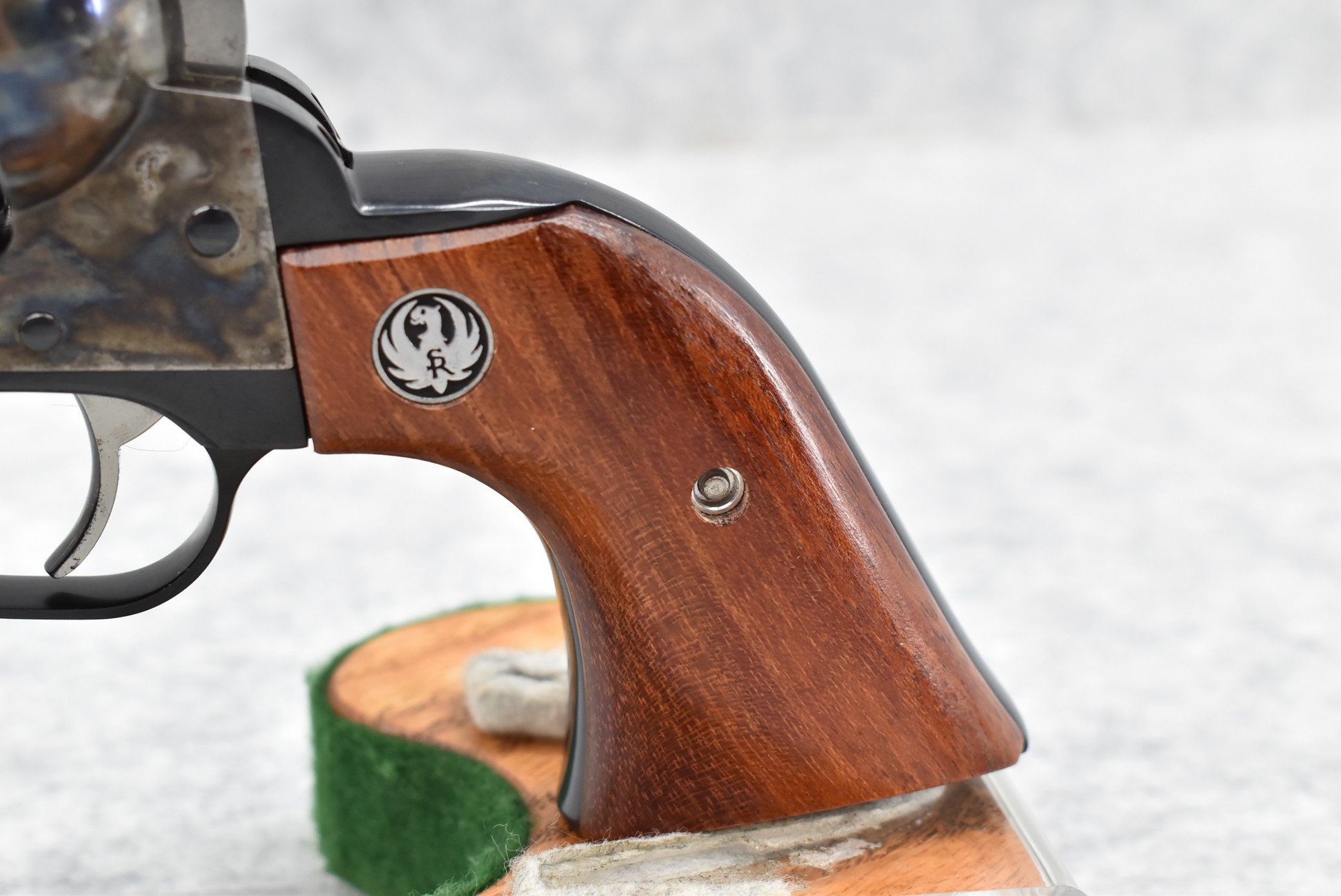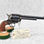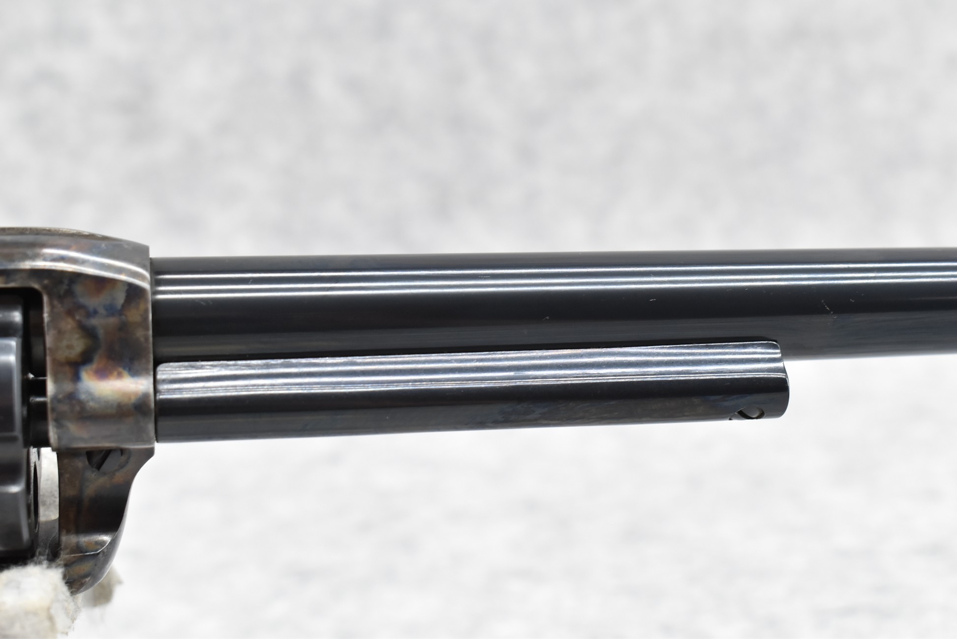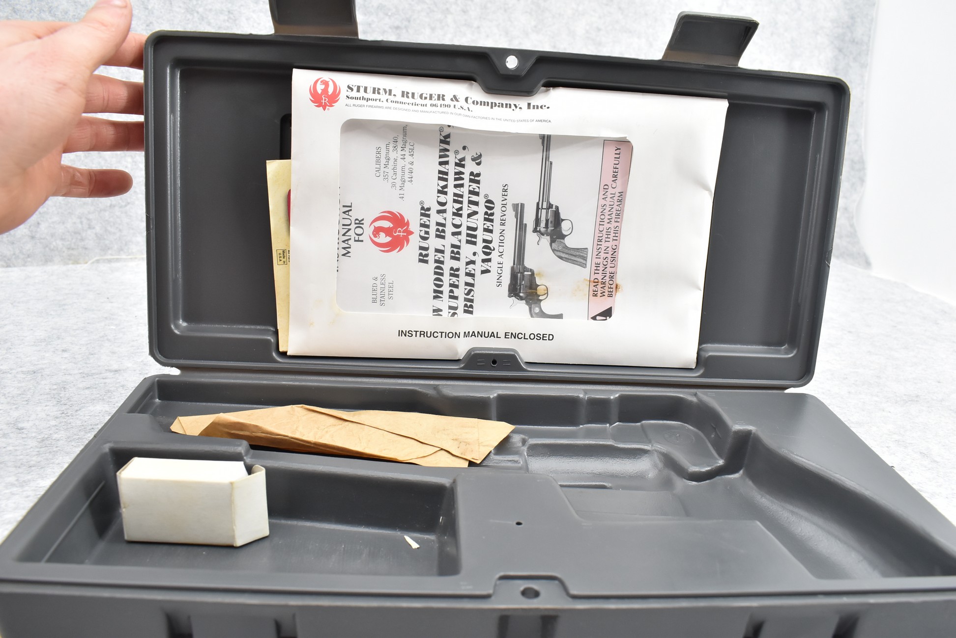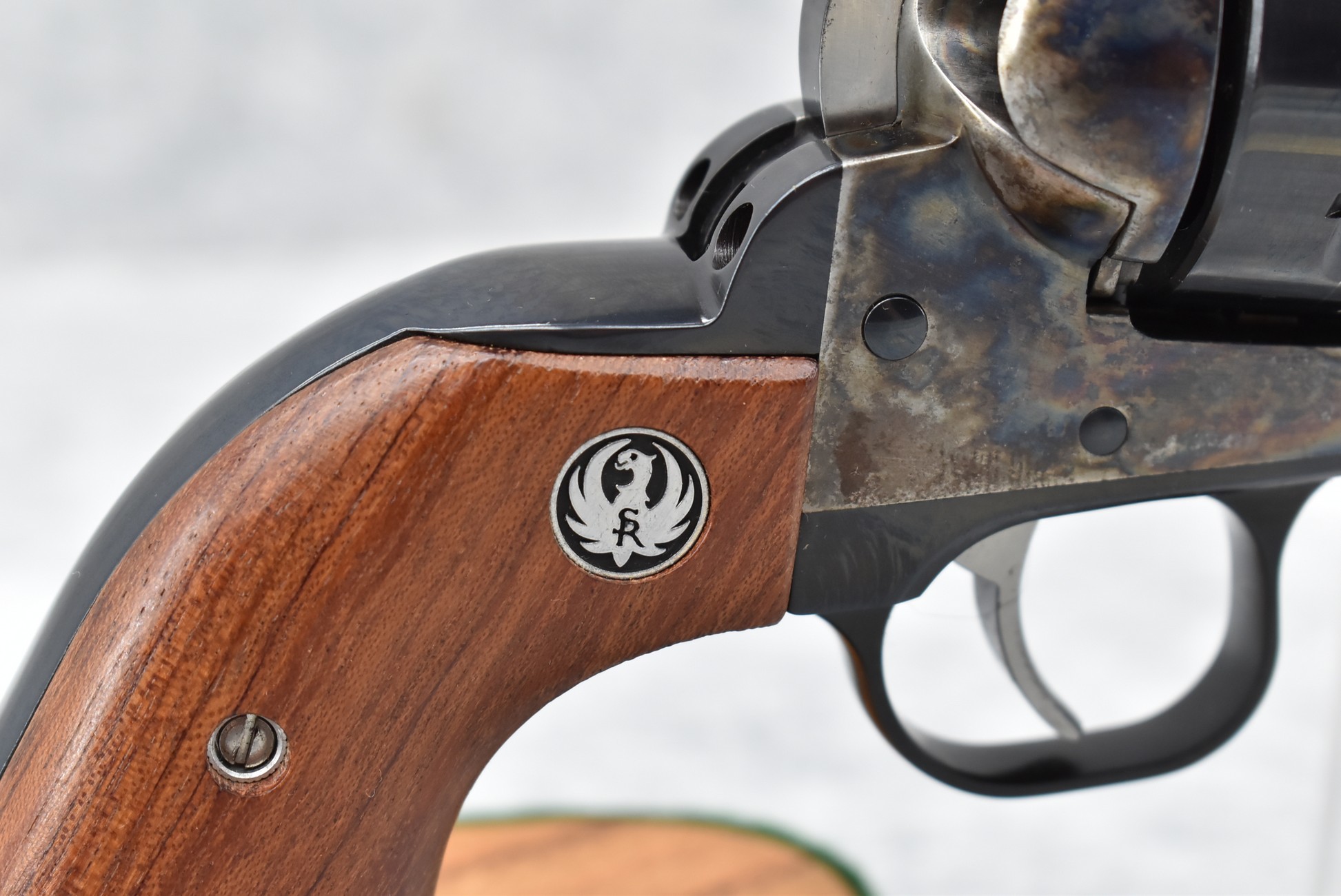 82R. Ruger – Mod. Vaquero – 44-40 Win. Cal. Single Action Revolver – w/7 ½” Barrel w/Blade Front & Notch Rear Sights – Blued Finish w/Case Hardened Frame – w/Factory Smooth Wood Grips w/Ruger Medallion – As New w/Factory Hard Case, Manual & Accessories