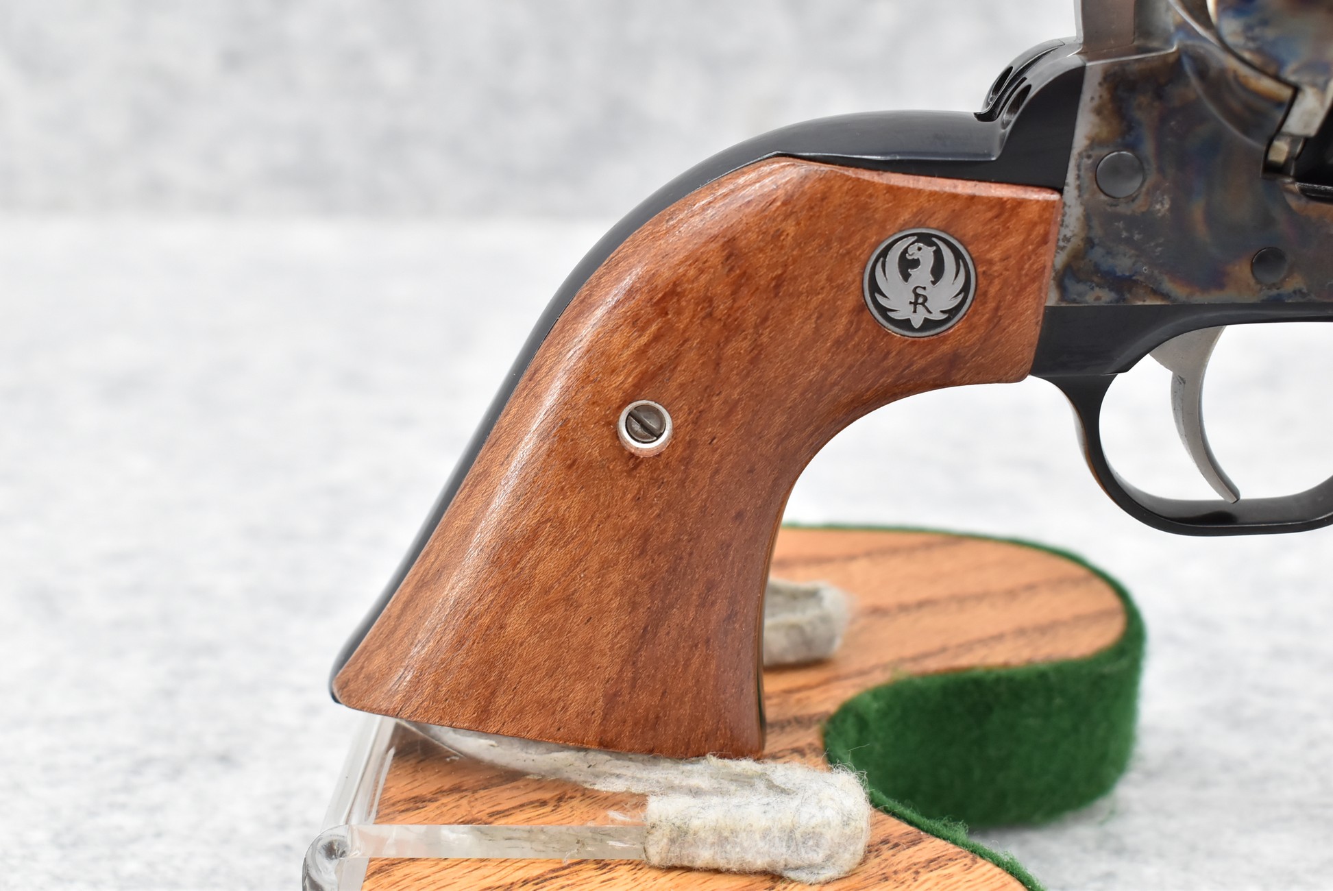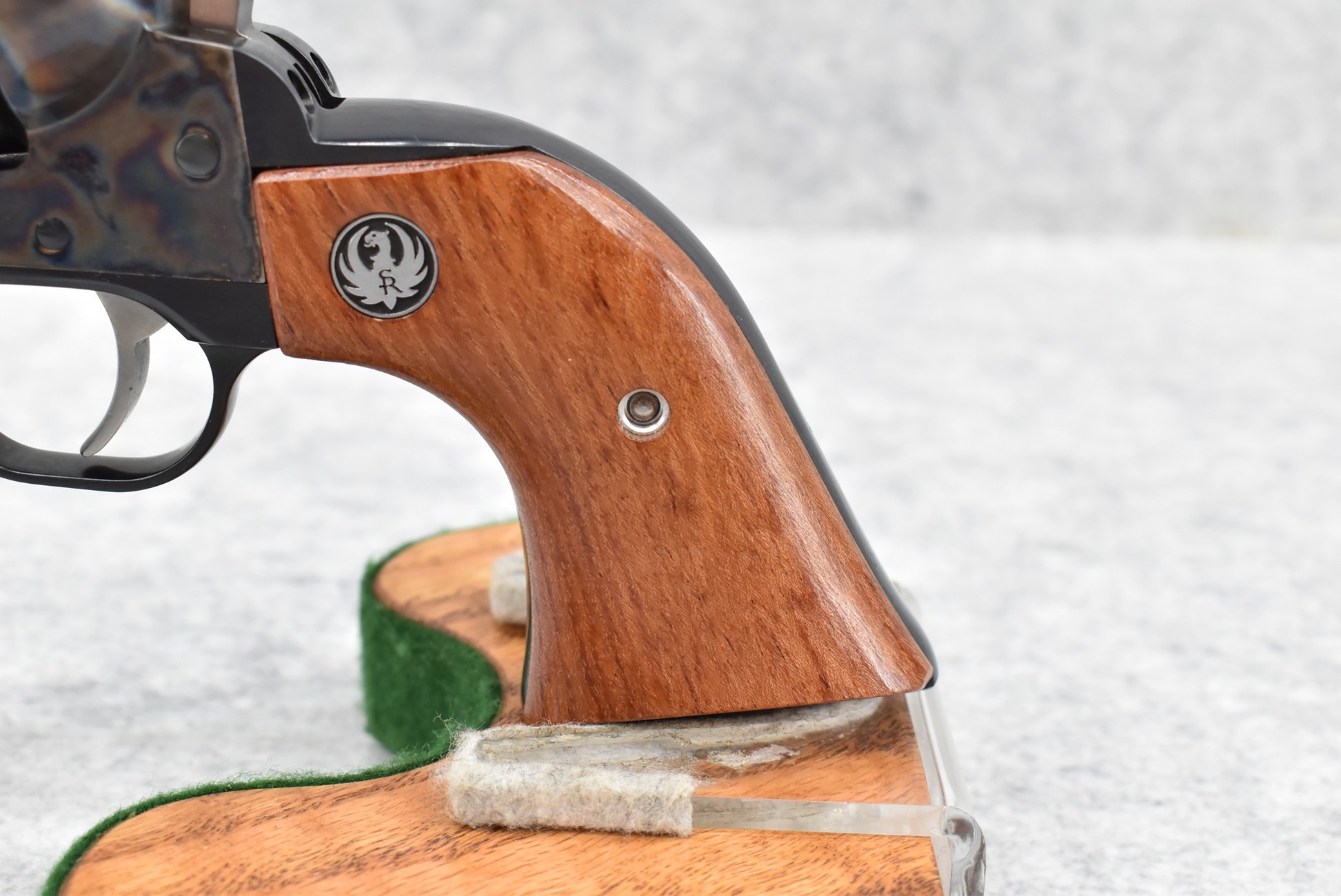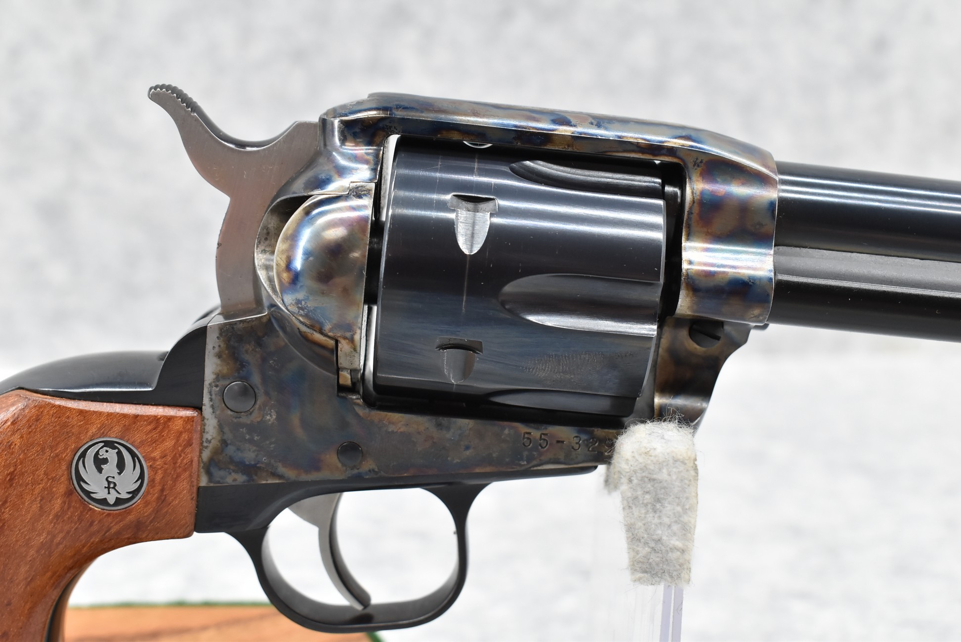83R. Ruger – Mod. Vaquero – 45 Colt Cal. Single Action Revolver – w/7 ½” Barrel w/Blade Front & Notch Rear Sights – Blued Finish w/Case Hardened Frame – w/Factory Smooth Wood Grips w/Ruger Medallion – w/Ruger Box