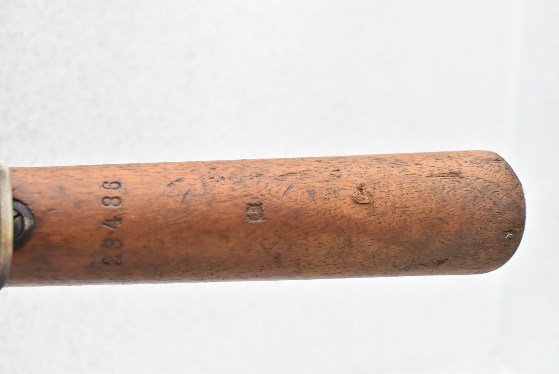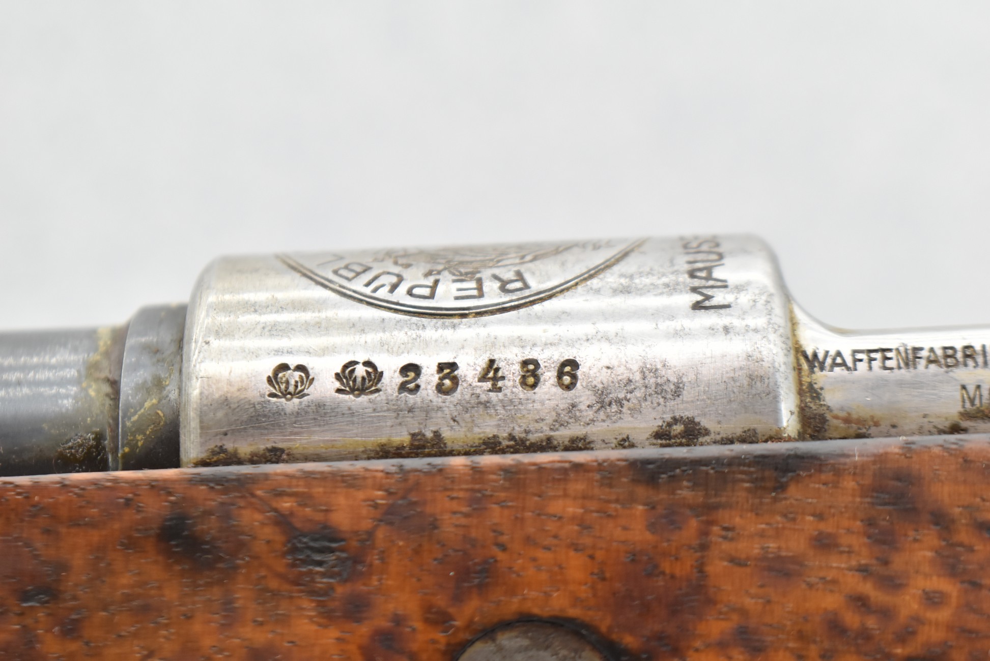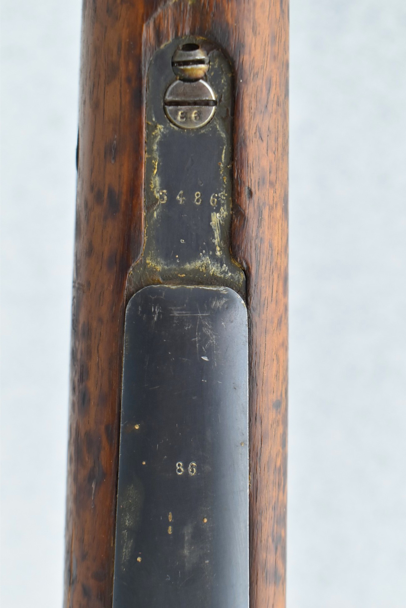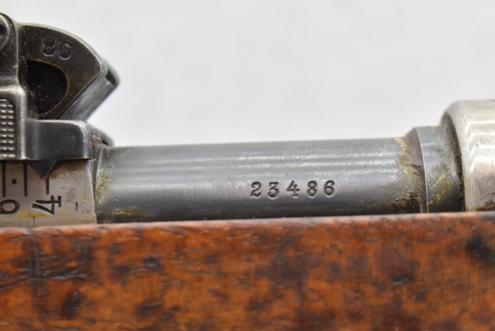 847R. Peruvian Mauser – Mod. Mauser Original 1909 – 7.65×53 Argentine Cal. Bolt Action Rifle – w/29.5” Barrel w/Front Blade & Rear Adj. Ladder Sights – Blued Finish – w/Full Pistol Grip Wood Stock w/Metal Butt Plate – w/Excellent Crest on Receiver – Numbers Matching Except Bolt