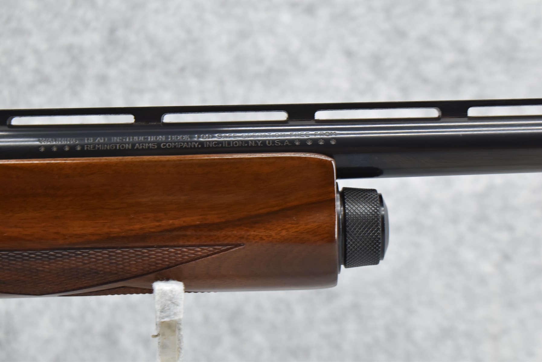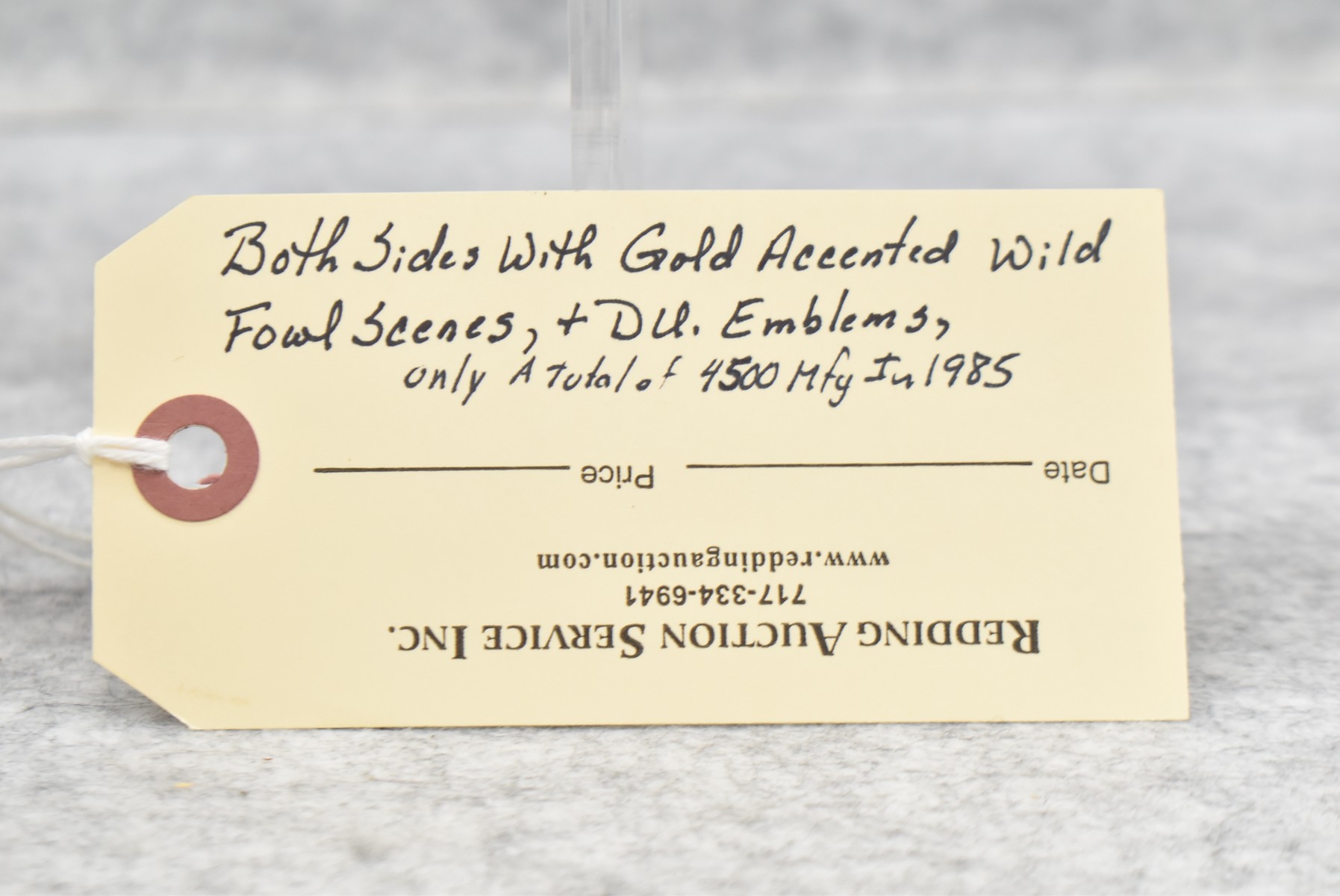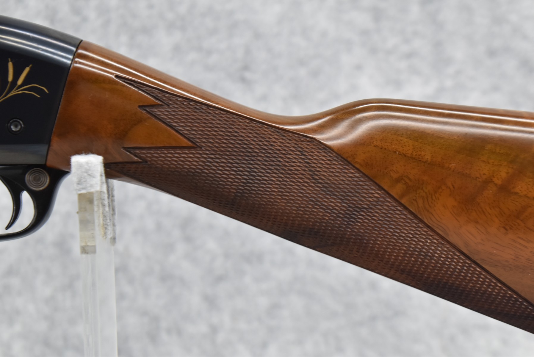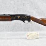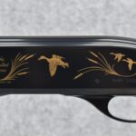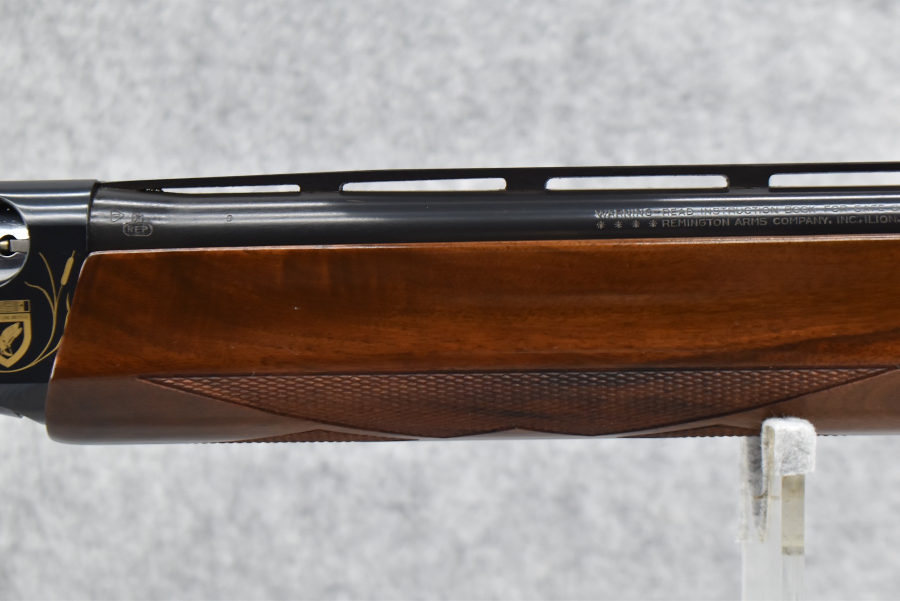 85R. Remington – Mod. 1100 DU 1985 Gun of the Year – 12ga. Semi-Auto Shotgun – w/25 ½” Rem. Choke, Vent-Rib Barrel w/Double Bead Sights – Blued Finish w/Gold Accents – w/Enhanced Receiver on Both Sides w/Gold Accented Wild Fowl Scenes & DU Emblems – w/Deluxe Checkered Straight Grip Wood Stocks – w/Factory Hard Case – Only a Total of 4,500 Mfg. in 1985