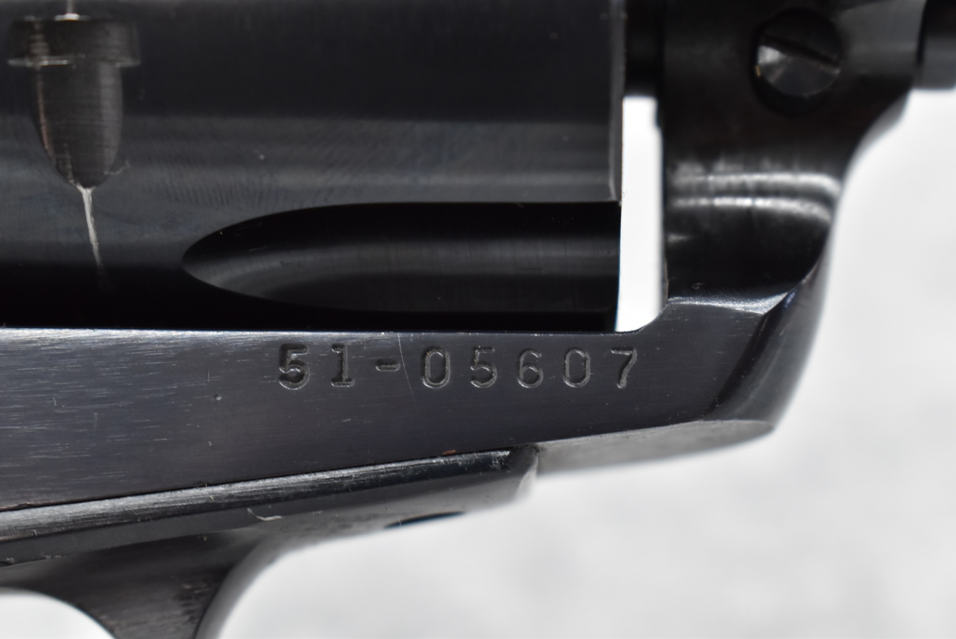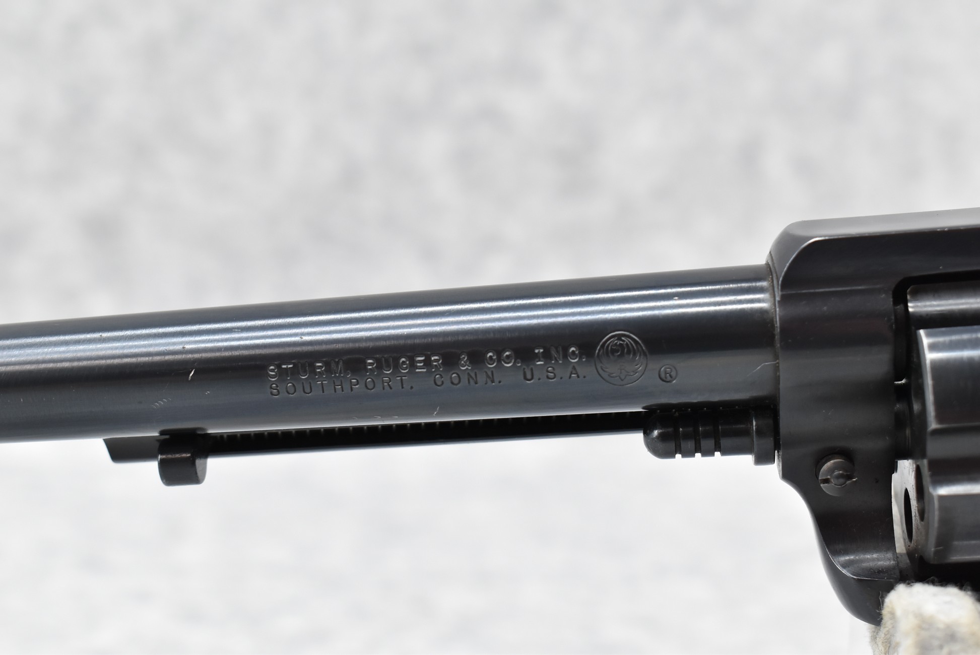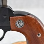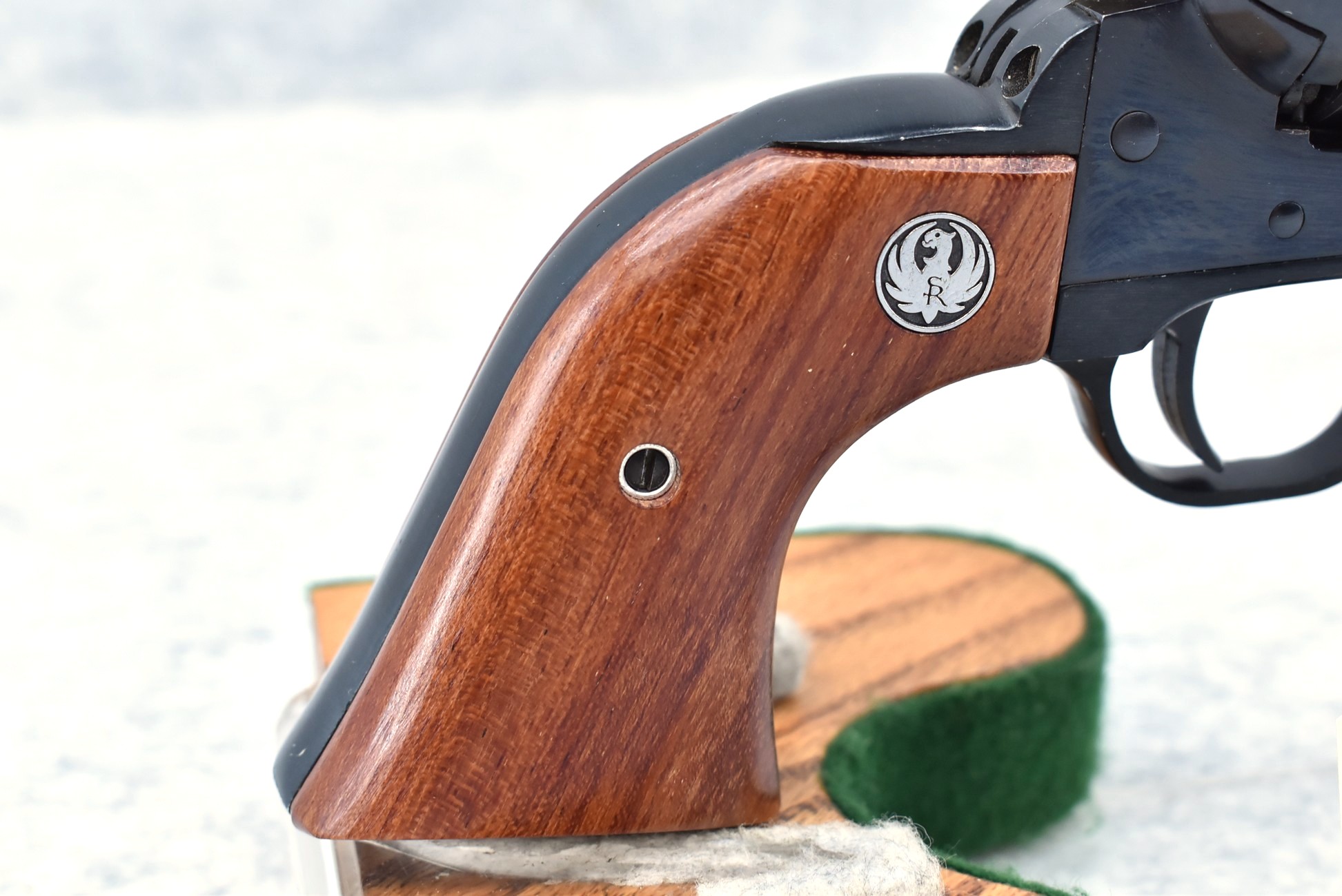 85R. Ruger – New Model Blackhawk – 30 Carbine Cal. Single Action Revolver – w/7 ½” Barrel w/Ramp Blade Front & Adj. Rear Notch Sights – Blued Finish – w/Factory Smooth Wood Grips w/Ruger Medallion – w/Box & Manual