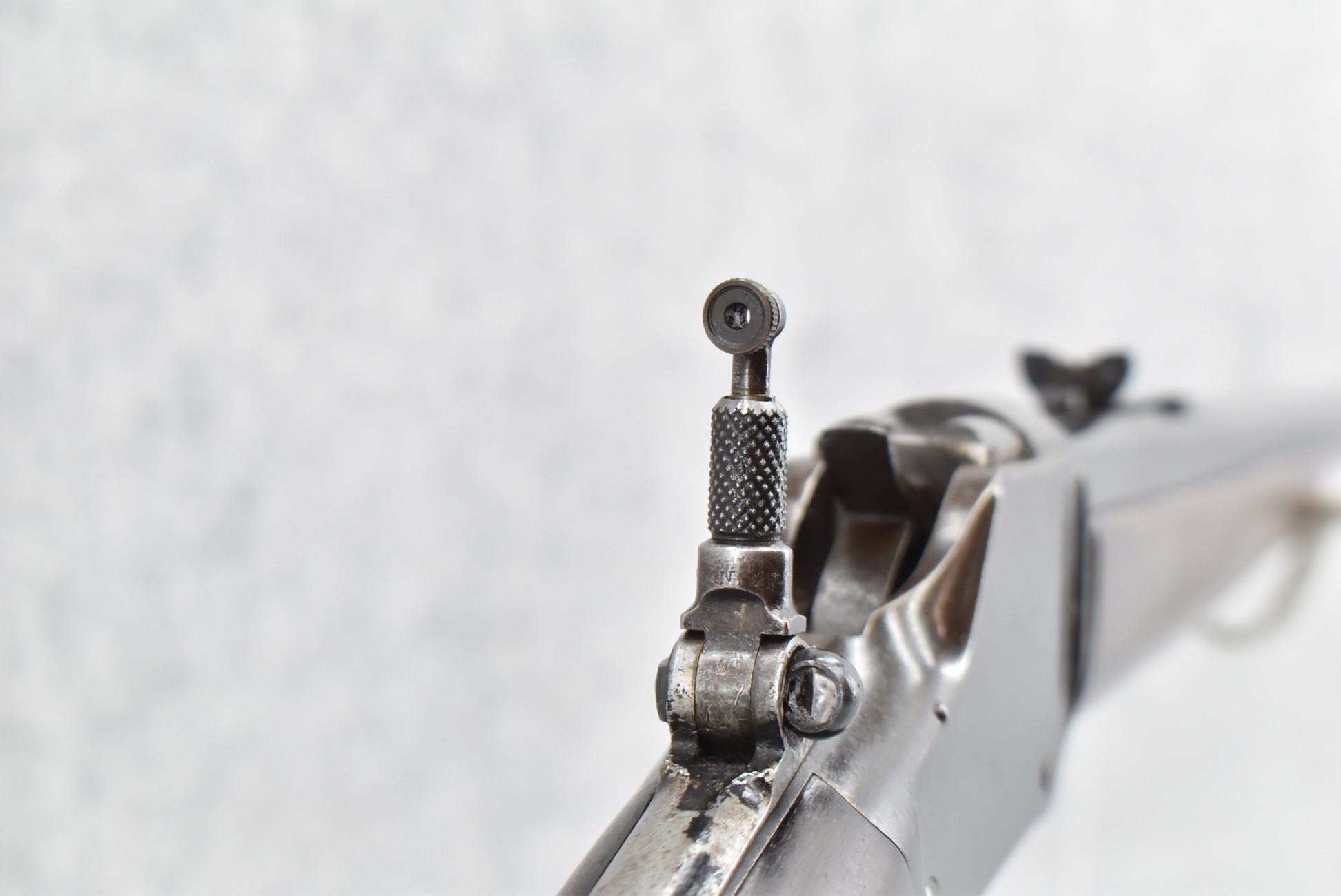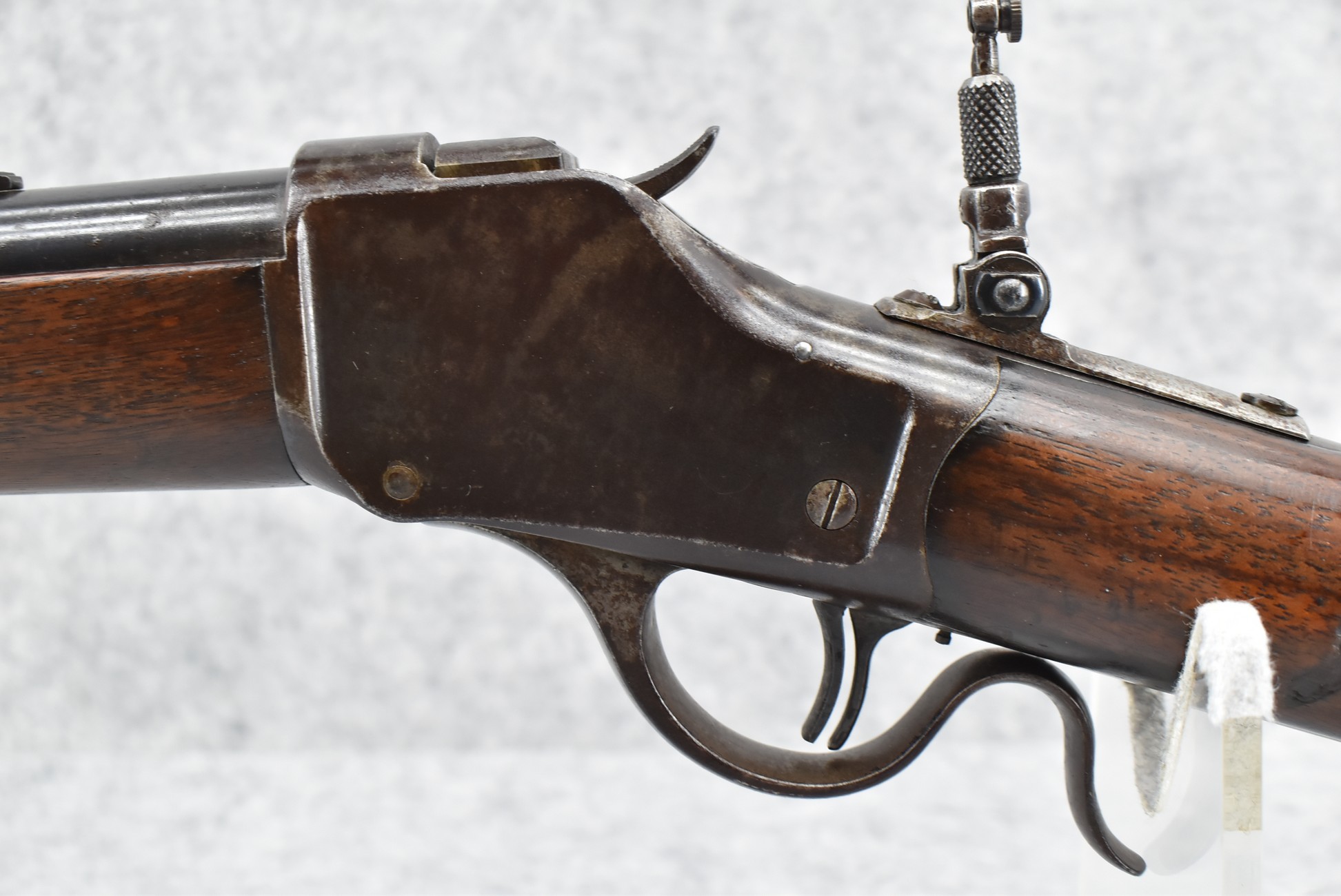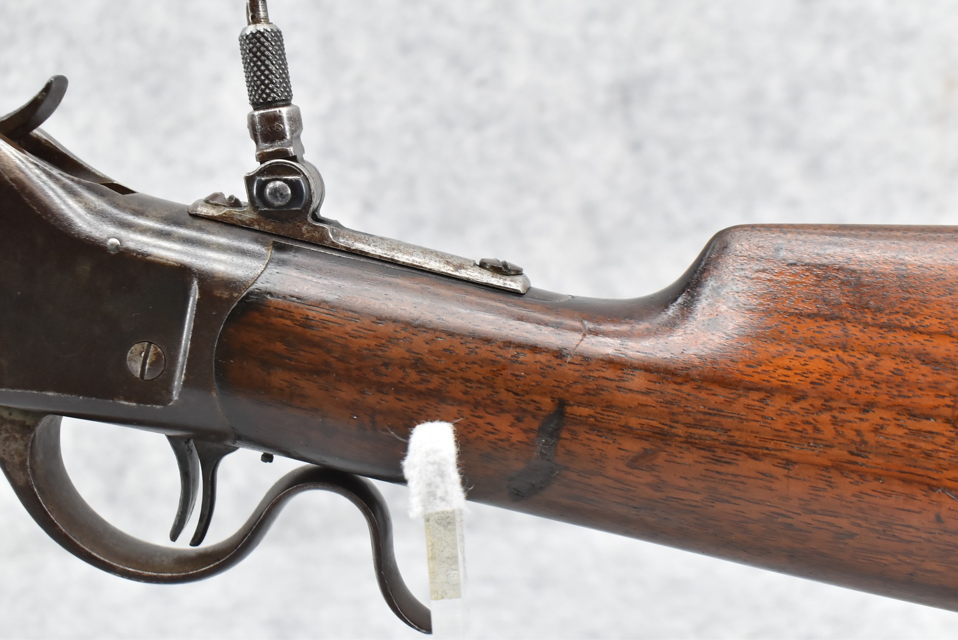 85R. Winchester – Mod. 1885 High Wall – 30 U.S. (30-40 Krag) Cal. Single Shot Breech Load Rifle – w/30” Round Barrel w/#3 Barrel Weight w/Target Globe Front & Semi-Buckhorn Rear Sights – Blued/Brown Finish – w/Straight Grip Wood Stocks w/Crescent Metal Butt Plate – w/Adj. Rear Tang Peep Sight – w/Factory Special Order Double Set Triggers – Mfg. 1910