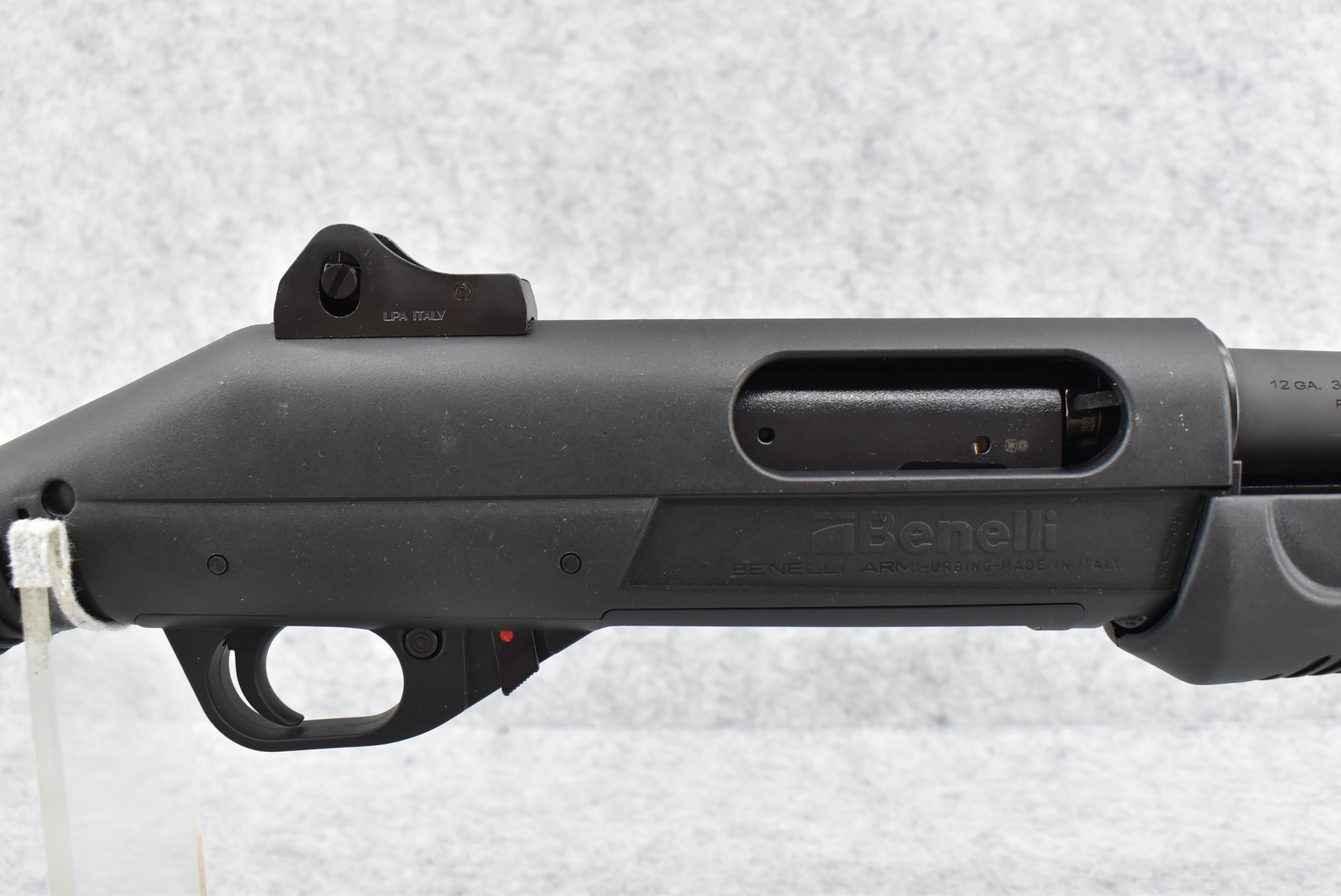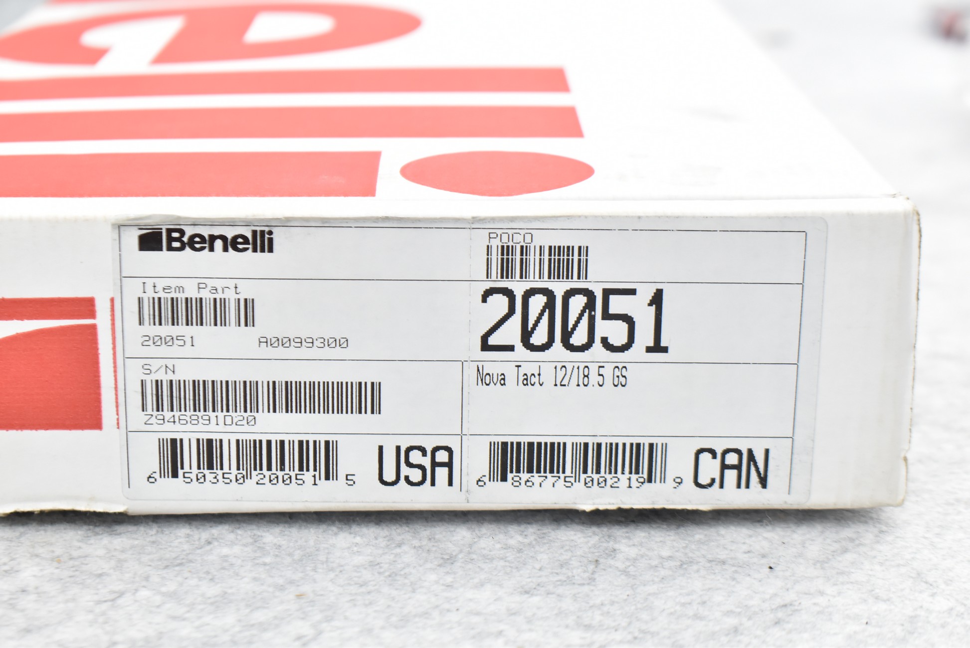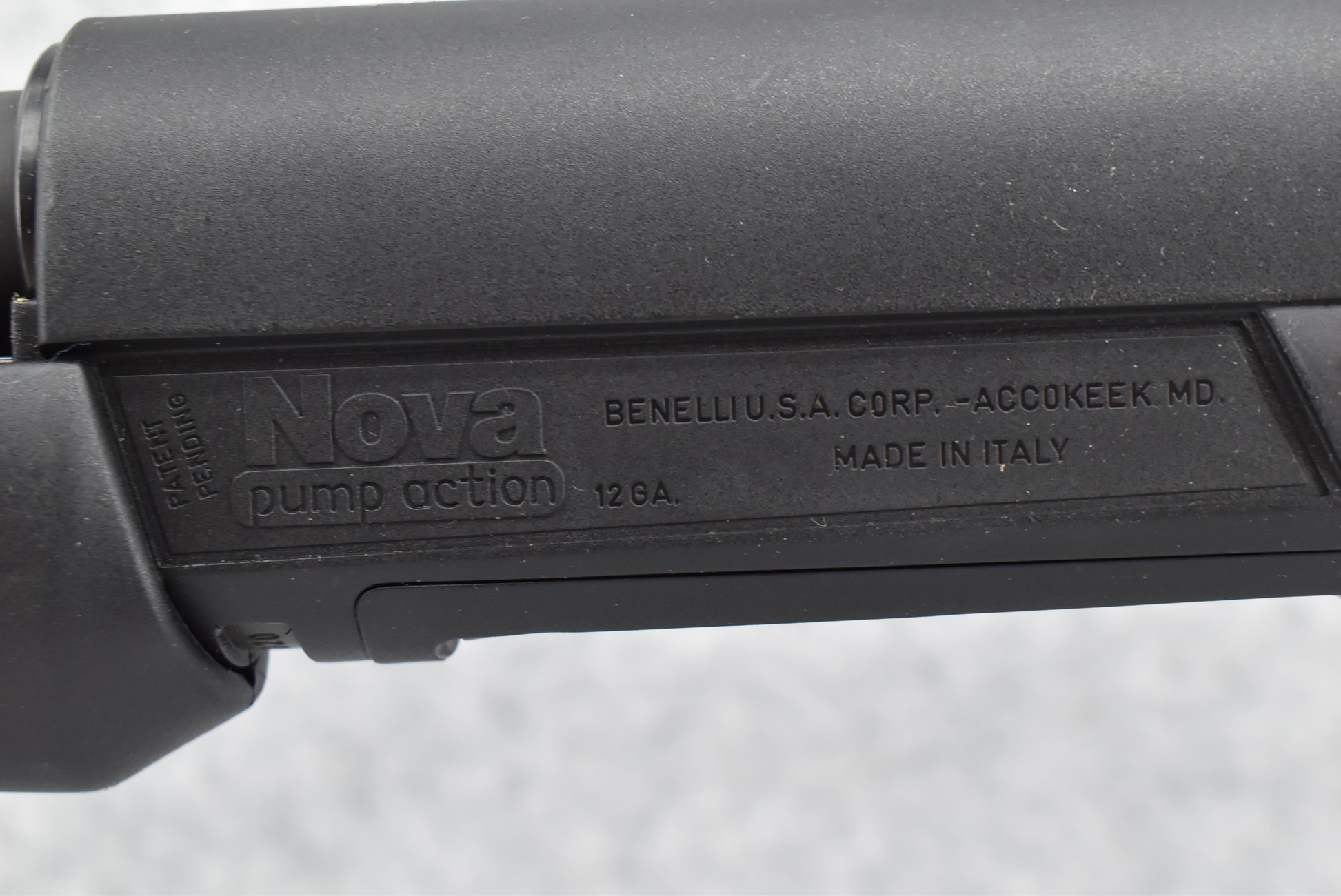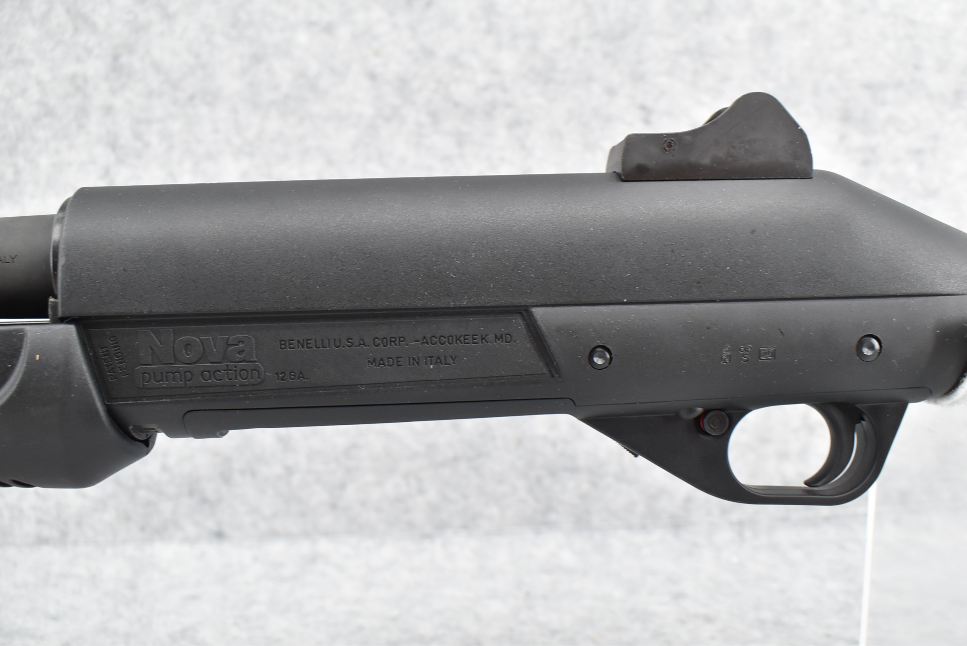 86R. Benelli – Mod. Nova Tactical – 12ga. 3 ½” Pump Action Shotgun – w/18 ½” Barrel w/Beaded Front & Adj. Rear Sights – Matte Blued Finish – w/Ribbed Capped Synthetic Pistol Grip Stocks w/Factory Recoil Pad – Unfired w/Factory Box & Manual