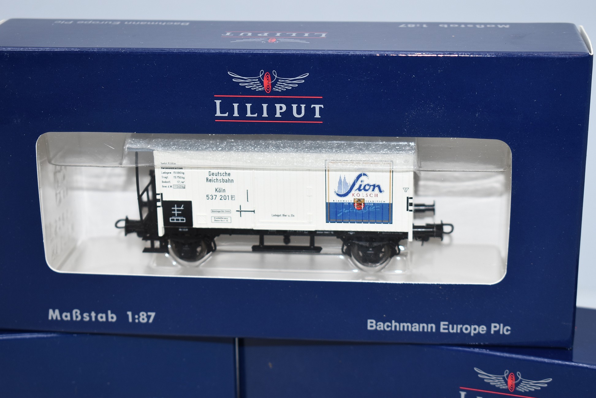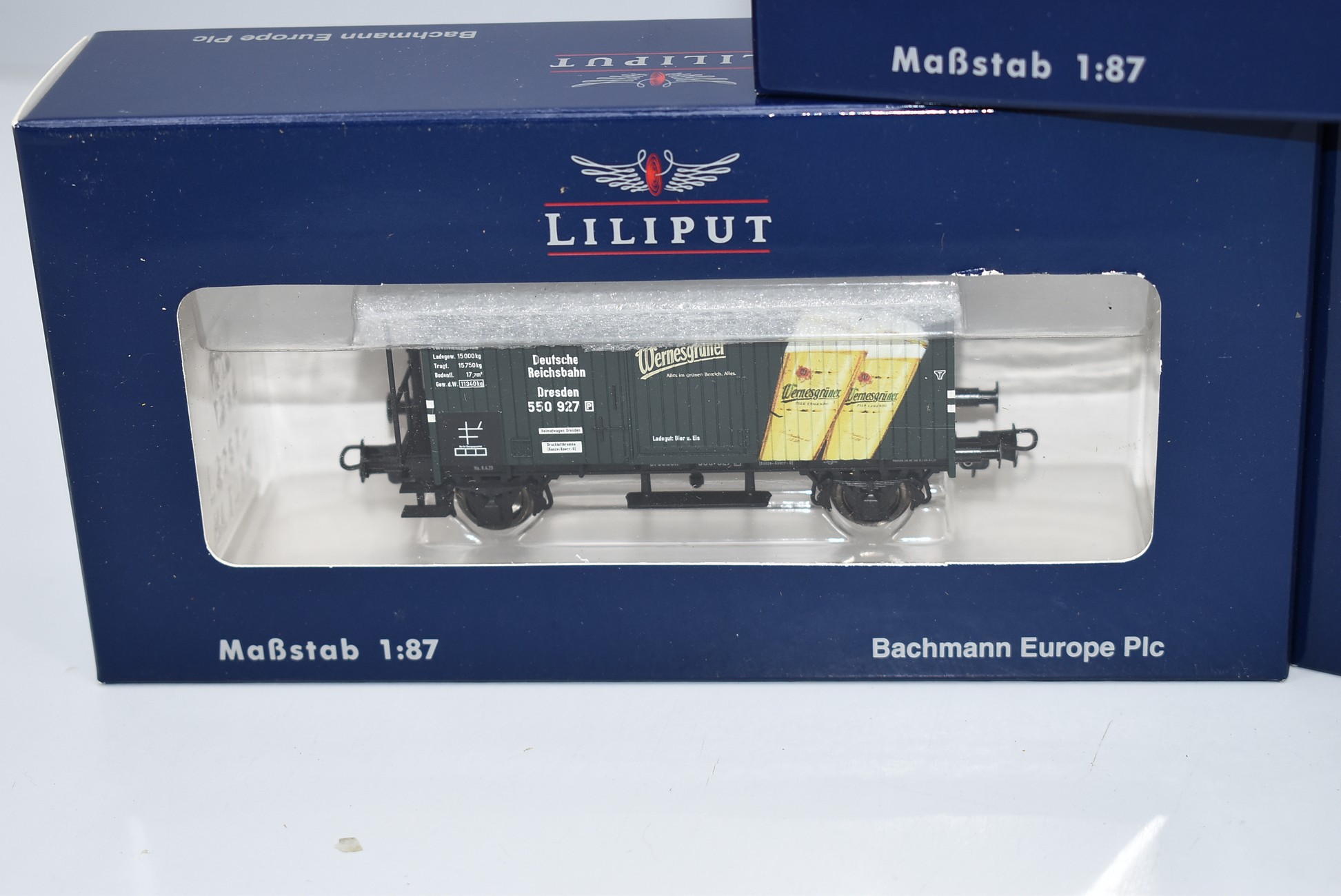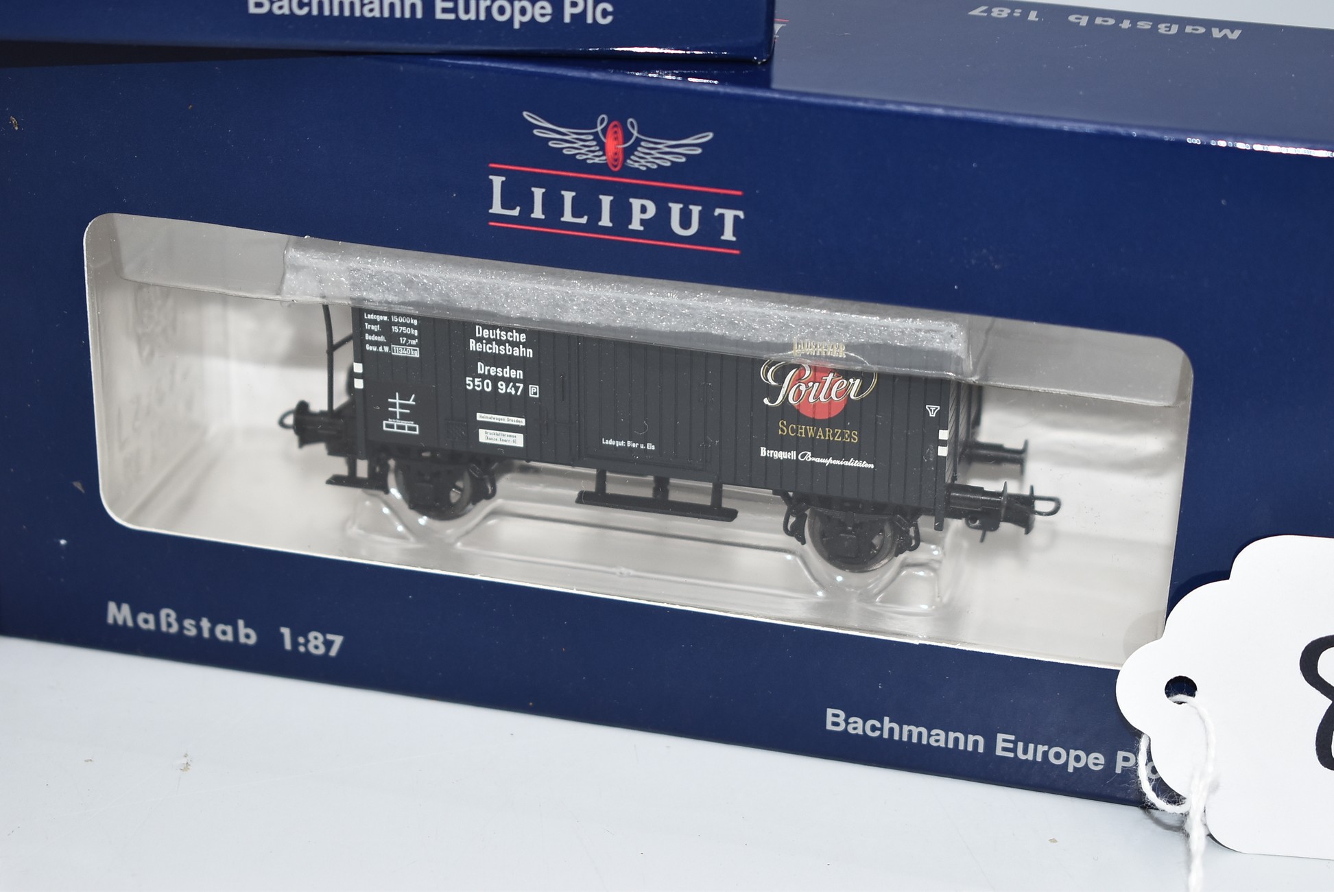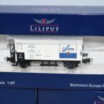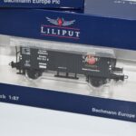 87. Lot of 3 Liliput HO-Scale Box Cars – Including L224806 Porter, L224808 SION, and L224808 Wernesgruner – All New in Box