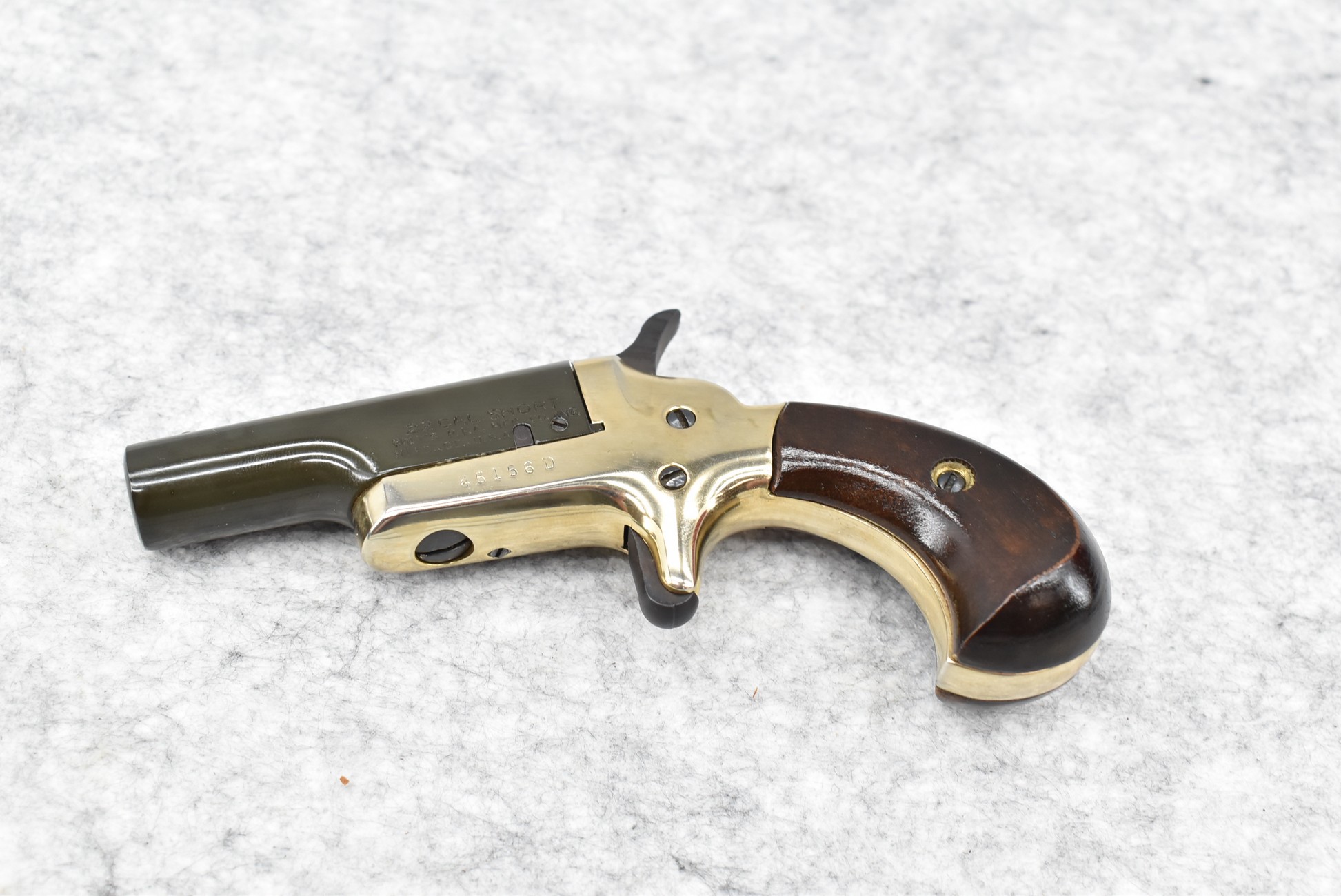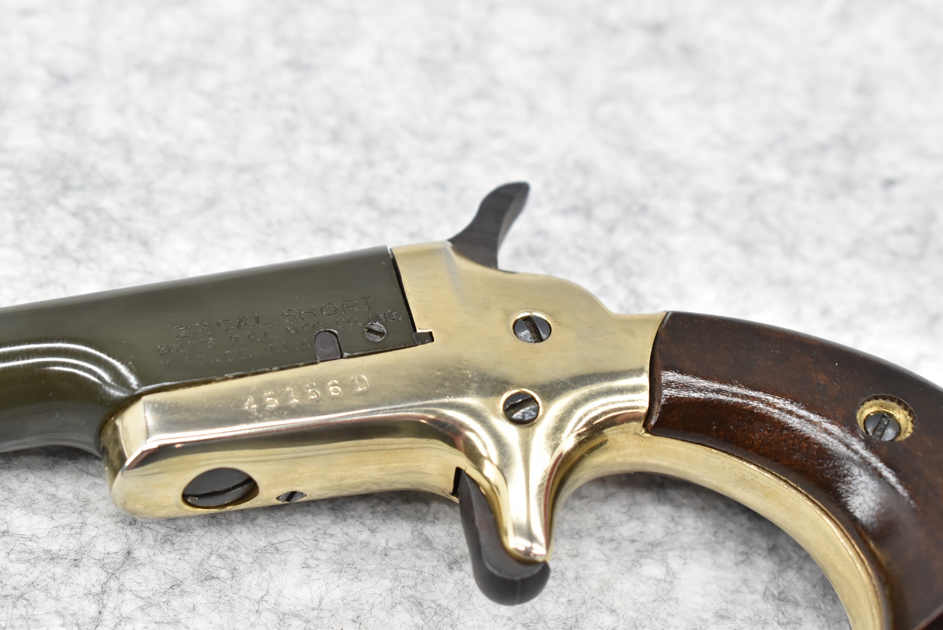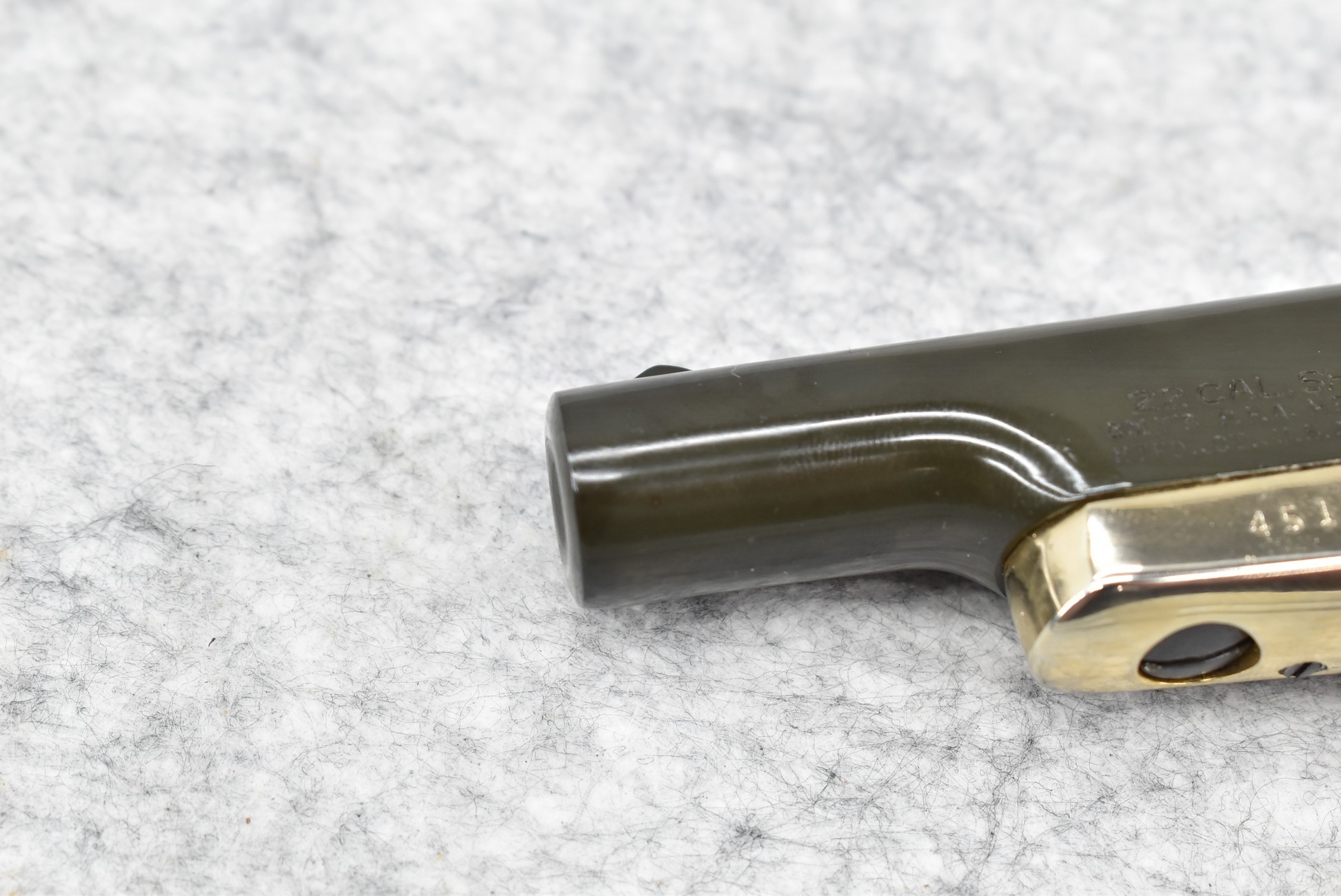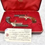 87R. Pair of Consecutive Serial Number Colts – Mod. Derringer Fourth Models – 22 Short Cal. Single Shot Pistols – Both w/2 7/16” Barrels w/Factory Sights – Both w/Blued/Gold Finishes – Both w/Birds Head Wood Grips – New in Colt Factory Hard Case (CANNOT GO TO MARYLAND!)