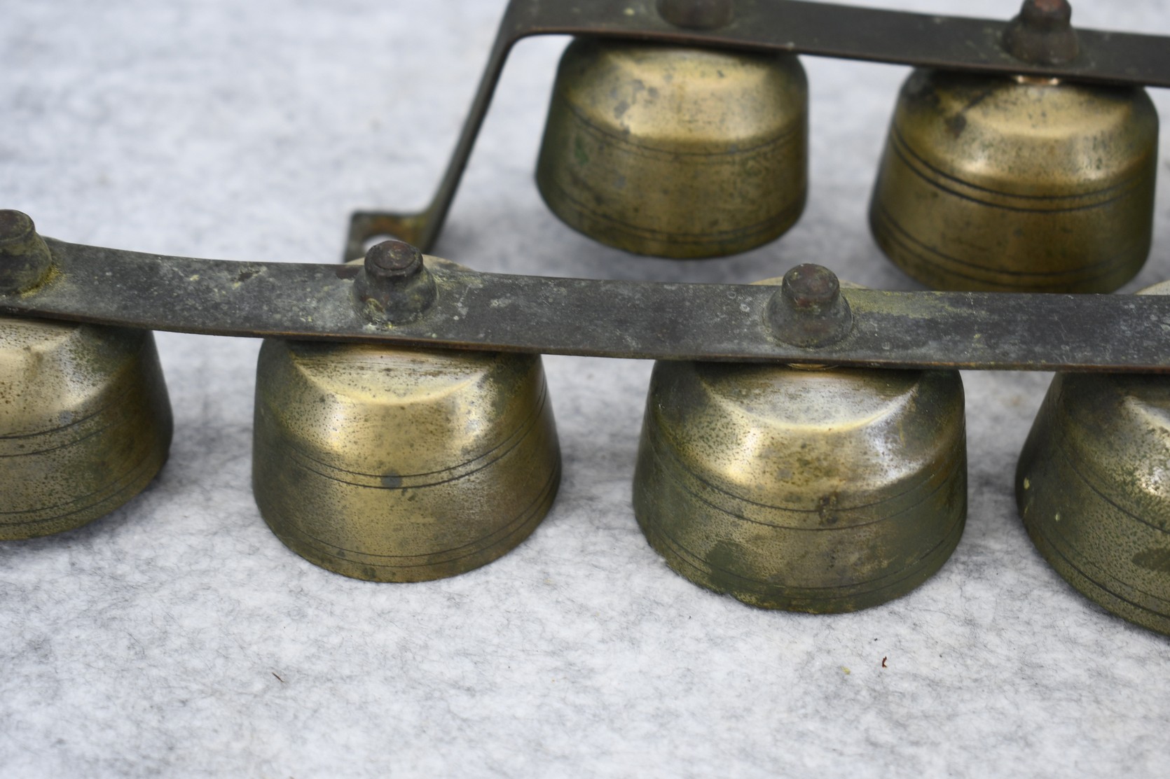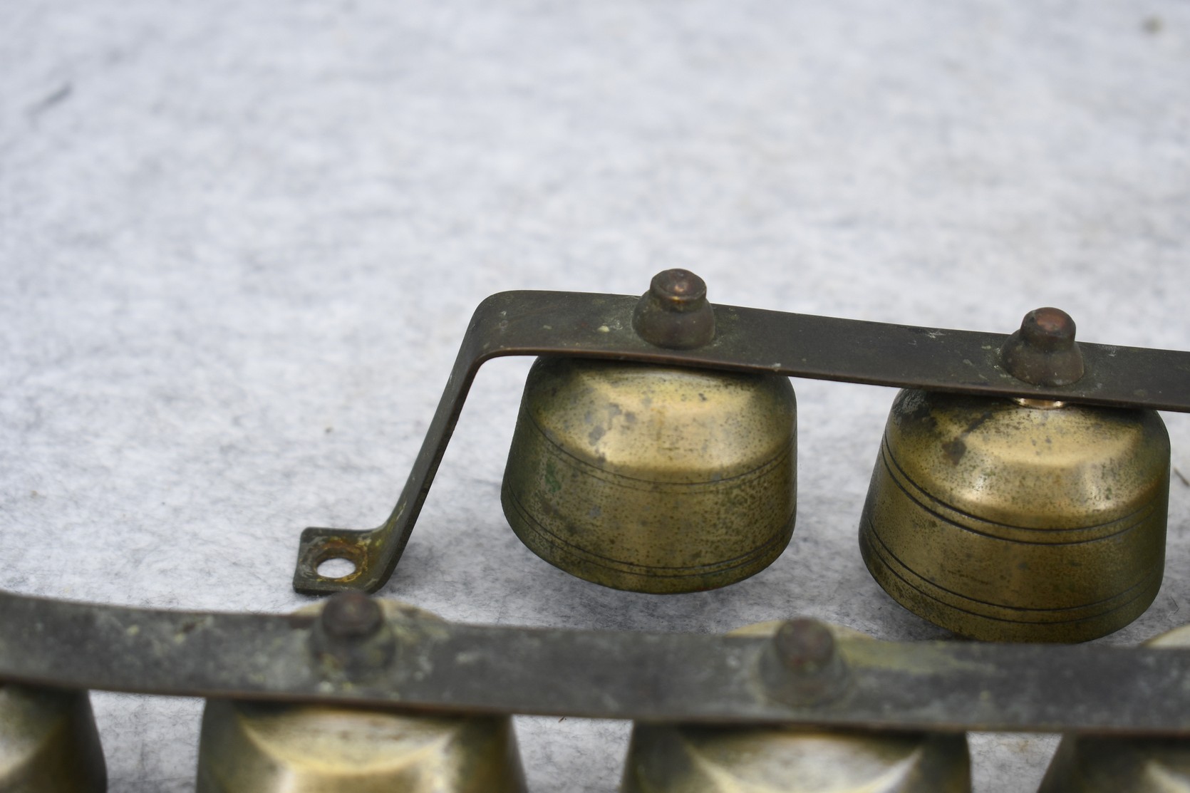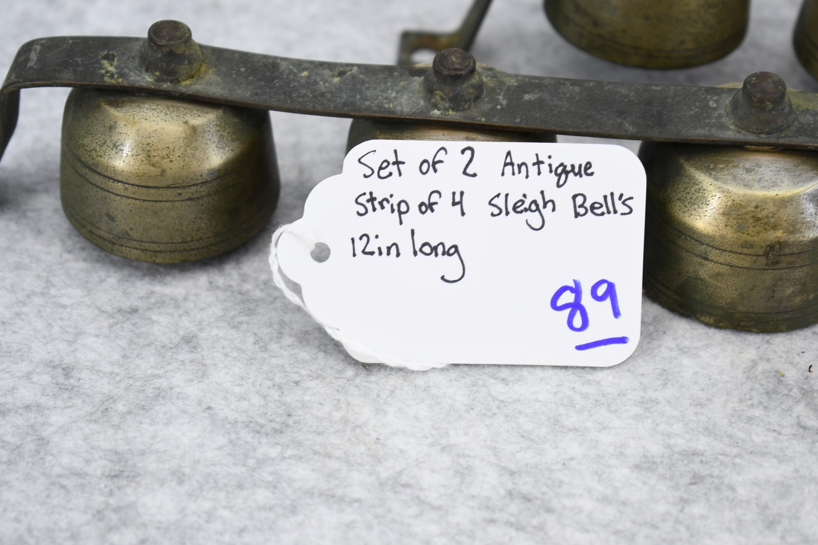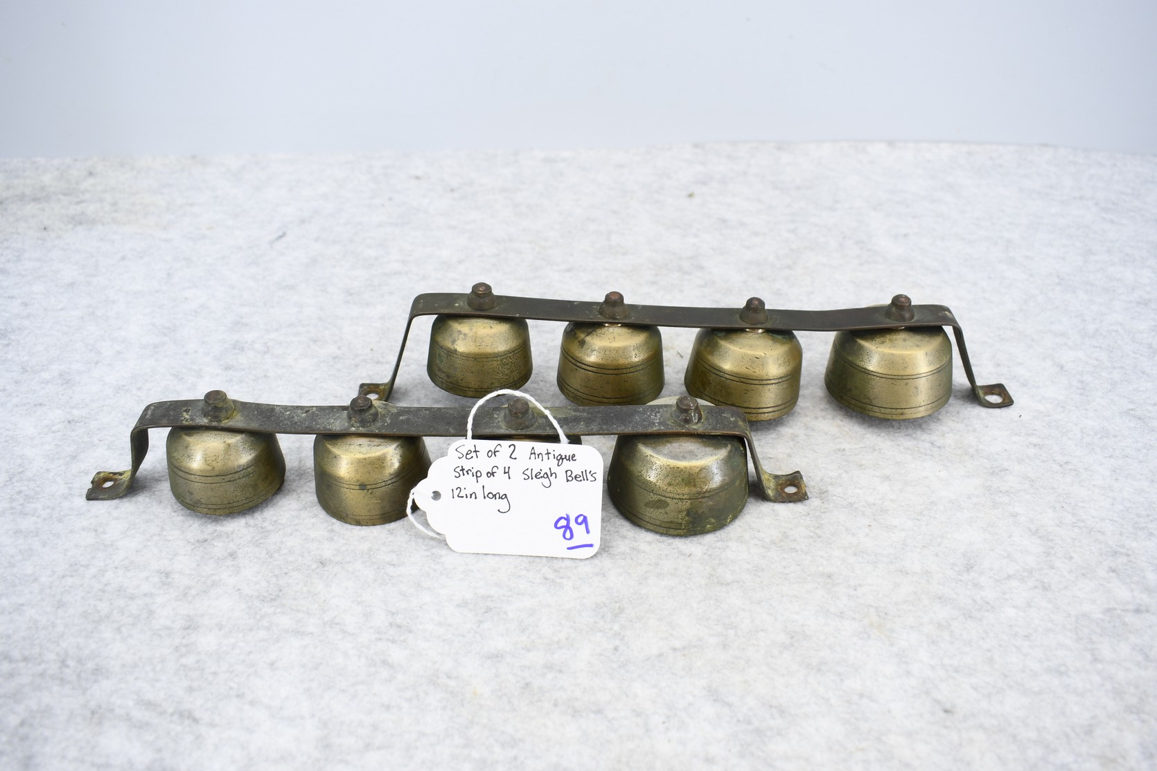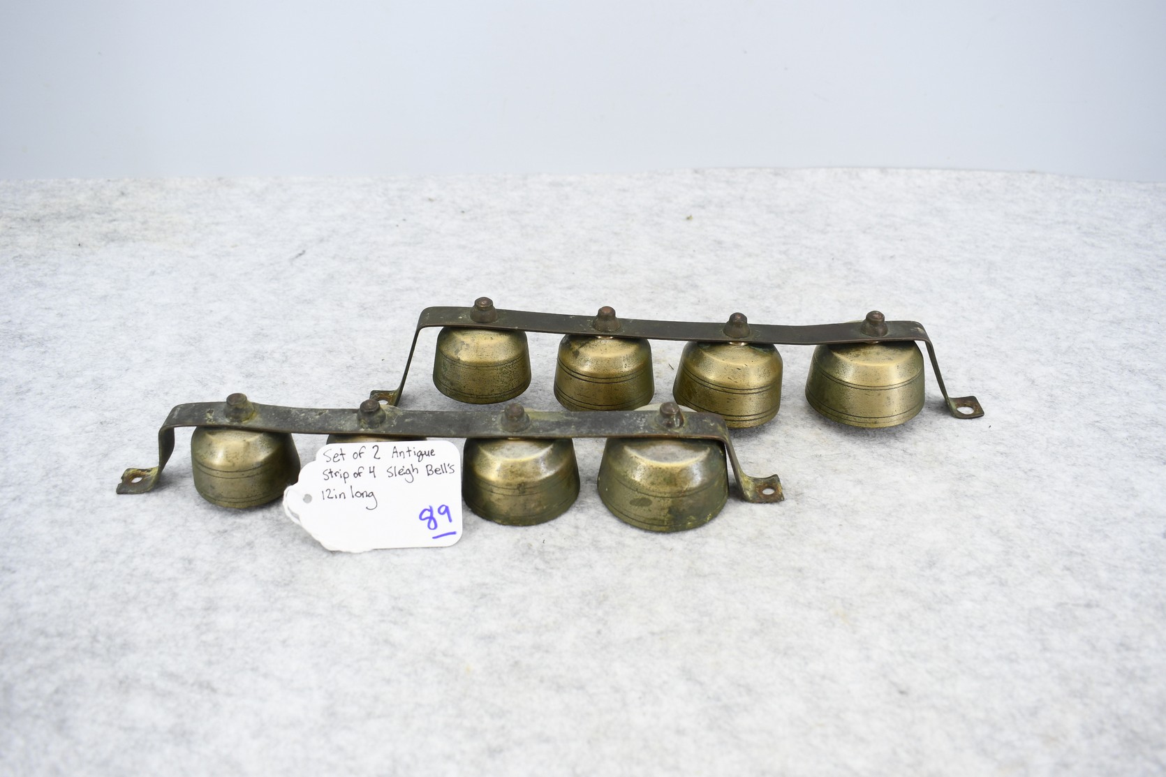 89. Pair of 4 Bell Shaft Sleigh Bells on Metal Carriers