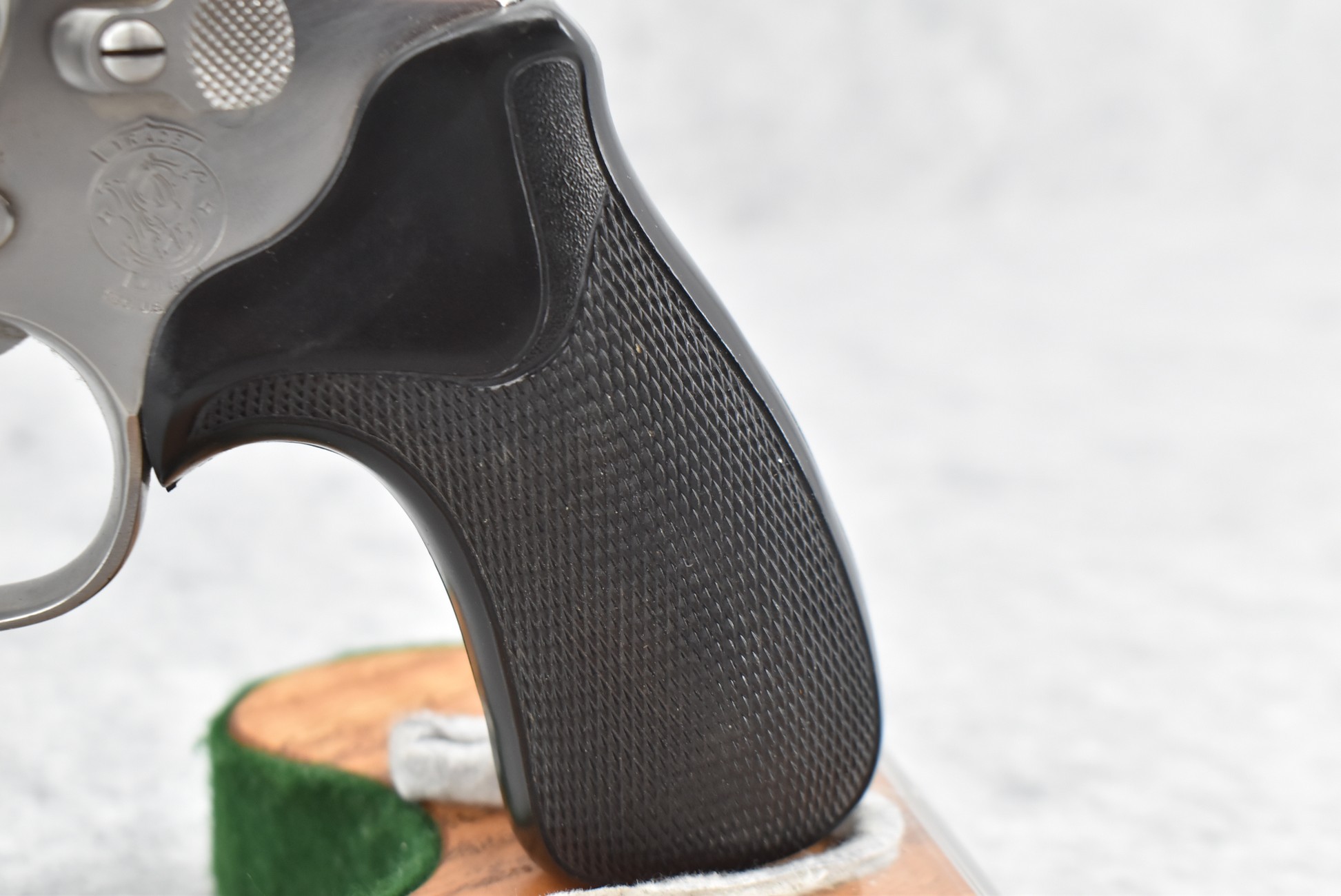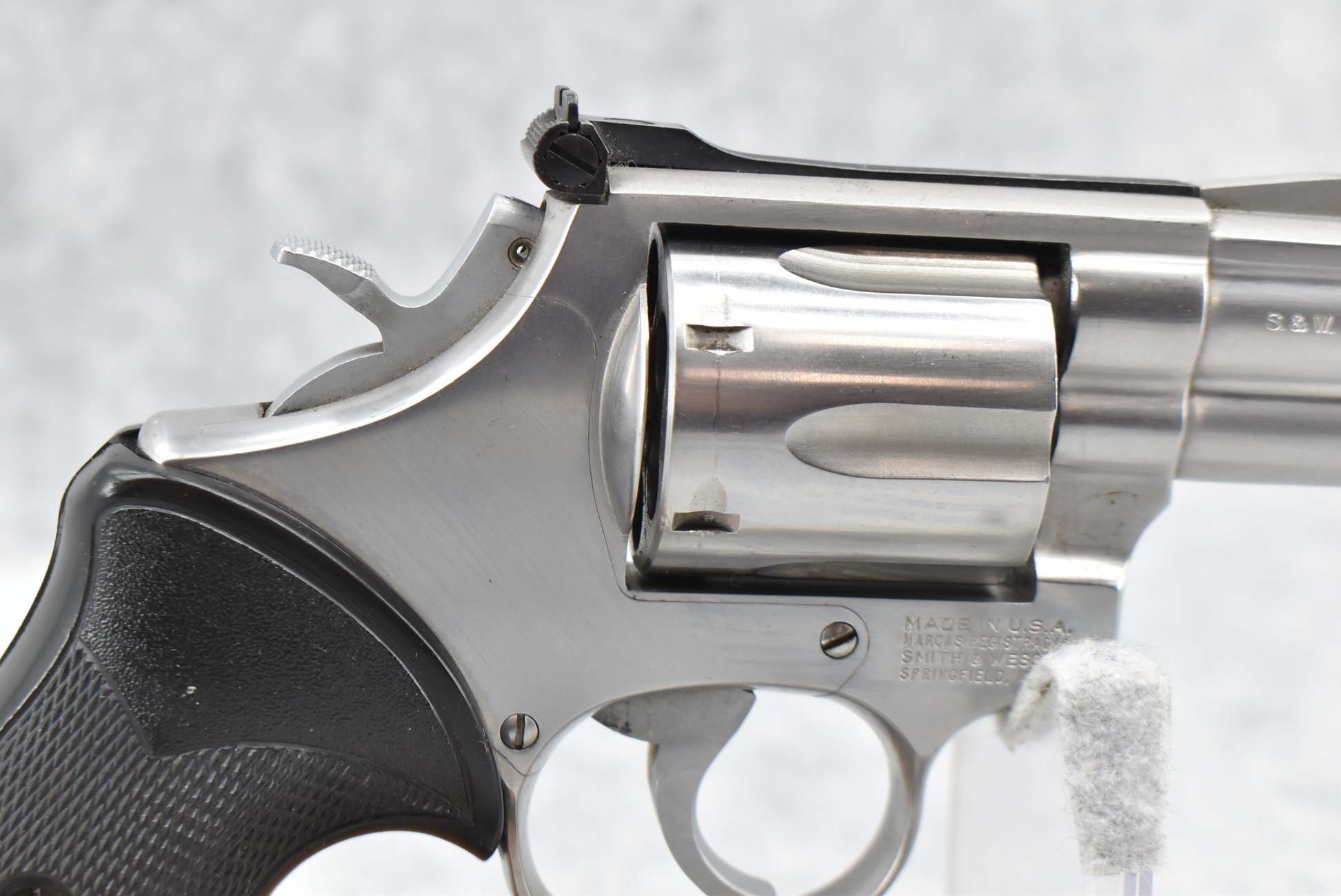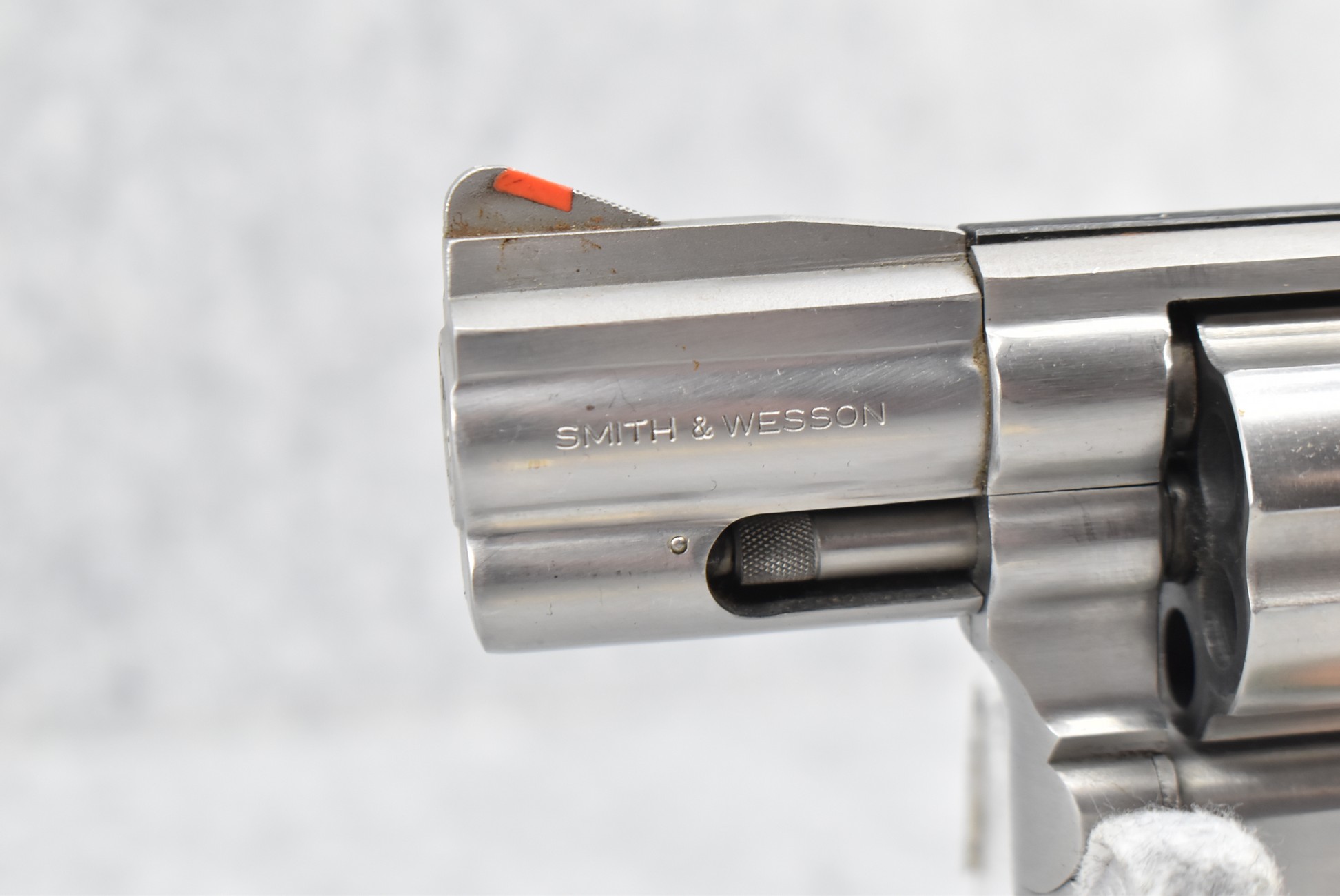 89R. Smith & Wesson – Mod. 686 – 357 Mag. Cal. Double Action Revolver – w/2½” Barrel w/Red Blade Front and Adjustable Rear Sights – Stainless Finish – w/Checkered Black Pachmayr Grip