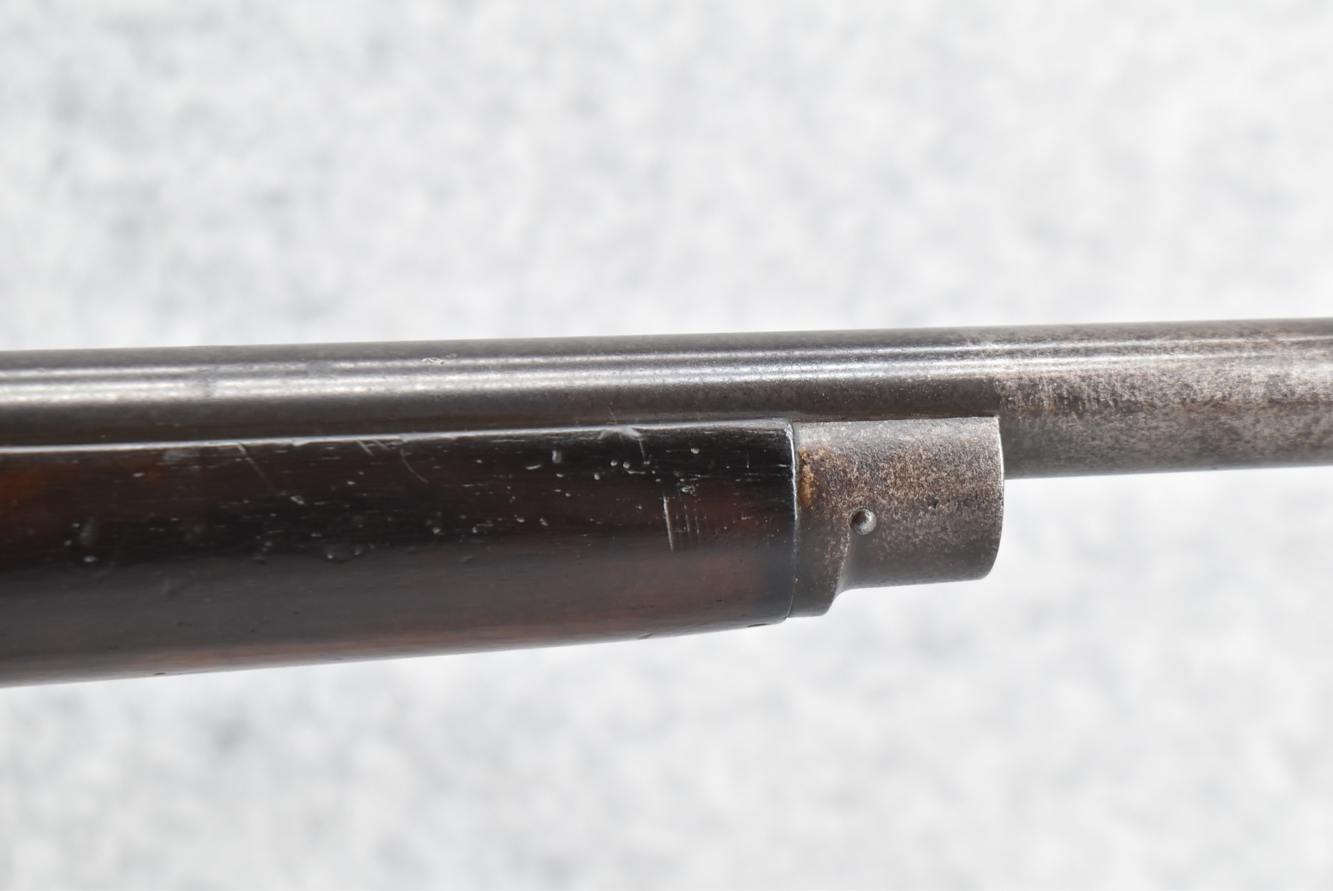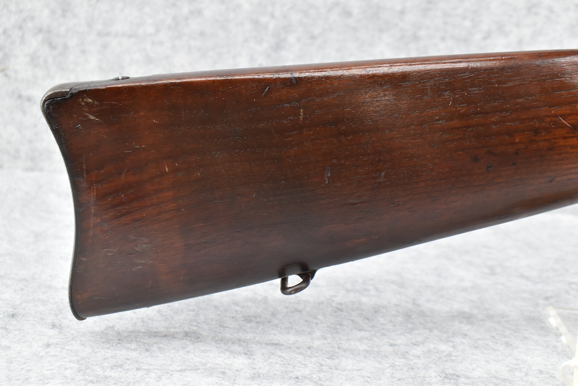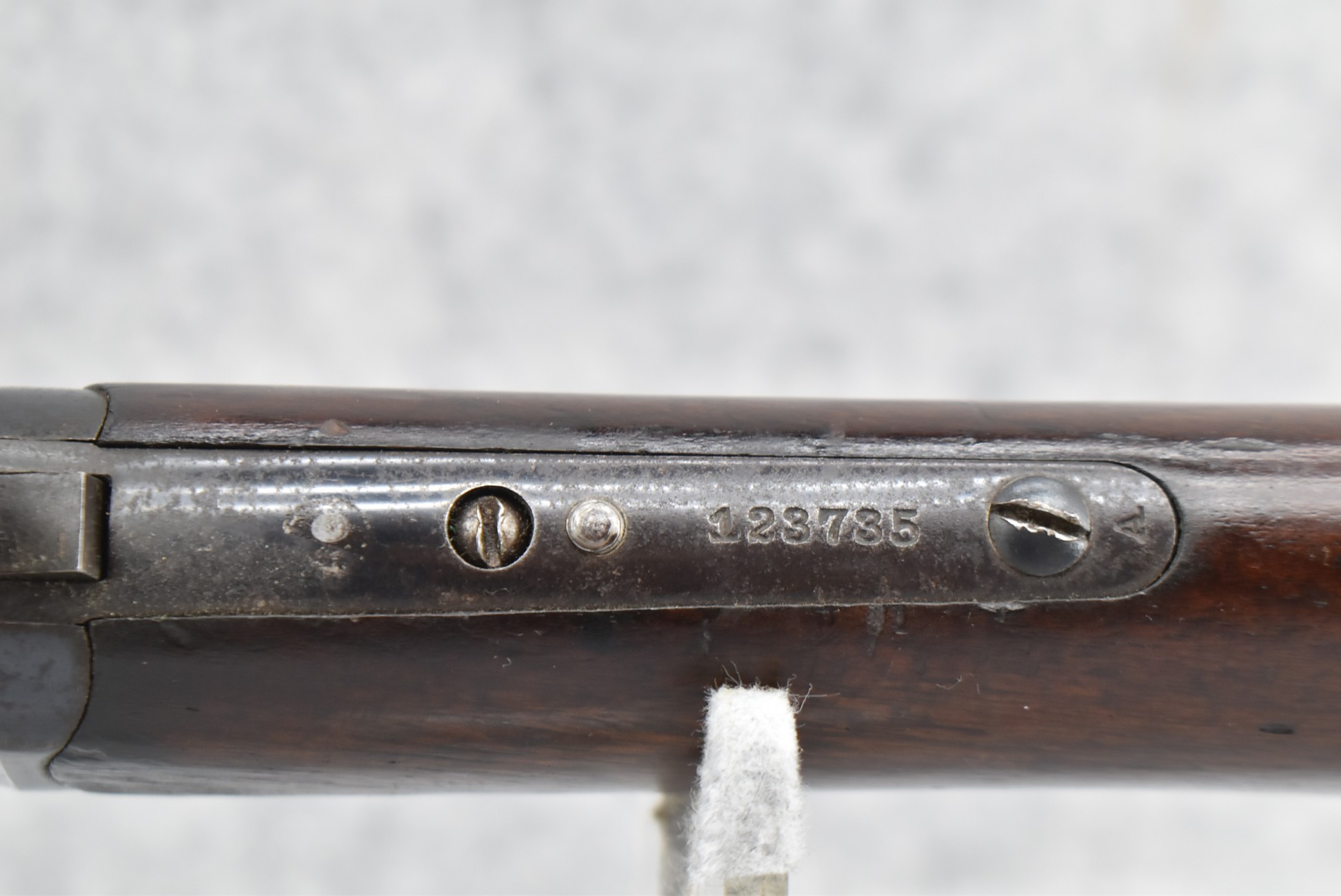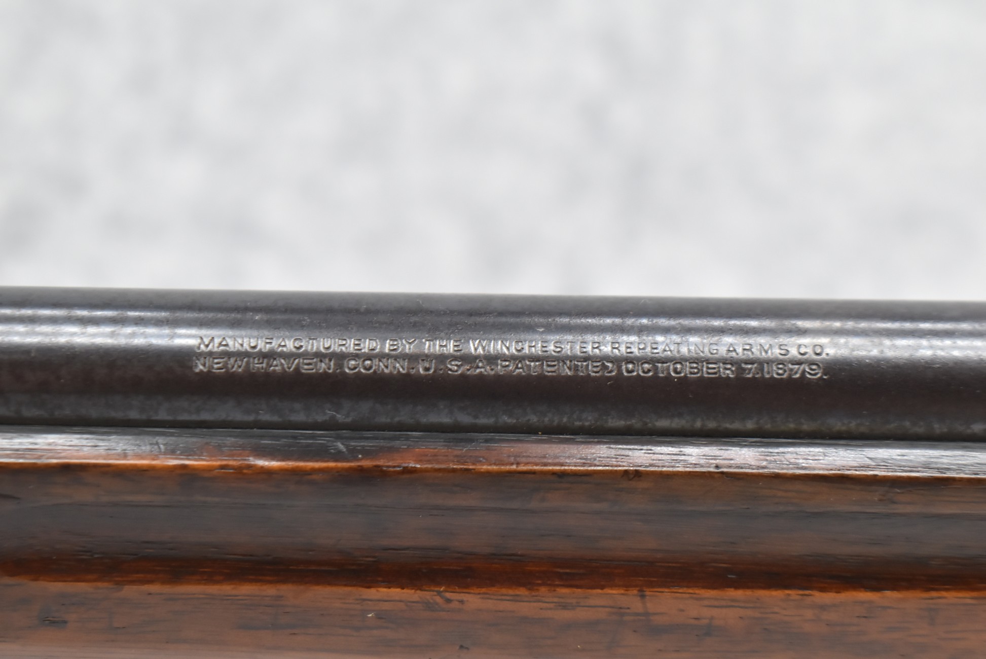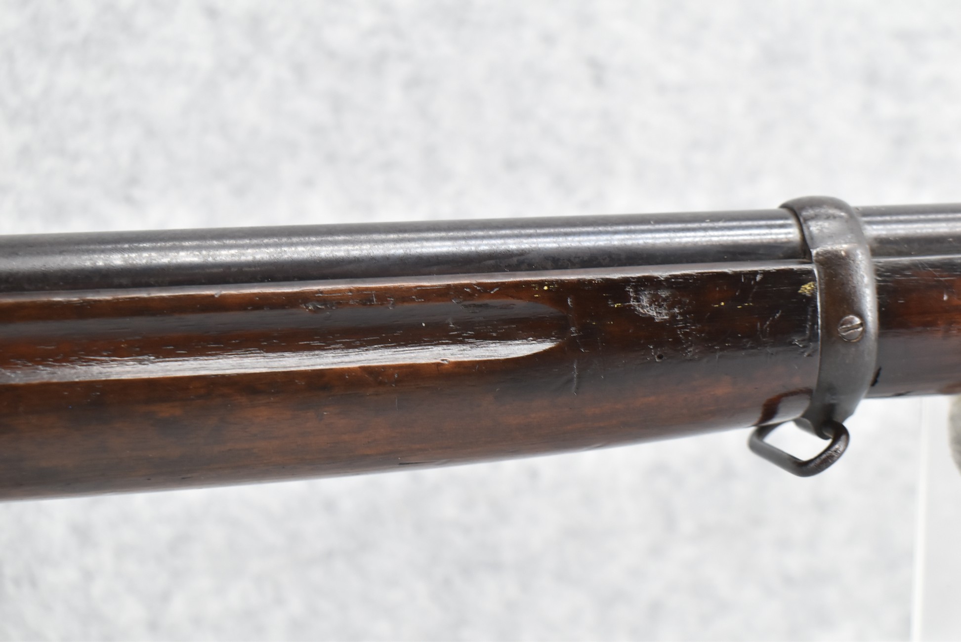 89R. Winchester – Mod. 1885 Low Wall Winder Musket – 22 Short Cal. Single Shot Breech Load Rifle – w/28” Barrel w/Blade Front & Correct Adj. Rear Receiver Peep Sights – Blued Finish – w/Straight Grip Wood Butt Stock w/Metal Butt Plate & Full Length Musket Wood Forearm – Marked “US” & Ordnance Bomb Stamped Tang – Mfg. 1918