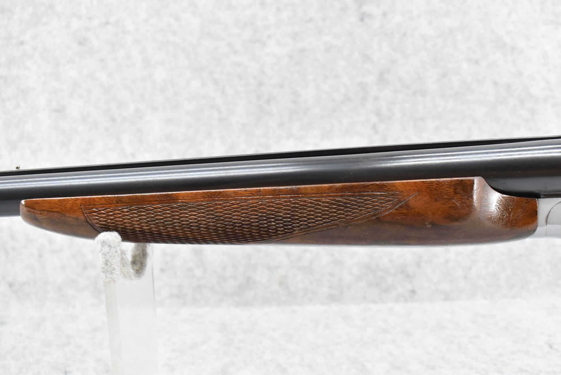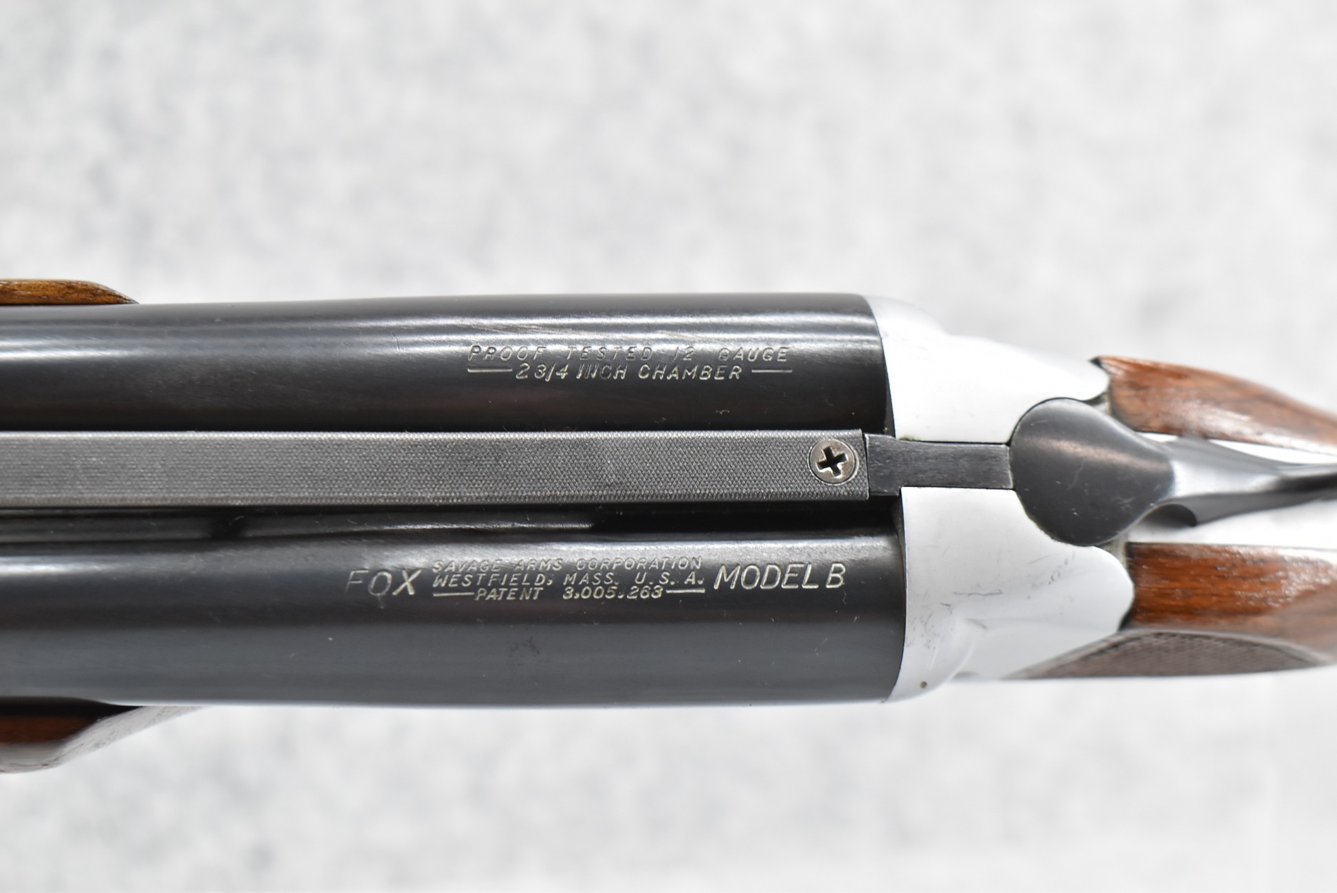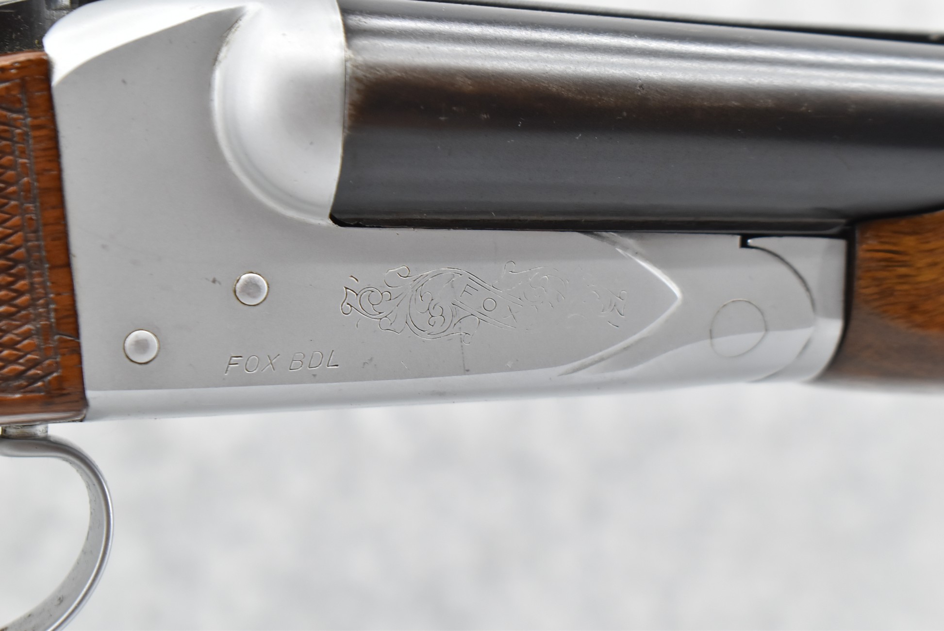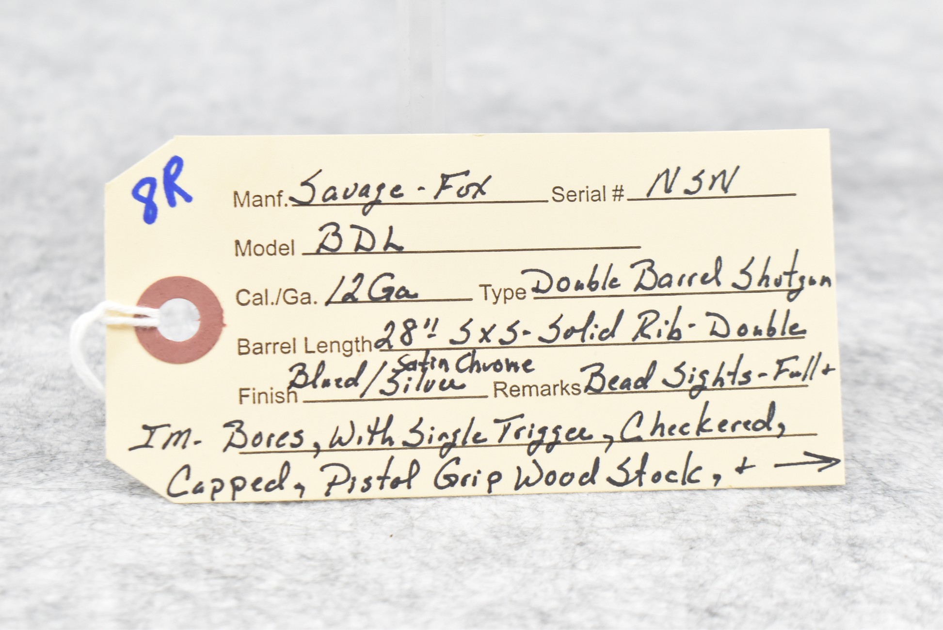 8R. Savage-Fox – Mod. BDL – 12ga. Double Barrel Shotgun – w/28” Solid Rib Barrels w/Double Bead Sights – Blued/Satin Chrome Silver Finish – w/Checkered Capped Pistol Grip Wood Stock and Beavertail Forearm w/Factory Butt Plate – w/Single Trigger – w/Engraved Frame on 3 Sides – Manufactured 1962-1965 Only