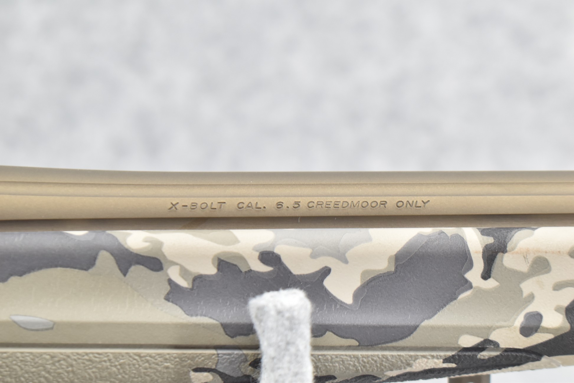90R. Browning – Mod. X-Bolt Speed Ovix – 6.5 Creedmoor Cal. Bolt Action Rifle – w/22” Fluted Barrel w/Muzzle Brake – Burnt Bronze Cerakote Finish – w/Textured Capped Synthetic Pistol Grip Browning Ovix Camo Stock w/Factory Recoil Pad – Unfired w/Factory Box & Manual