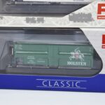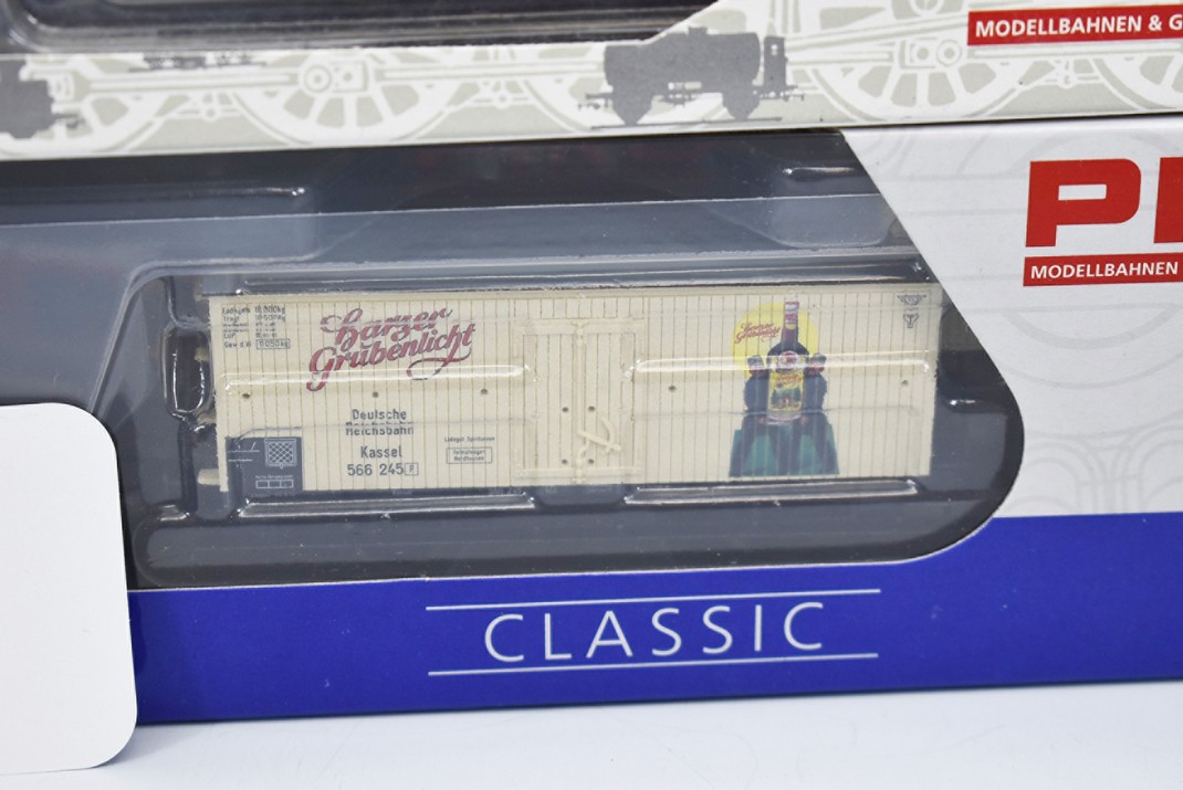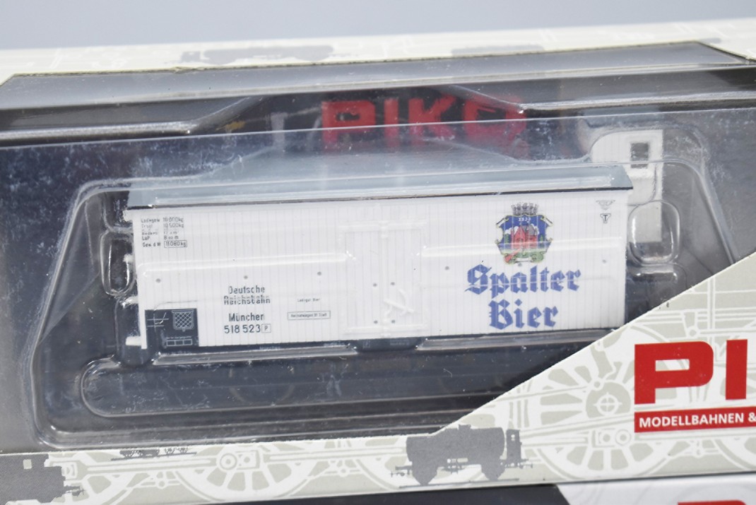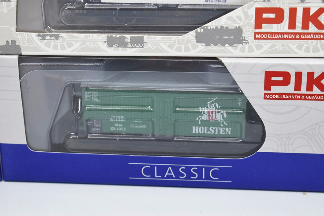 91. Lot of 4 Piko HO-Scale Box Cars – Including Pecken, Spalter Bier, Holsten, and Harzer Grubenlicht – All New in Box