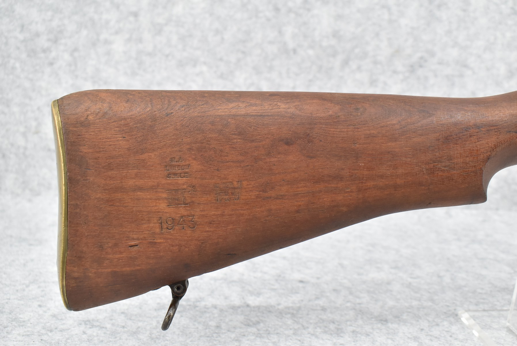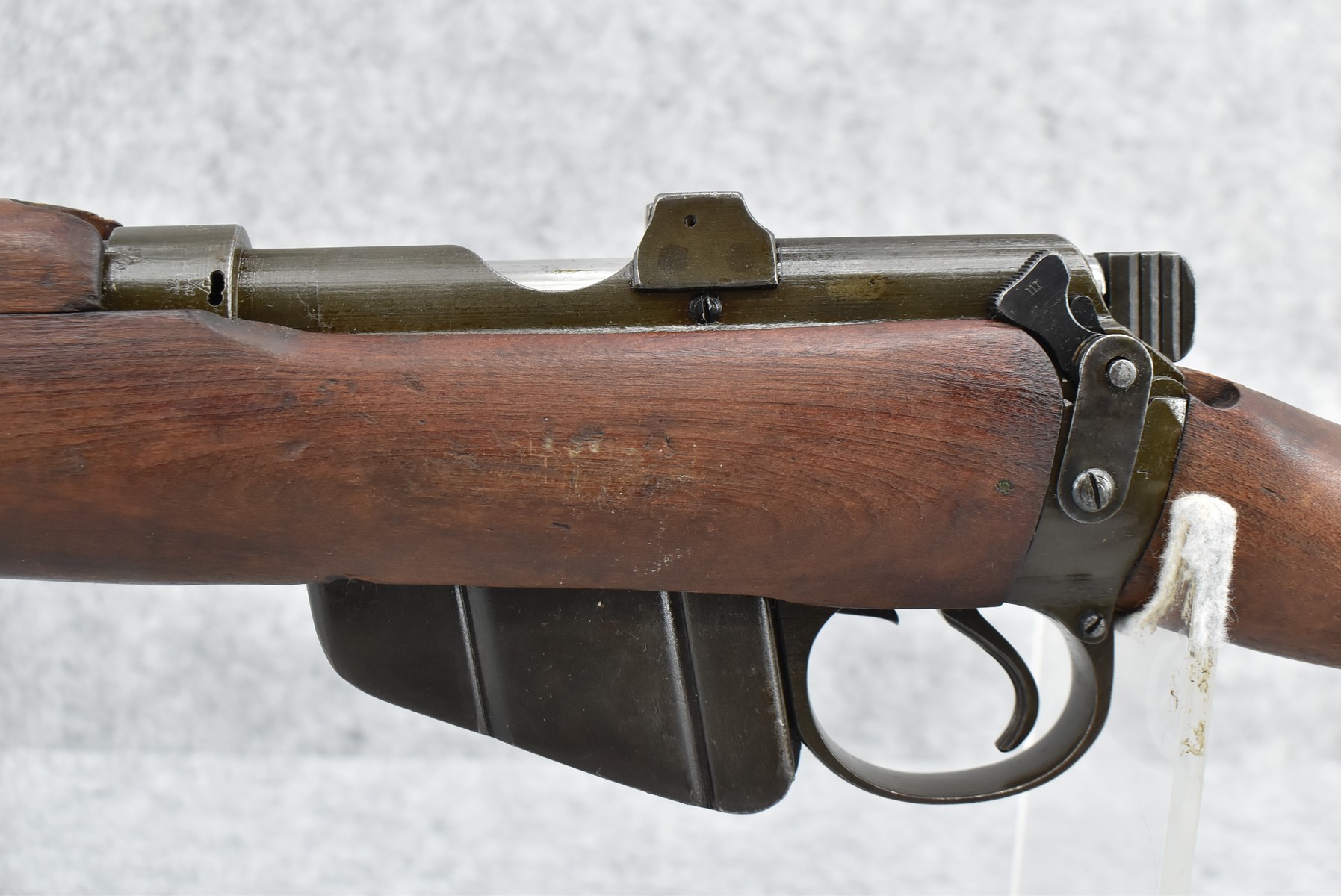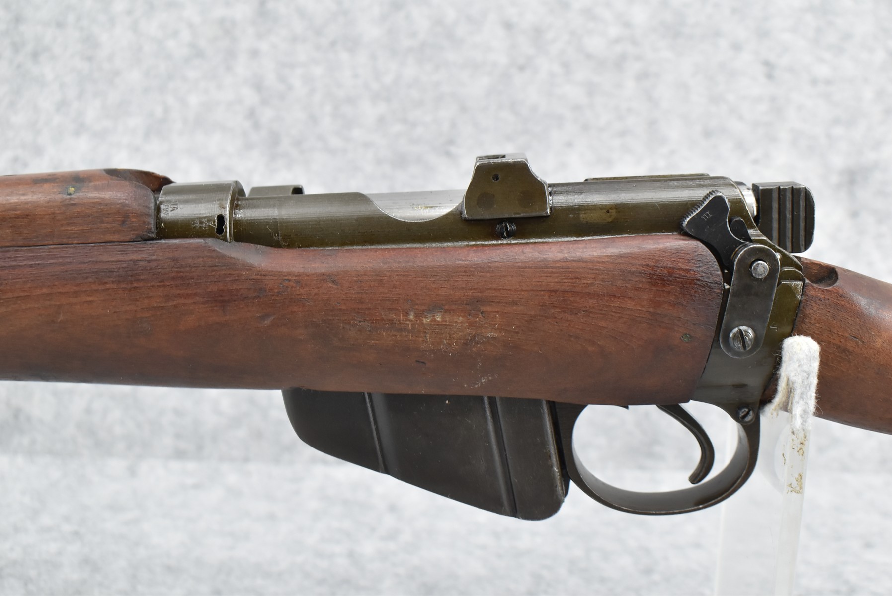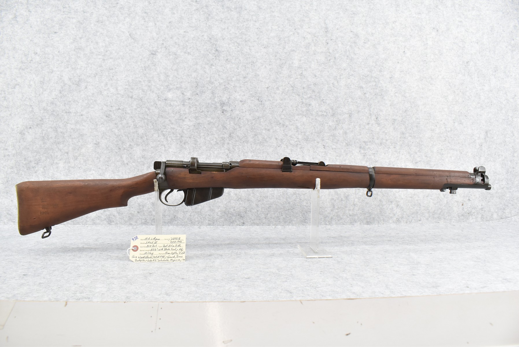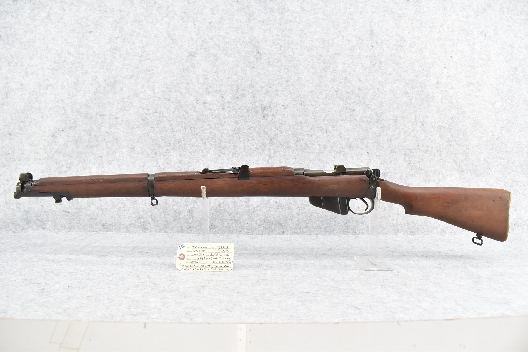 93R. M.A. Lithgow – Mod. SMLE III – 303 Brit Cal. Bolt Action Rifle – w/25 ¼” Barrel w/Blade Front & Adj. Rear Sights – Military Finish – w/Pistol Grip Wood Stocks (Dated 1943) w/Brass Butt Plate w/Lube Kit in Butt – w/Detachable Magazine – w/Sling Loops – Dated 1942 – Excellent Stock Markings – No Visible Import Marks