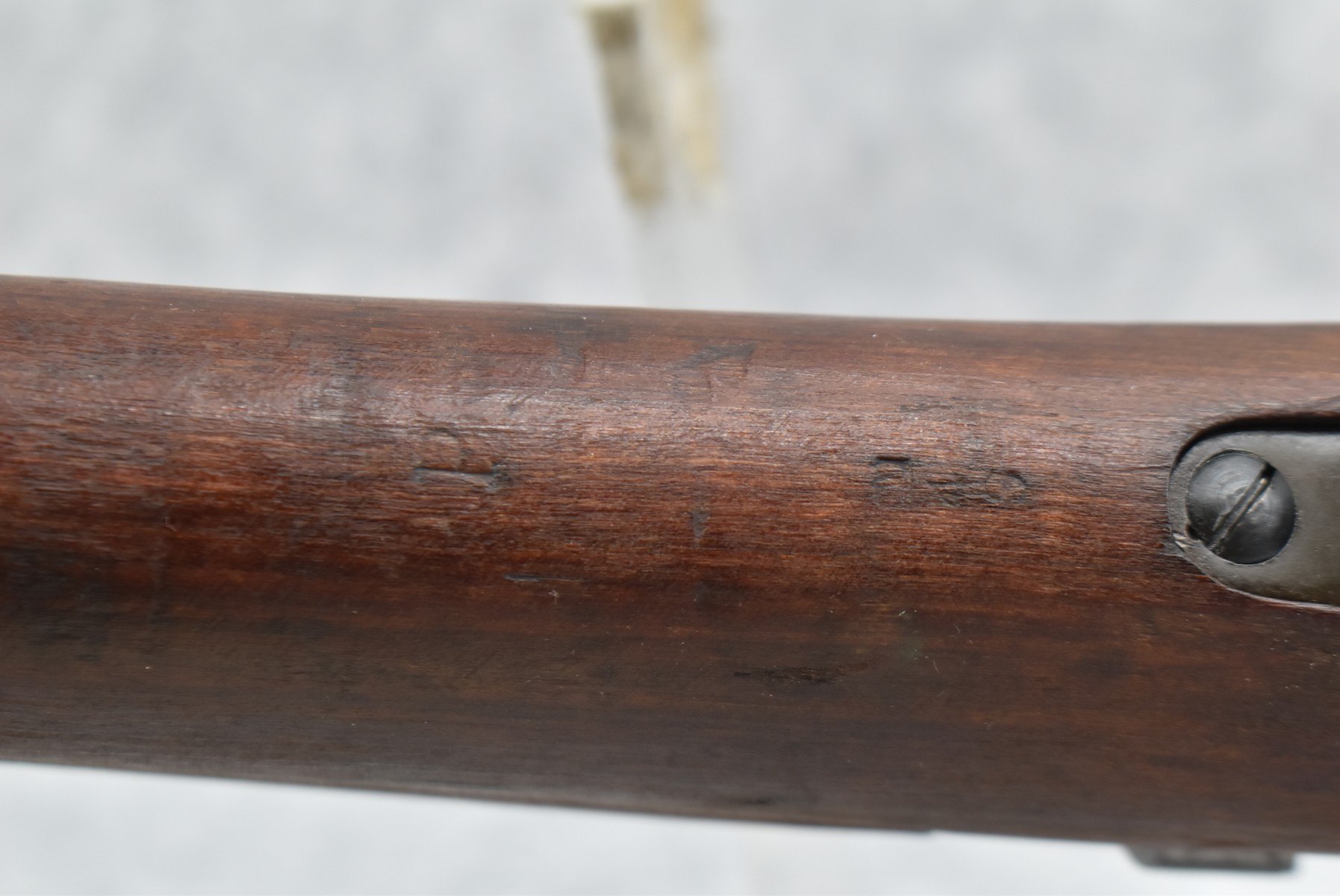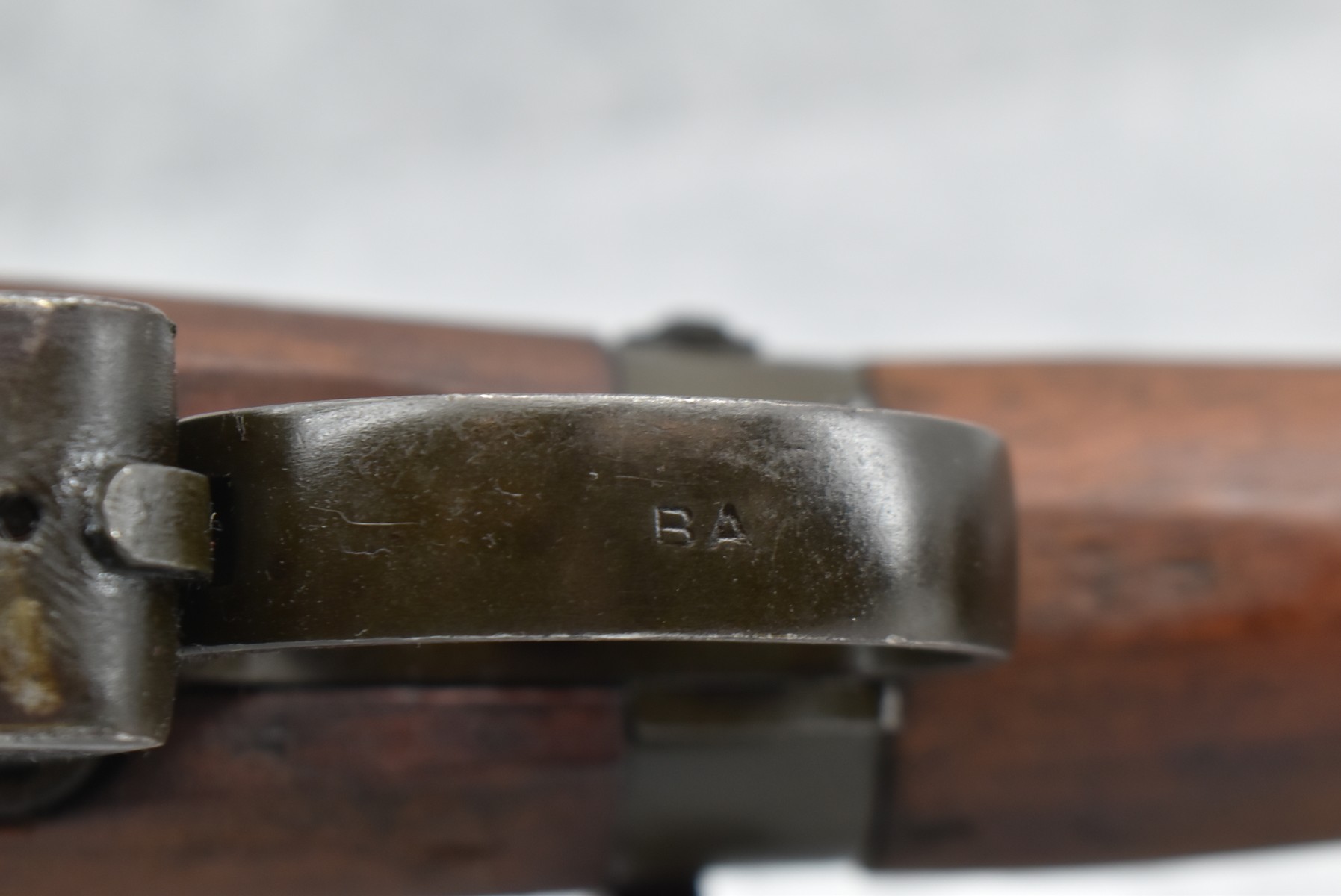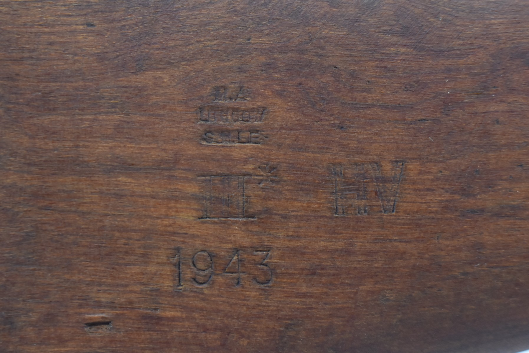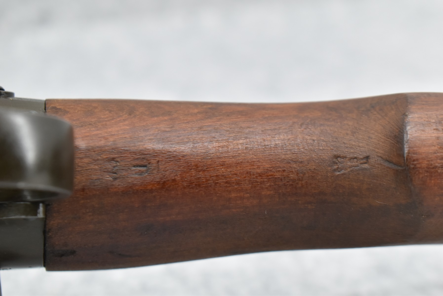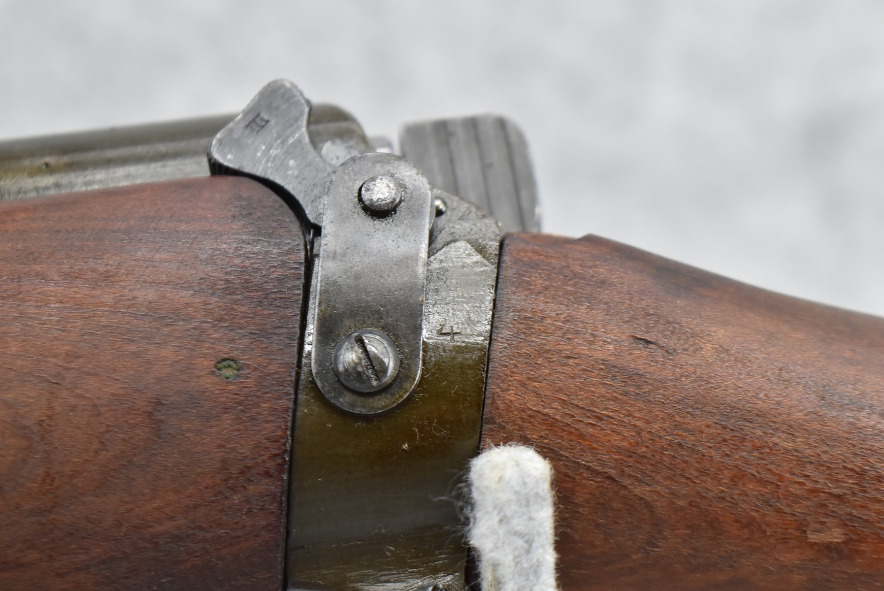 93R. M.A. Lithgow – Mod. SMLE III – 303 Brit Cal. Bolt Action Rifle – w/25 ¼” Barrel w/Blade Front & Adj. Rear Sights – Military Finish – w/Pistol Grip Wood Stocks (Dated 1943) w/Brass Butt Plate w/Lube Kit in Butt – w/Detachable Magazine – w/Sling Loops – Dated 1942 – Excellent Stock Markings – No Visible Import Marks