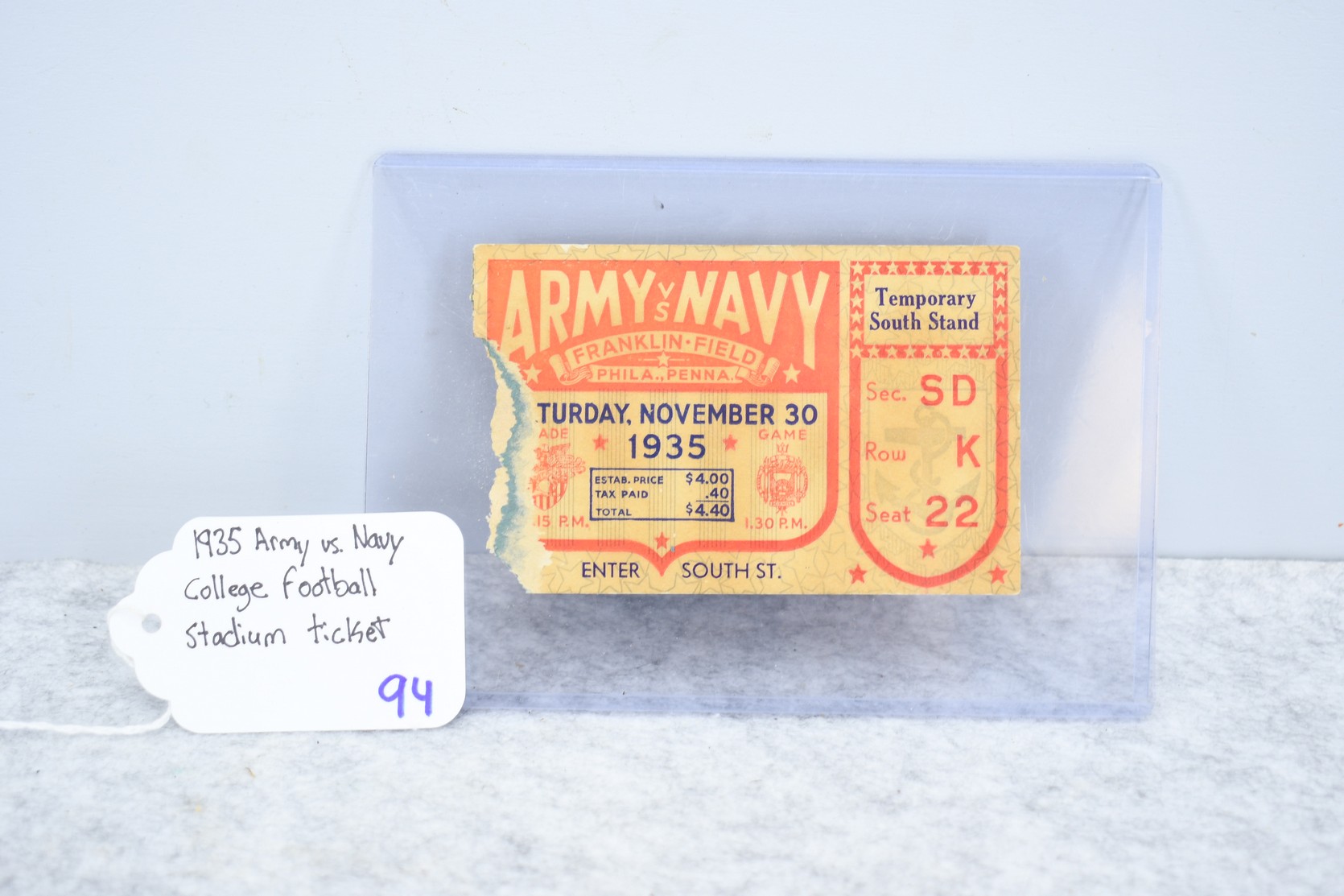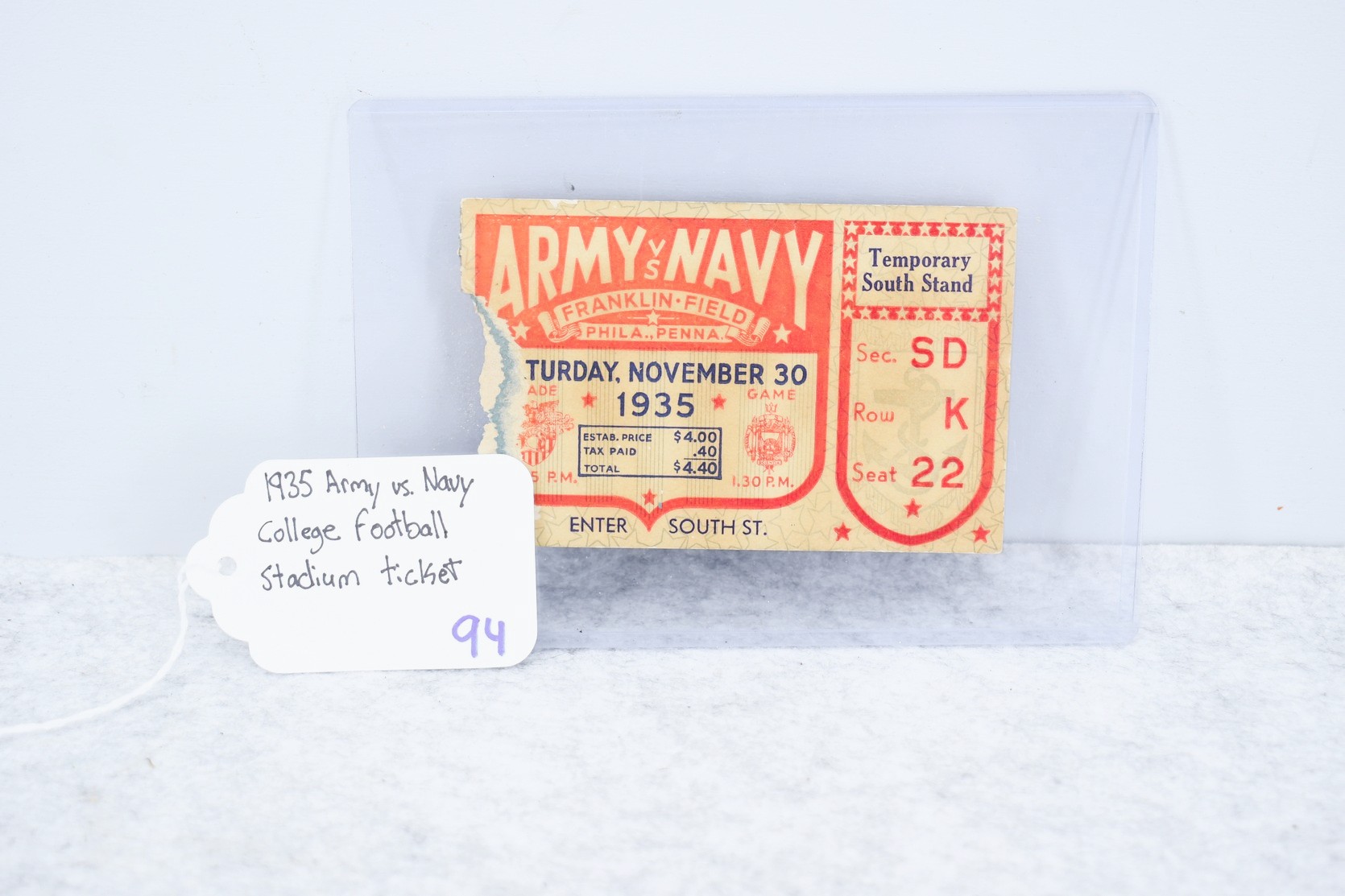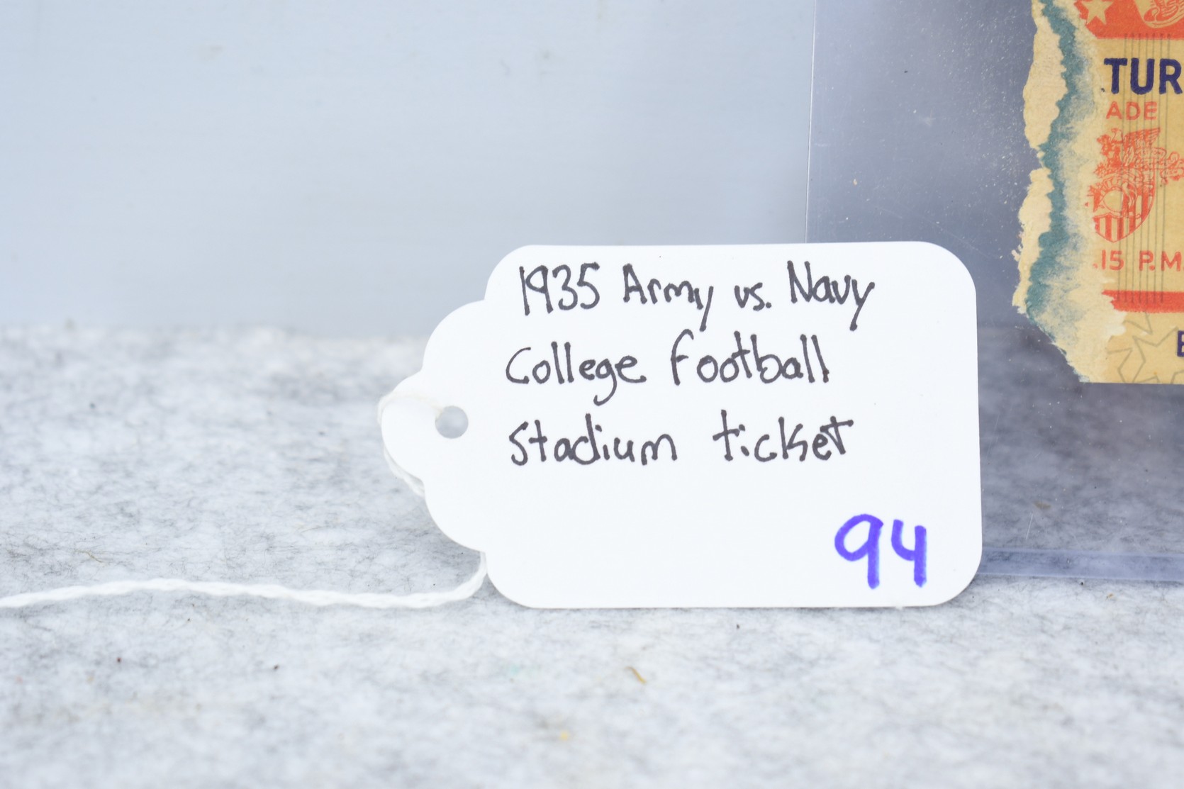 94. 1935 Army vs. Navy College Football Game Stadium Ticket – The Game was Saturday, November 30th – The Game was Played at Franklin Field, University of Pennsylvania – Army Won the Game 28 to 7
