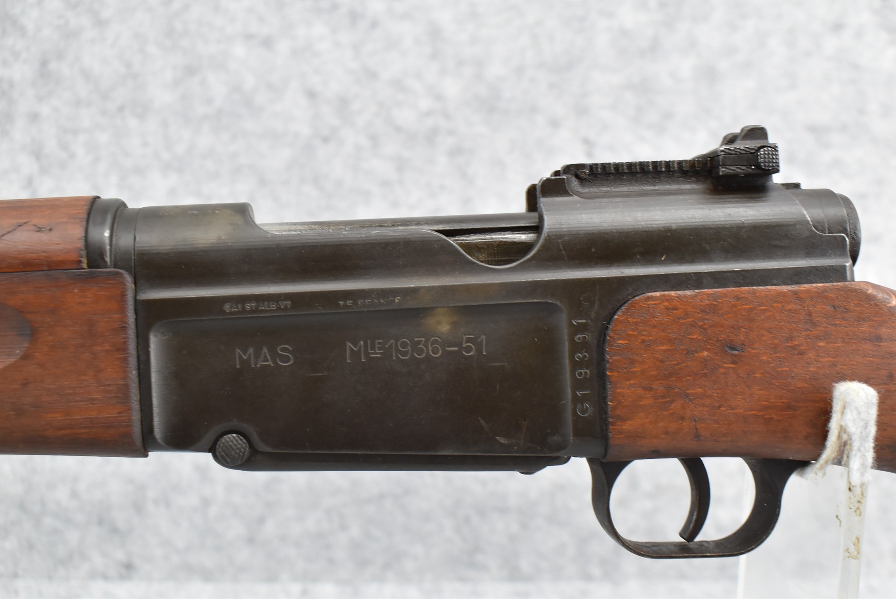 95R. MAS – Mod. 1936-51 – 7.5 French Cal. Bolt Action Rifle – w/25” Barrel Including Grenade Launcher w/Front & Rear Sights – Military Finish – w/Pistol Grip Wood Full Length Stock – Matching # Stock & Bolt – w/Bayonet – Import Marked