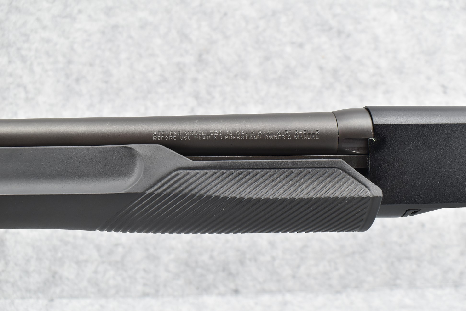 97R. Stevens – Mod. 320 Field Grade Tactical – 12ga. 3” Pump Action Shotgun – w/19” Barrel w/Fiber Optic Bead Front & Ghost Ring Adj. Rear Sights – Matte Black Finish – w/Black Synthetic Sport Stocks w/Butt Pad – New w/Factory Box
