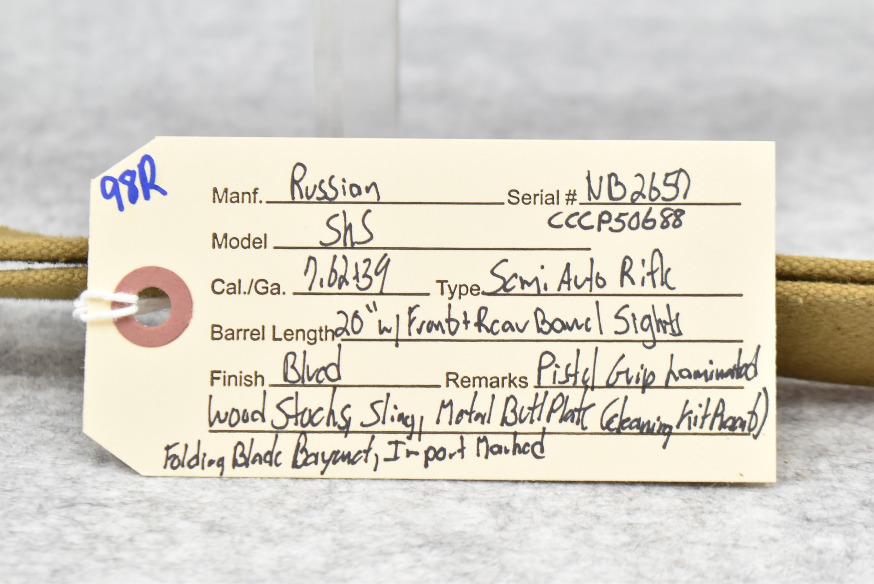 98R.       Russian – Mod. SKS – 7.62×39 Cal. Semi-Auto Rifle
