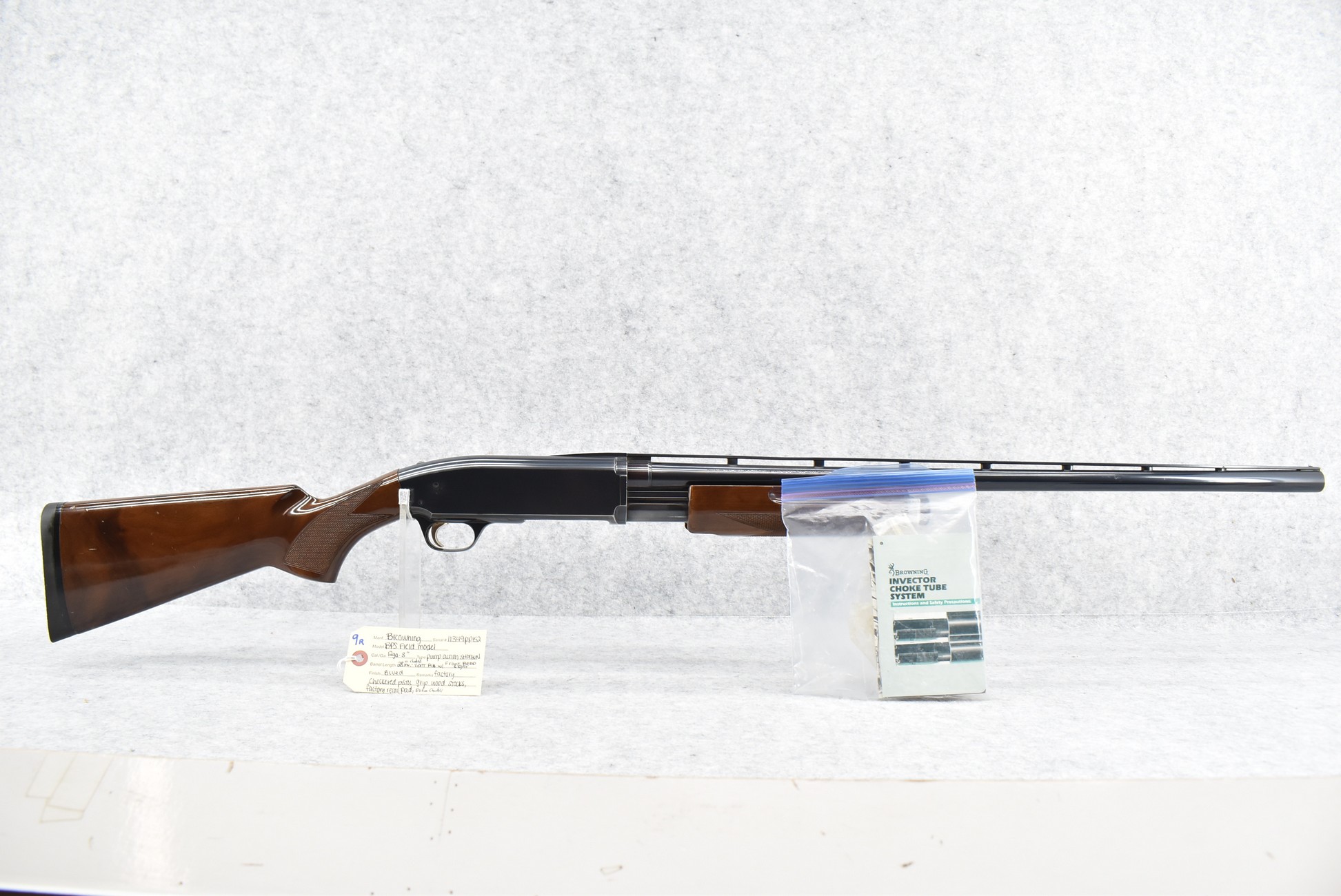 9R. Browning – Mod. BPS Field Model – 12ga. 3” Pump Action Shotgun – w/28” Inv. Choked, Vent-Rib Barrel w/Front Bead Sight – Blued Finish – w/Factory Checkered Pistol Grip Wood Stocks w/Factory Recoil Pad – w/Extra Chokes