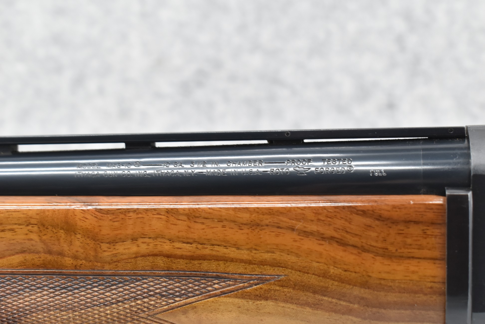 9R. Ithaca Gun Co. – Mod. Mag-10 – 10ga. 3½” Semi-Auto Shotgun – w/32” Full Choke Vent Ribbed Barrel w/Bead Sight – Blued Finish – w/Checkered Capped Pistol Grip Wood Stocks w/Factory Butt Pad