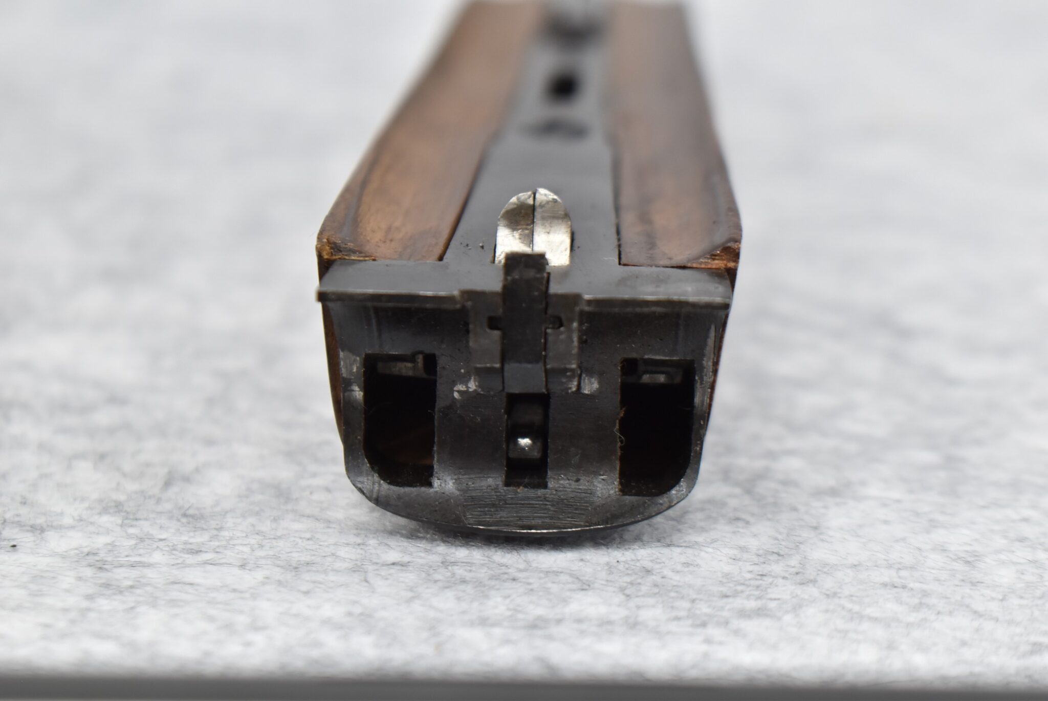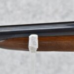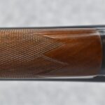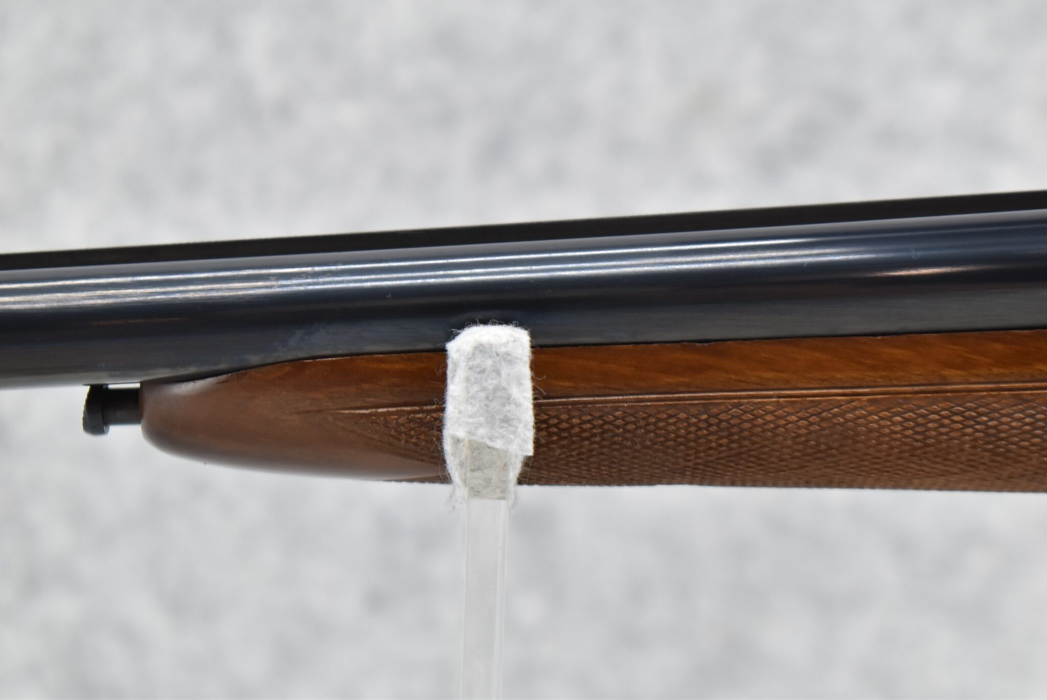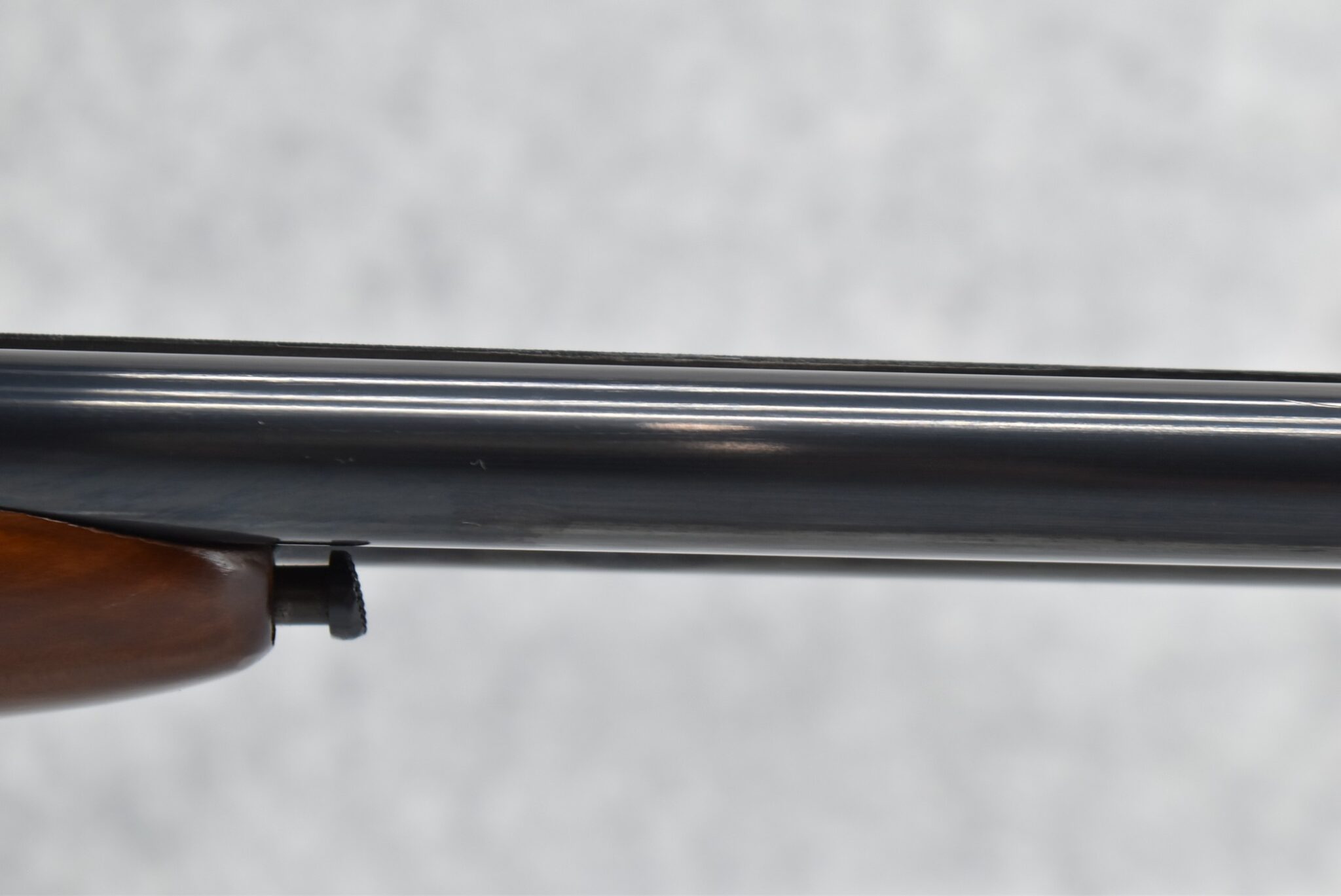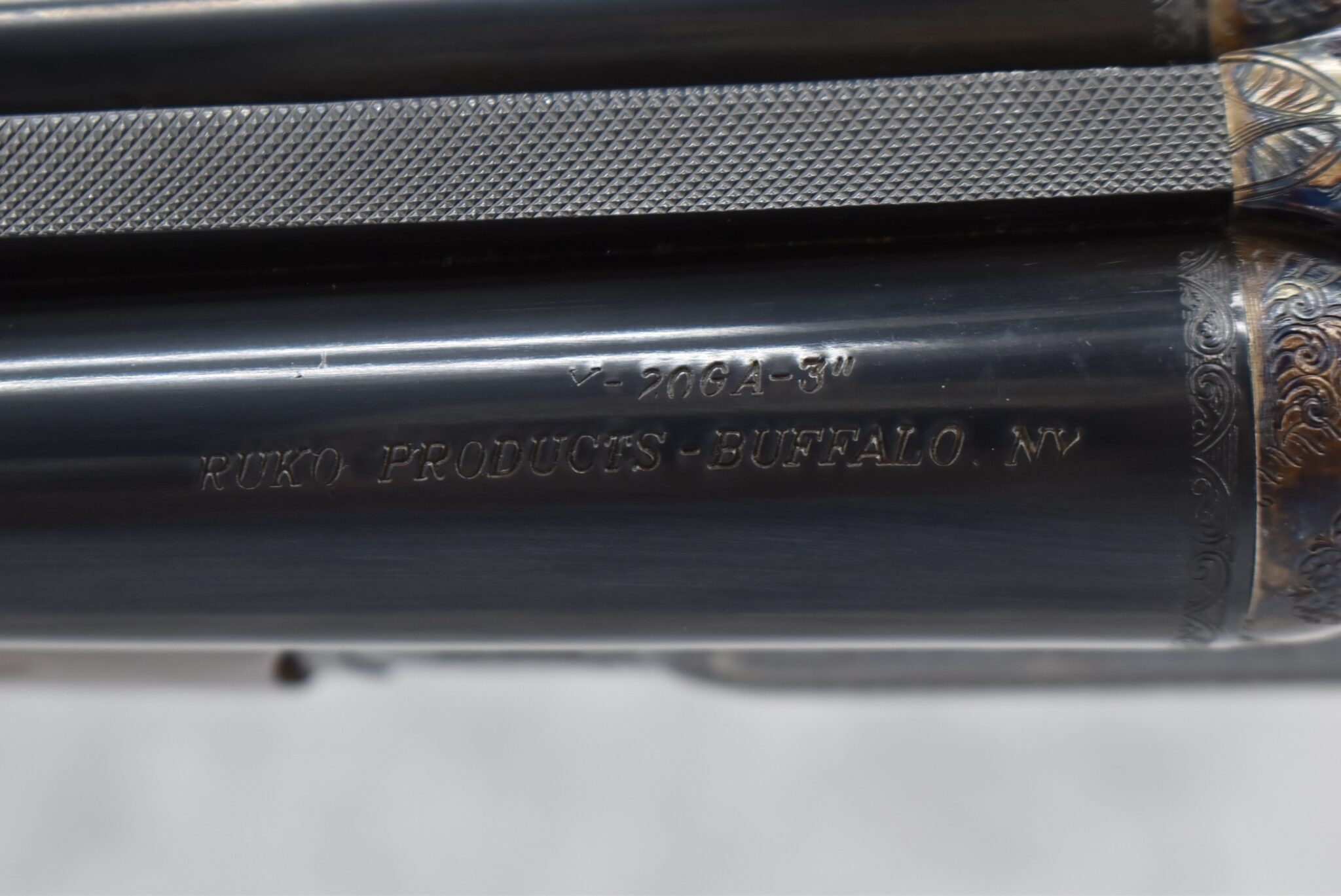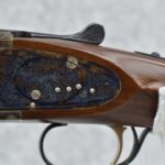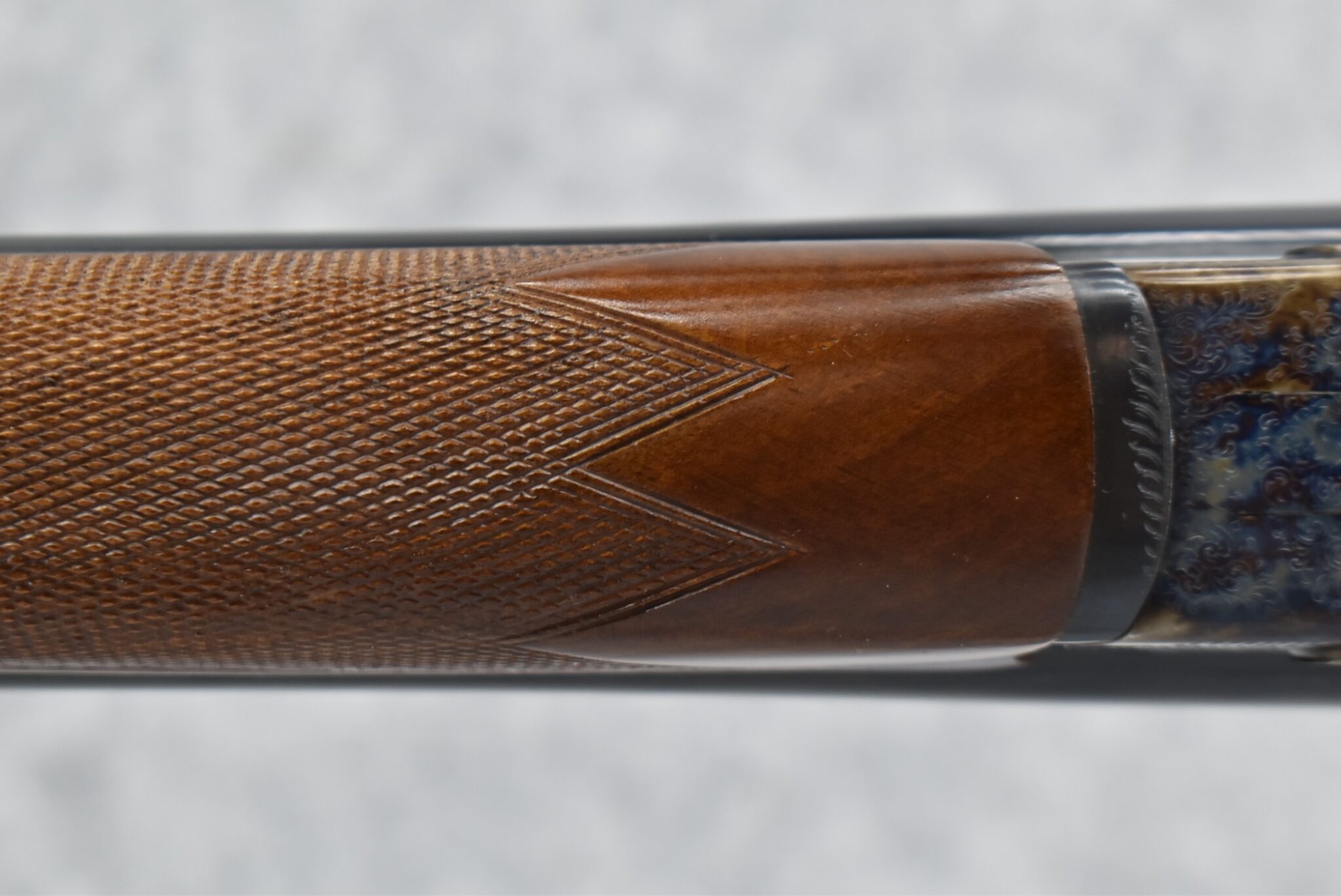 9R. Zabala Hnos SRC (Eibar Spain) – 20ga. 3” Side Lock Ejector Hammerless Double Barrel Shotgun – w/26” Imp. Cyl./Light Mod. Choked, Solid Rib Barrels w/Single Bead Sight – Blued/Case Hardened Finish (95%) – w/Deluxe Fine Line Checkered Straight Grip English Style Wood Stocks – w/Single Non Select Trigger – Serial #502118 – 14 1/16” LOP, Min. Wall .038 Each Barrel – Weighs 6lbs. 3.7oz.