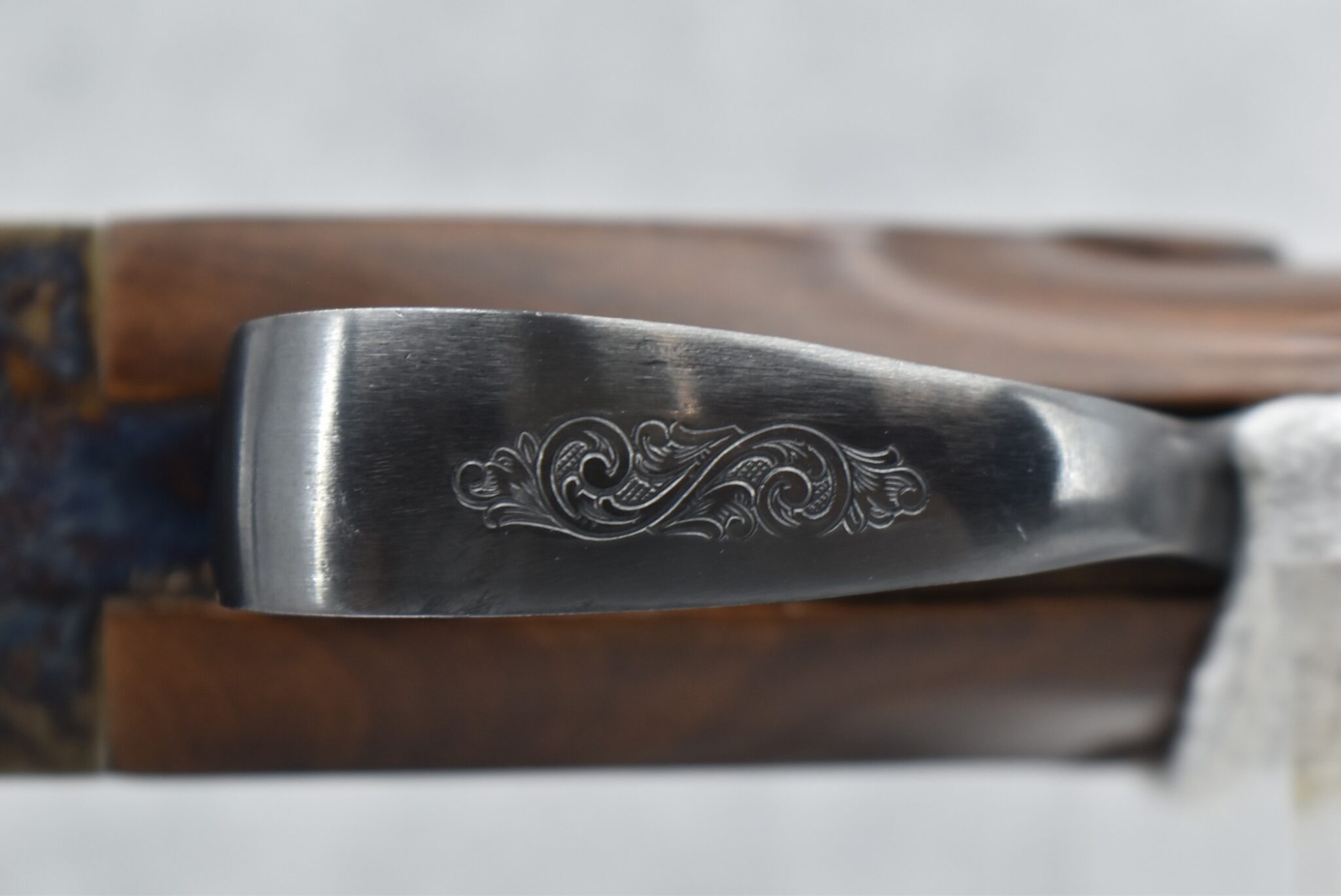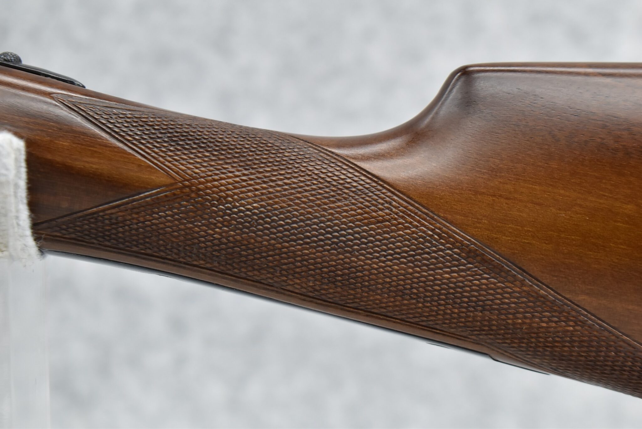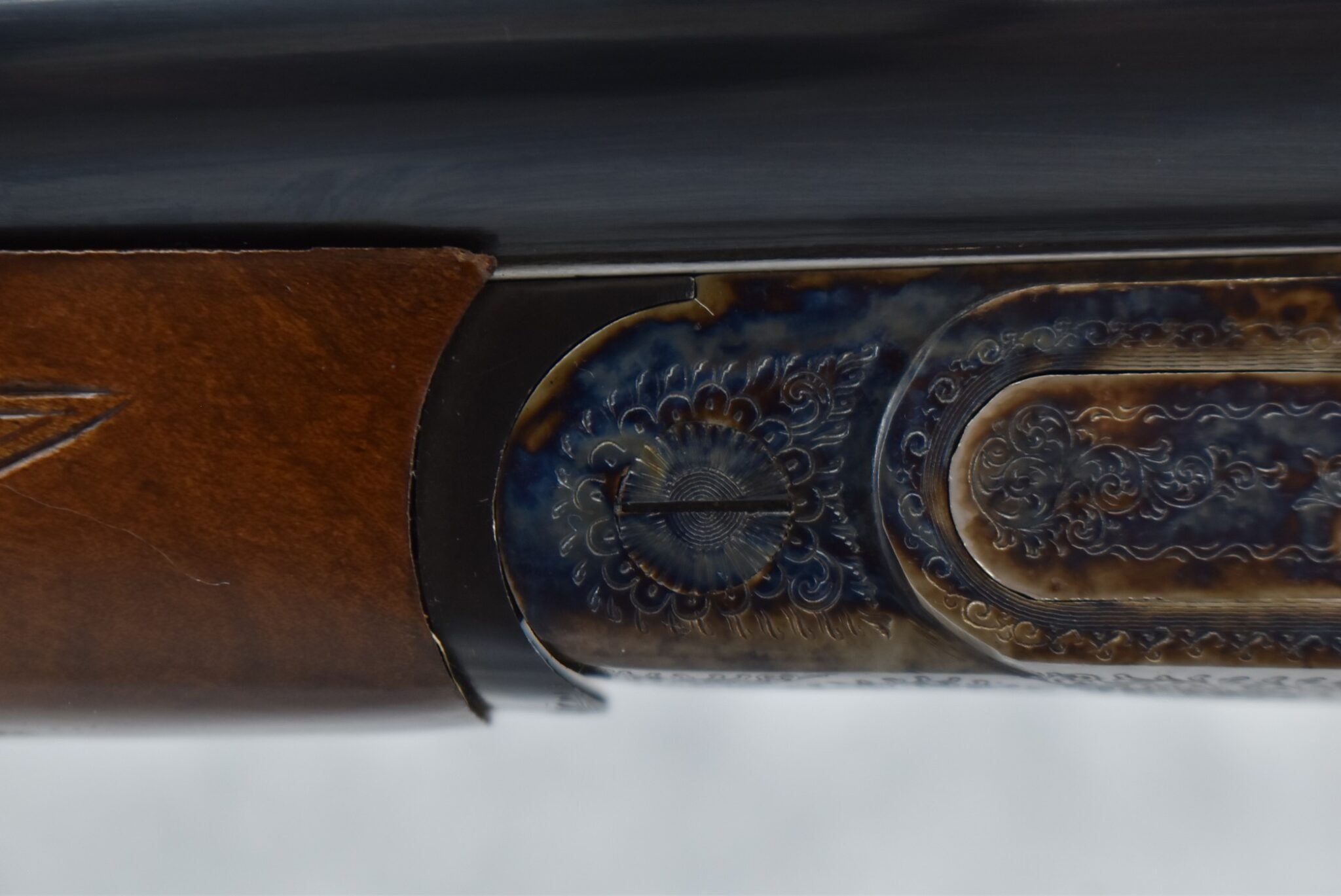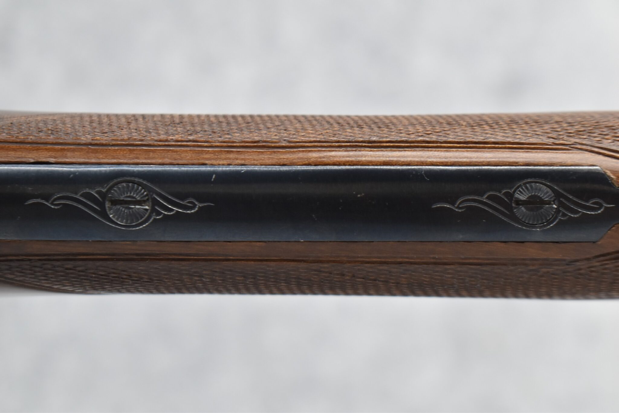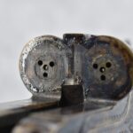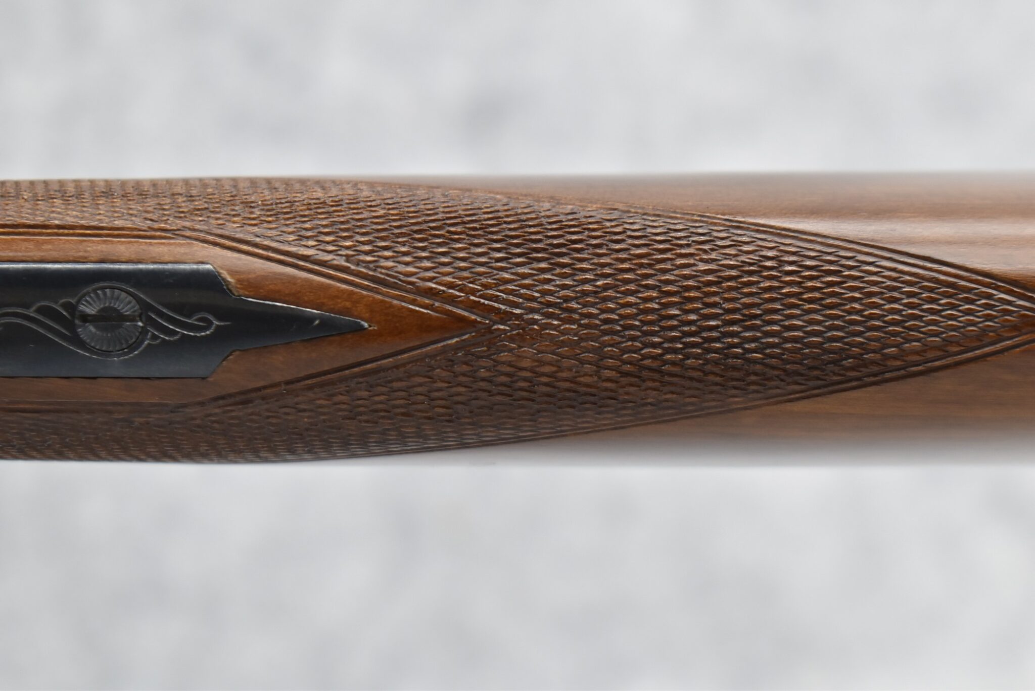 9R. Zabala Hnos SRC (Eibar Spain) – 20ga. 3” Side Lock Ejector Hammerless Double Barrel Shotgun – w/26” Imp. Cyl./Light Mod. Choked, Solid Rib Barrels w/Single Bead Sight – Blued/Case Hardened Finish (95%) – w/Deluxe Fine Line Checkered Straight Grip English Style Wood Stocks – w/Single Non Select Trigger – Serial #502118 – 14 1/16” LOP, Min. Wall .038 Each Barrel – Weighs 6lbs. 3.7oz.