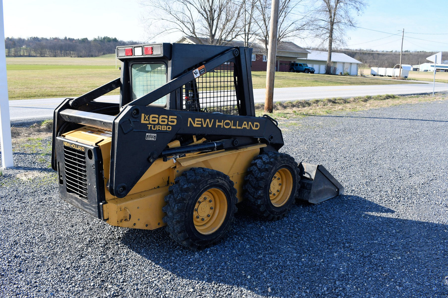 1 Owner! 1997 New Holland LX665 Turbo Skid Loader with 811 original Hours, open cab, 68” bucket, Like new tires – Very Clean Machine