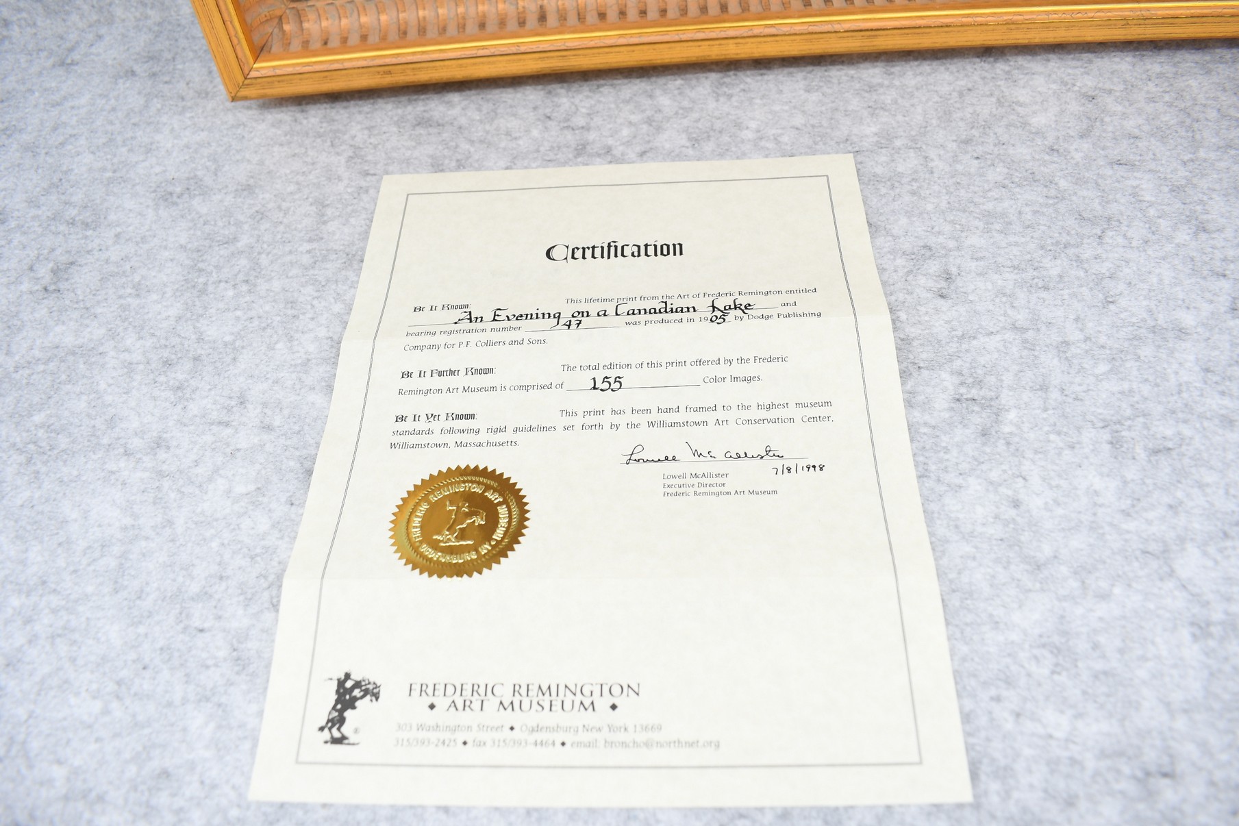 P30. Framed Print – “Evening on a Canadian Lake” by Frederic Remington – 1905 – #47/155 Edition