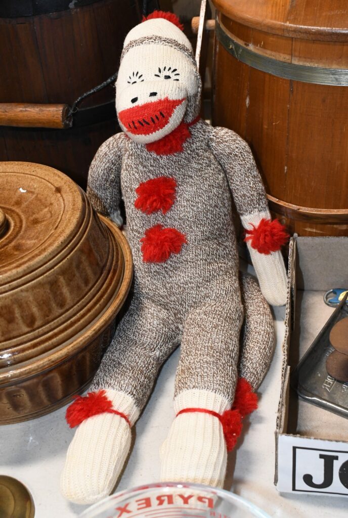 Antiques and Collectibles: (13) Carved Wooden Decoys, Pottery Crocks and Jugs, Longaberger Baskets, Railroad and Other Lanterns, Vintage Kitchenware Items, Glass Butter Churns, Wooden Butter Churns, Vintage Scales, Dolls, Vintage Postcards, Large Amount of Vintage Beaded Ladies Purses, Movie Posters, Vintage Cameras, Tabacco Pipes, Vintage License Plates, Boyds Bear Figures, Pinback Buttons, Advertising Items, Shore Birds, Marbles, Tools, Traps, Axes and Hatchets, Wall-Hanging and Mantle Clocks, and Other