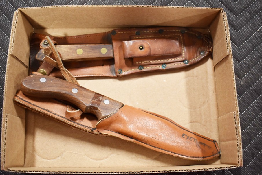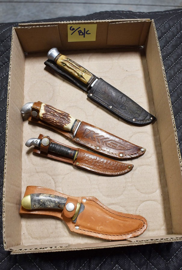 Antiques and Collectibles: Pottery Crocks and Jugs, Large Amount of Red and White Graniteware/Porcelainware, Cast Fry Pans, Large Amount of Hat Pins and Hat Pin Holders, Carved Wooden Animal Figures, Large Amount of Advertising Hand Fans, Beer Steins, Beer Advertising Items, Cast Horse and Carriages, Hallmark Keepsake Ornaments, Seasonal Decorations, Vintage Baseball Cards, Various Stamps, Game Commission Patches, Advertising Items, Old Photographs, Old Fishing Licenses, Marbles, Gold Tooth Filling, Wheat Pennies, Winchester Flashlights, Wooden Butter Churn, Copper and Brass Items, Tinware, Woodware, Sleigh Bells, Vintage Childs Books, Knife Sets, Large Amount of Folding, Pen, and Sheath Knives, Fishing Reels, Fishing Lures, Various Ammunition, Framed and Unframed Prints and Pictures, and Other