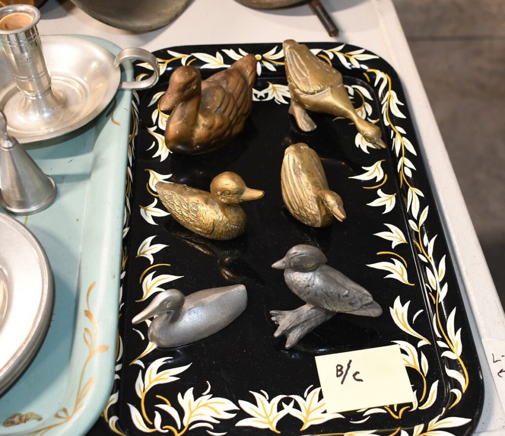 Antiques and Collectibles: (13) Carved Wooden Decoys, Pottery Crocks and Jugs, Longaberger Baskets, Railroad and Other Lanterns, Vintage Kitchenware Items, Glass Butter Churns, Wooden Butter Churns, Vintage Scales, Dolls, Vintage Postcards, Large Amount of Vintage Beaded Ladies Purses, Movie Posters, Vintage Cameras, Tabacco Pipes, Vintage License Plates, Boyds Bear Figures, Pinback Buttons, Advertising Items, Shore Birds, Marbles, Tools, Traps, Axes and Hatchets, Wall-Hanging and Mantle Clocks, and Other