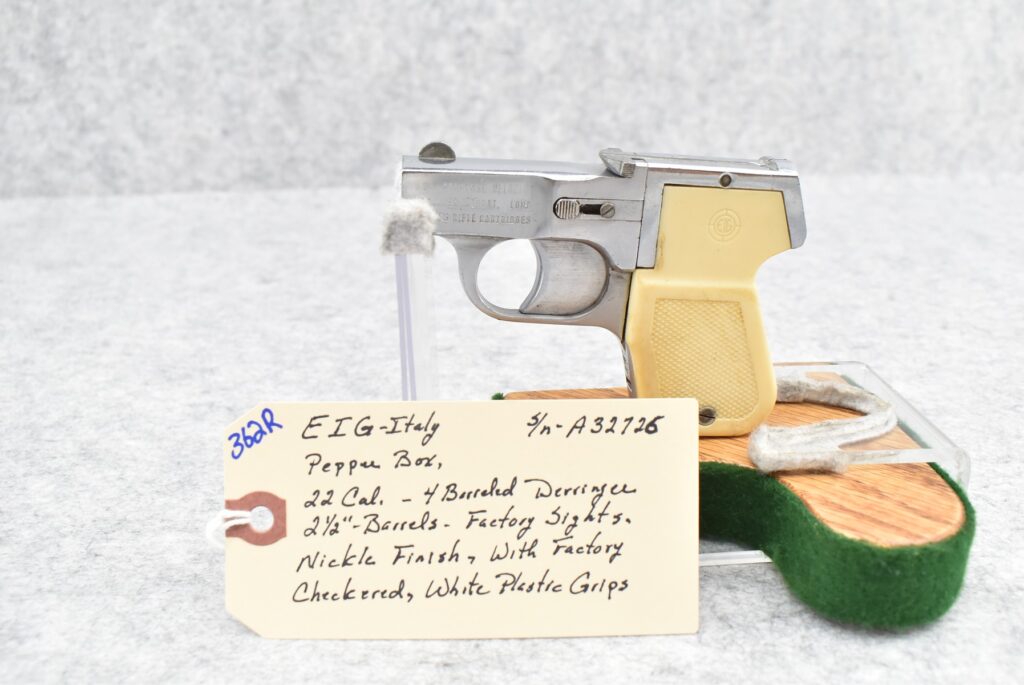 362R. EIG-Italy – Mod. Pepper Box – 22 Cal. 4-Barrel Derringer – w/2½” Barrels w/Factory Sights – Nickel Finish –...